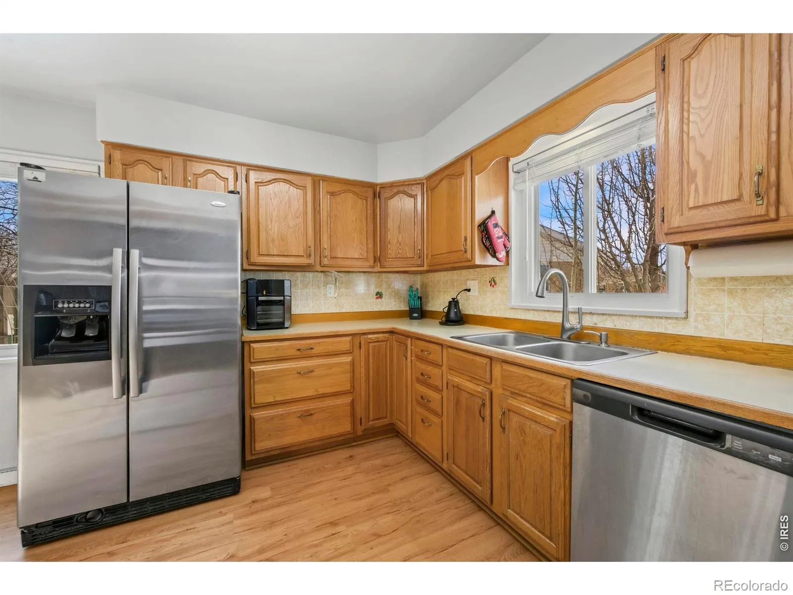 NEW PRICE! Move-in ready ranch-style home with a fully finished basement, ideally situated on a level lot that backs directly to Farr Park and open space. This well-maintained home offers 3 conforming bedrooms and 2 bathrooms, with comfortable living spaces thoughtfully designed across two levels. The main level features fresh interior paint, new flooring, a bright living room, eat-in kitchen, dining area, and an upgraded full bathroom. The finished basement expands the living space with a large family room, additional bedroom, 3/4 bathroom, dedicated laundry area, office/study space, and multiple storage areas. Additional highlights include central air conditioning, forced-air heating, city water and sewer, a lawn sprinkler system, patio, and an enclosed fenced yard. Located within city limits and close to neighborhood schools, shopping, dining, and Highway 34, this home offers a rare combination of park-side living and everyday convenience in an established Greeley neighborhood.