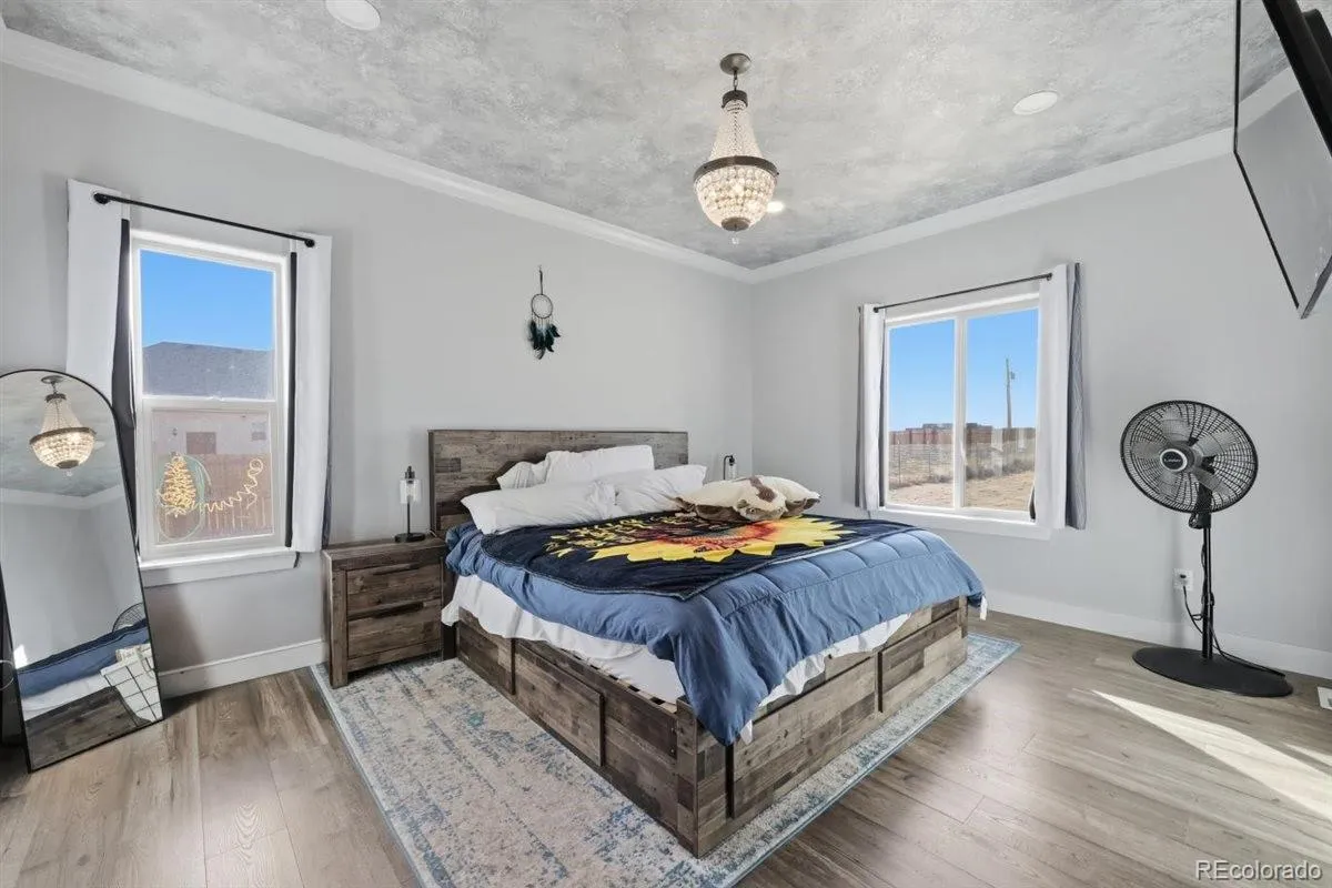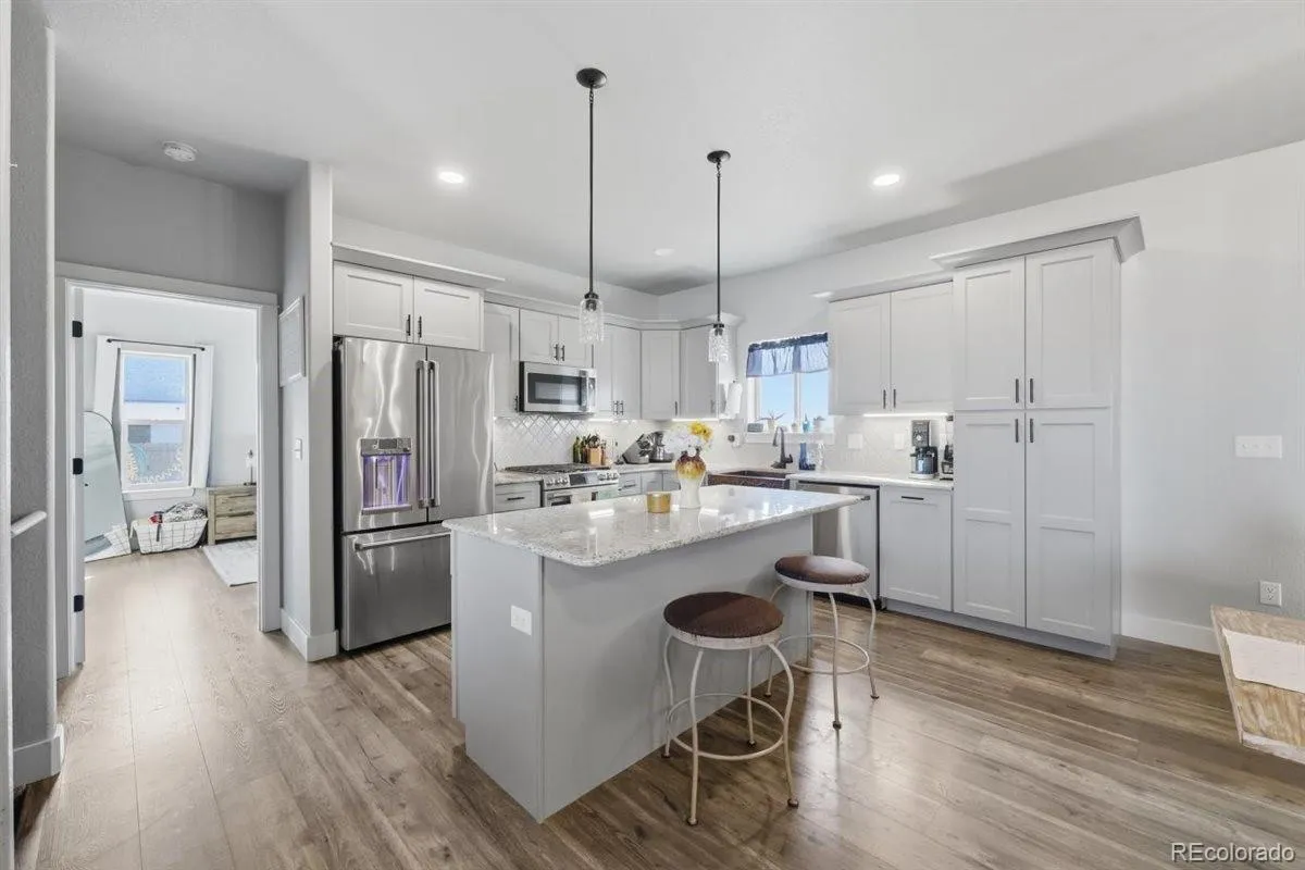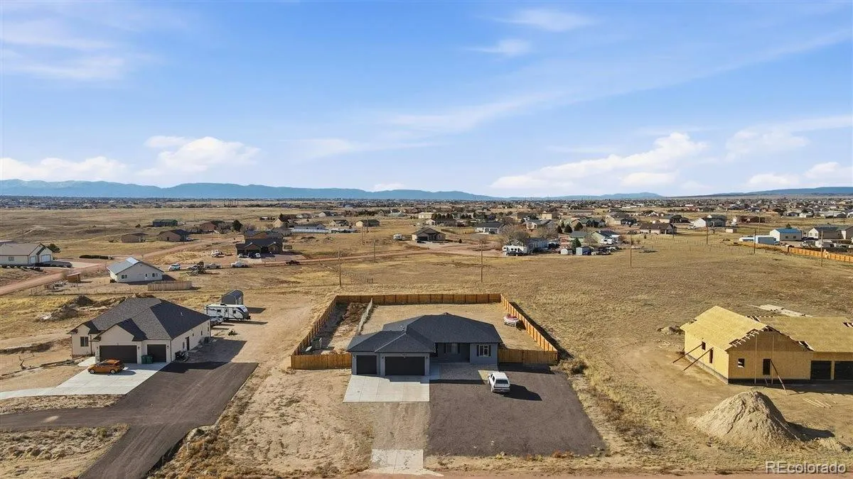 This stunning, newer custom ranch delivers modern living, thoughtful design, along with beautiful mountain views! The open-concept main level features laminate wood flooring throughout, soaring ceilings, and upgraded finishes at every turn. The chef’s kitchen is a true highlight—complete with a gas range, custom copper sink, slab granite countertops, sleek modern cabinetry, tile backsplash, and a generous island perfect for gatherings and entertaining. The dining area walks out to a large lit covered patio—ideal for BBQs, morning coffee, or relaxing with a glass of wine while enjoying the mountain backdrop. The spacious primary suite features designer paint and a rustic barn door leading to a luxurious 5- piece bath with double vanities, granite counters, an extra-deep soaking tub, walk-in shower, and a large walk-in closet with built-ins. Two additional main-level bedrooms are well-sized and served by a beautifully finished full bath with granite counters and upgraded fixtures. The massive unfinished basement offers endless possibilities—already preplumbed for a bathroom and ready to become a game room, gym, office, additional bedrooms, or even a secondary living area with its own entrance. Additional features include central A/C, an on-demand hot water heater, an energyefficient furnace, an oversized 3-car garage, the backyard has been fully fenced, making it an easy option with kids or pets also providing an extra layer of privacy as well. There is space past the fence that is yours too, the yard is much bigger than the fenced portion displays as it is a full acre of land! This home truly has it all—style, space, and views!