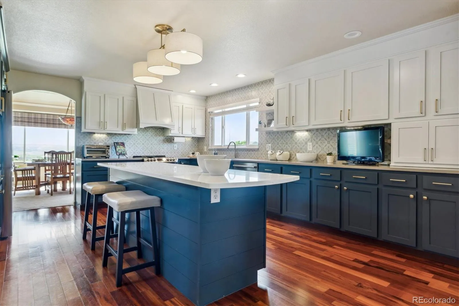 Tucked away on 5 peaceful acres backing to open space, this stunning Parker home offers the perfect blend of privacy, comfort, & style—with mountain views & unforgettable sunsets that frame your days. From the moment you arrive, the inviting front patio sets the tone for relaxed, Colorado living. Step inside to a beautifully updated interior with fresh paint, new roof, & Andersen windows that flood the space with natural light. Rich hardwood floors flow throughout the main level, complemented by brand-new carpet & soaring ceilings. A spacious main-floor office w/double doors offers the flexibility to serve as a sixth bedroom. The formal living & dining rooms feature a picture window perfectly framing the views beyond. In the heart of the home, the remodeled kitchen is both elegant & functional, showcasing soft-close custom cabinetry, quartz countertops, a designer backsplash, a large island with seating, trendy lighting, & a sunny dining nook. The adjoining family room is expansive & filled with light, centered around a stunning stacked-stone fireplace. The mud/laundry room has been completely reimagined with a farmhouse sink, high-end cabinets, built-in bench seating, & access to the oversized 3-car garage. Upstairs, the primary suite is your personal retreat with a private deck, cozy see-through fireplace, soaking tub, floor-to-ceiling tiled shower, & walk-in closet. Three additional bedrooms offer unique charm, including a window seat with built-in storage, & share a fully remodeled Jack & Jill bath. Head to the walkout basement where fun & flexibility abound—space for a game area, movie nights, workouts, & a fully enclosed workshop loaded with outlets. A second suite w/fireplace & ensuite bath is ideal for guests or multigenerational living. Outdoors, enjoy a fenced yard, two sheds, wide open skies, & the freedom of space—just minutes from downtown Parker’s dining, shops, & community events.