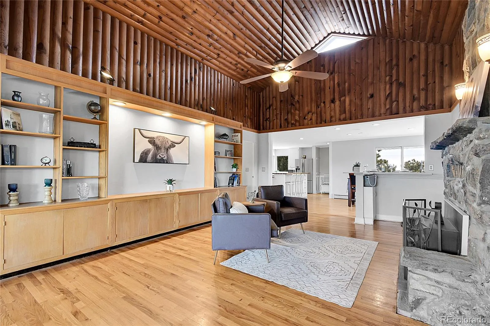 Outdoor living is equally inviting with a large covered pavilion and historic stone fireplace/stove — perfect for Colorado evenings under the stars — plus a welcoming front deck.