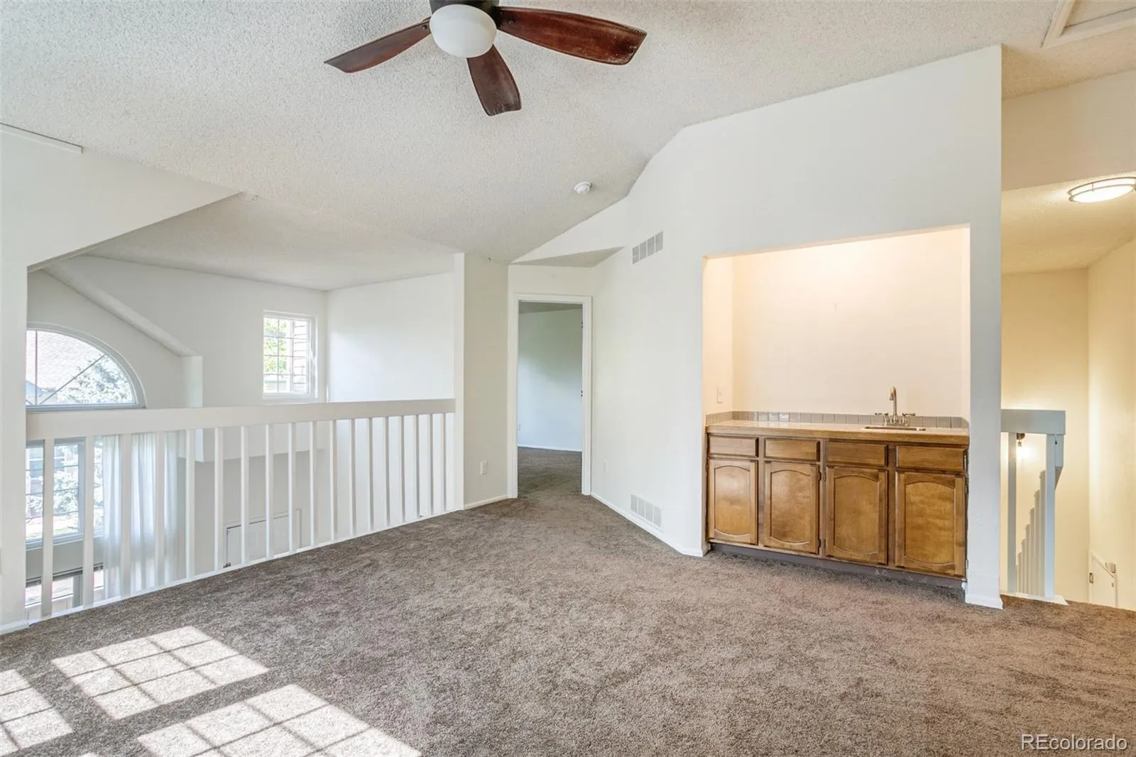 Welcome to this lovely 2 bedroom, 2 bathroom rare end-unit townhome in the highly sought-after neighborhood of Tyndall Green, where comfort meets elevated living. As you enter the main level, you’re welcomed by vaulted ceilings that create a bright, open, and airy atmosphere throughout the living space. Elegant vinyl plank flooring adds a modern touch and enhances the seamless flow, making this level ideal for both everyday living and entertaining. The open-concept layout allows for versatile furniture arrangements, while large windows flood the home with natural light, highlighting the spaciousness of the design. The kitchen offers abundant cabinetry and generous countertop space, making meal prep both easy and efficient. The main-level bedroom is generously sized and conveniently located near a full ¾ bathroom—an ideal setup for guests or multi-generational living. Upstairs, a spacious open loft features a cozy wood-burning fireplace and a built-in wet bar, offering endless possibilities for use as a second living area, home office, gym, or entertainment space. The upper-level primary suite is a true retreat, complete with vaulted ceilings, a private en-suite bath, and ample closet space. The large, unfinished basement presents an opportunity to customize the space to suit your needs—whether it’s a media room, home theater, additional bedrooms, or extra storage. Recent updates include a newer roof, new vinyl siding, and newer windows, ensuring both comfort and energy efficiency. An oversized attached 2-car garage provides plenty of space for parking and storage. Ideally located near parks, shopping, and entertainment, this home offers the perfect balance of privacy, style, and convenience.