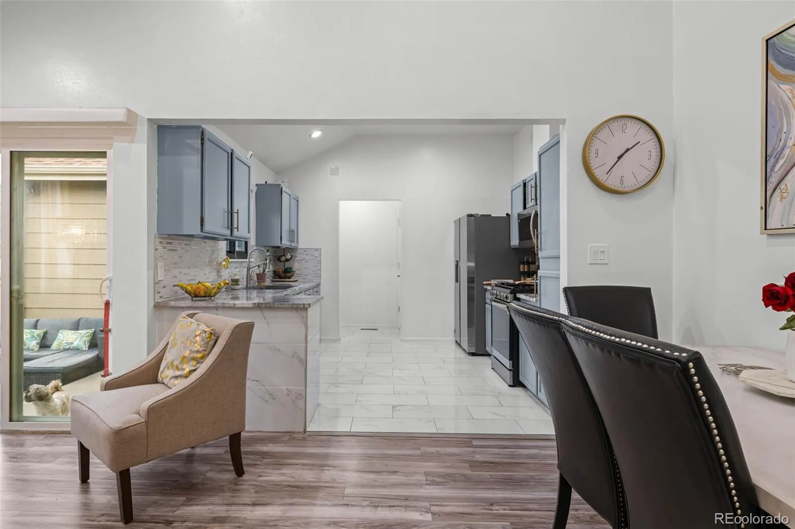 thoughtfully updated home includes a raised kitchen ceiling, removed popcorn ceilings, a fully renovated main-floor