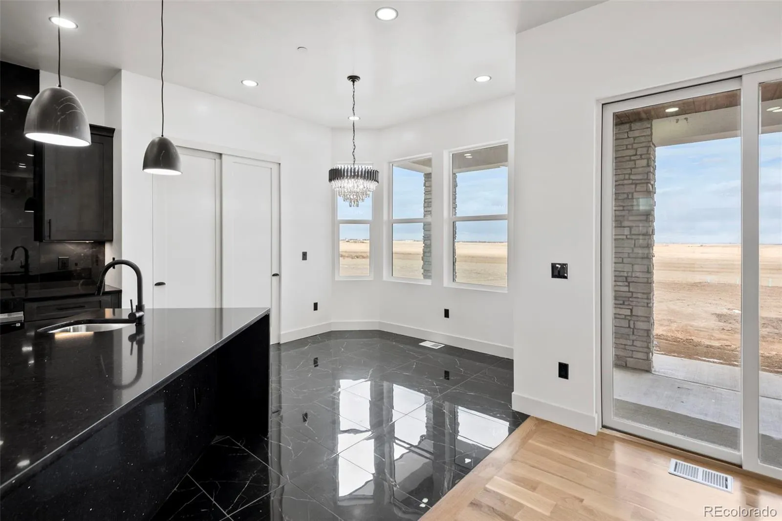 *ONE-OF-A-KIND PEACEFUL VIEWS* QUALITY NEW CONSTRUCTED SMART RANCH STYLE MODERN BEAUTY (WHITE OAK FLOORING CONTRASTED WITH BLACK QUARTZ COUNTERS THROUGHOUT) ON 3.28 ACRES WITH OPEN SPACE FROM THE PEACEFUL BACK PATIO **** HIGH-END GORGEOUS FINISHED BASEMENT WITH SPACIOUS THEATER-ROOM, A MOST STUNNING WET BAR FIREPLACE, FULL BATHROOM, 2 ADDITIONAL BEDROOMS**** EXTRA LARGE GARAGE WITH 12′ + HIGH DOOR.**** BUILD A BARN FOR UP TO 4 HORSES, A LARGE BUILDING FOR YOUR VEHICLES**** ASSOCIATION FEE INCLUDES WATER VIA COMMUMITY WELL, PLUS A CERTAIN AMOUNT OF IRRIGATION WATER FOR YOUR LAWN **** SELLERS ARE NOT RETAINING MINERALS,IF ANY ****