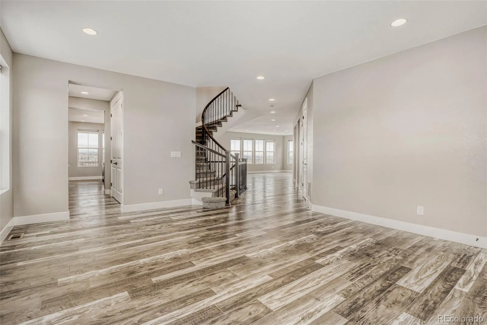 Perched atop a hill on a quiet cul-de-sac, this 4-bedroom, 4-bathroom home offers sweeping mountain and city views and 5,457 square feet of thoughtfully designed living space. The open-concept main floor features a large kitchen with a center island that flows seamlessly into the living room and adjacent den, creating a connected space for everyday living and entertaining. A distinctive spiral staircase leads to the upper level, where two bedrooms include private en suite bathrooms and the remaining bedrooms share a full bath. The primary suite offers a private bath and ample closet space. Additional features include a three-car garage, freshly updated interiors, and a spacious backyard perfect for outdoor gatherings. Located near a golf course and just minutes from Southlands Mall, this home combines scenic privacy with convenient access to shopping and recreation.