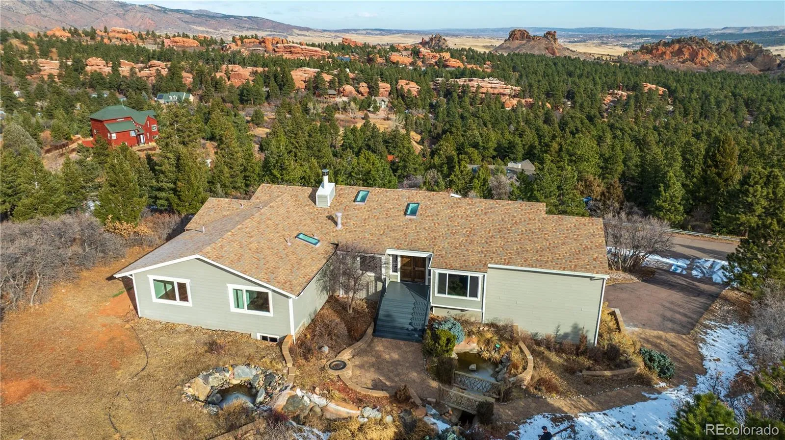 WOW! New to market: don’t miss out on this hill-side Perry Park rancher with glorious views off the rear decking. Experience a rare contemporary elegance, complete with modern amenities throughout. Multiple aspects of this home have been updated and upgraded over the past few years. The impressive open-concept living engulfs most of the main level, bathing you in natural light from all angles from multiple skylights. Escape to the basement level to find additional bedrooms and living area. You will fall in love with the custom landscaping, complete with fish ponds and water features. There is so much to see and enjoy with this hidden gem of Larkspur, so come see it today!