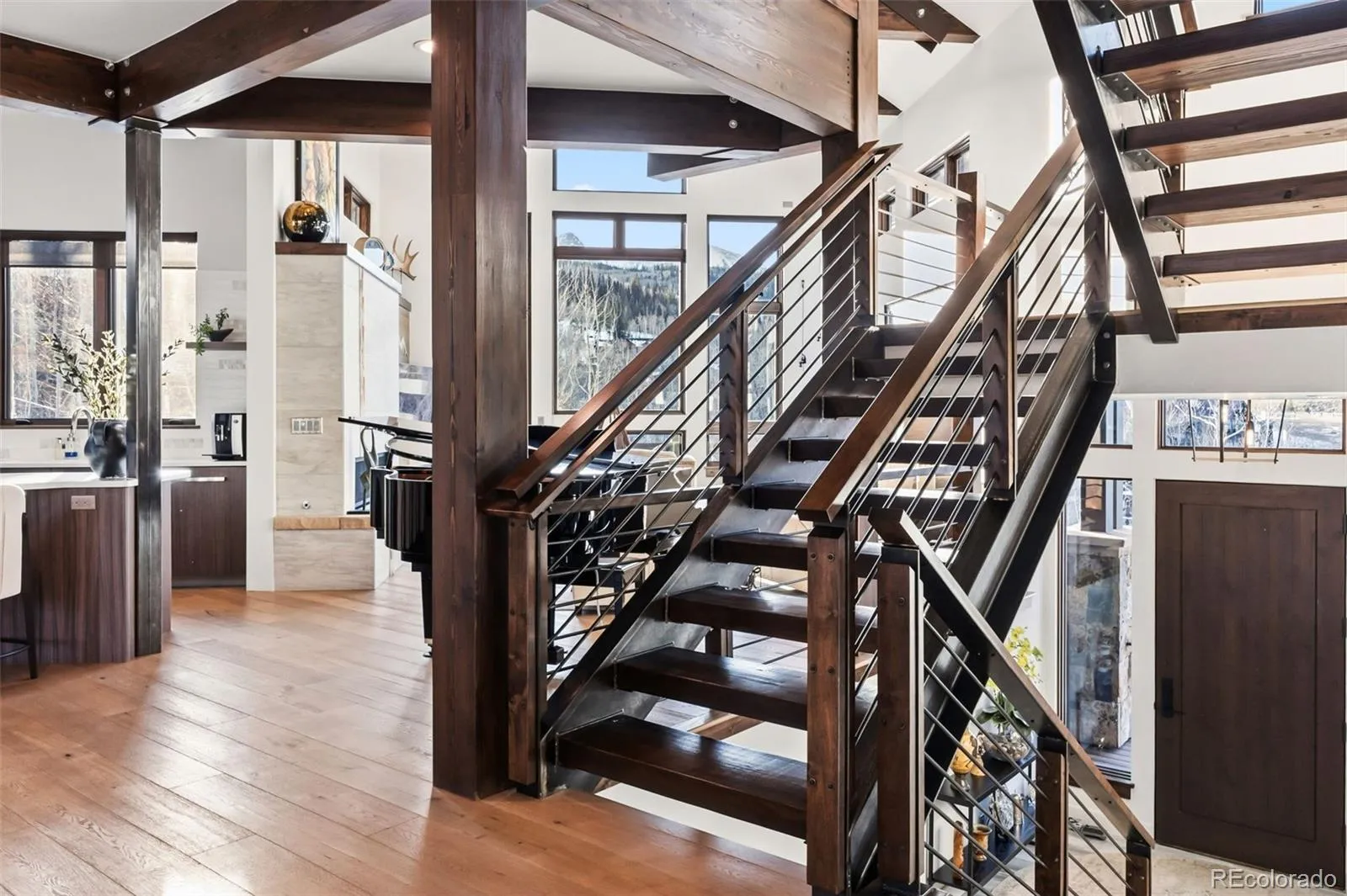 Thornview Retreat is a striking mountain contemporary masterpiece where inspired design meets breathtaking natural beauty. This 4 bedroom, 4.5 bath home is thoughtfully crafted to maximize natural light and capture extraordinary mountain views from nearly every room. Rich wood finishes are perfectly balanced with steel accents, custom ironwork and elegant masonry, creating a warm yet refined atmosphere throughout. High-end finishes, furnishings and exceptional craftsmanship elevate every space. Set on a private 0.39-acre lot within an exclusive golf course community, the home offers rare seclusion while remaining conveniently close to town, world-class skiing and year-round recreation. The open floor plan and vaulted ceilings enhance the sense of space, while seamless indoor/outdoor living invites you to relax and entertain. Enjoy evenings under the stars from the private hot tub or gather with guests in the extensive outdoor living areas. Additional highlights include a wet bar, flexible bonus space and easy access to nearby hiking trails in the summer and The Raven’s Nordic ski course in the winter. A Parade of Homes winner, Thornview Retreat delivers luxury mountain living at its finest—where views, privacy and lifestyle come together effortlessly.