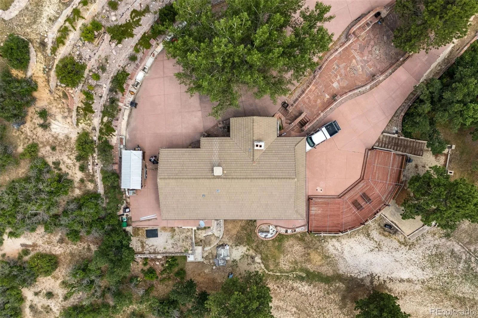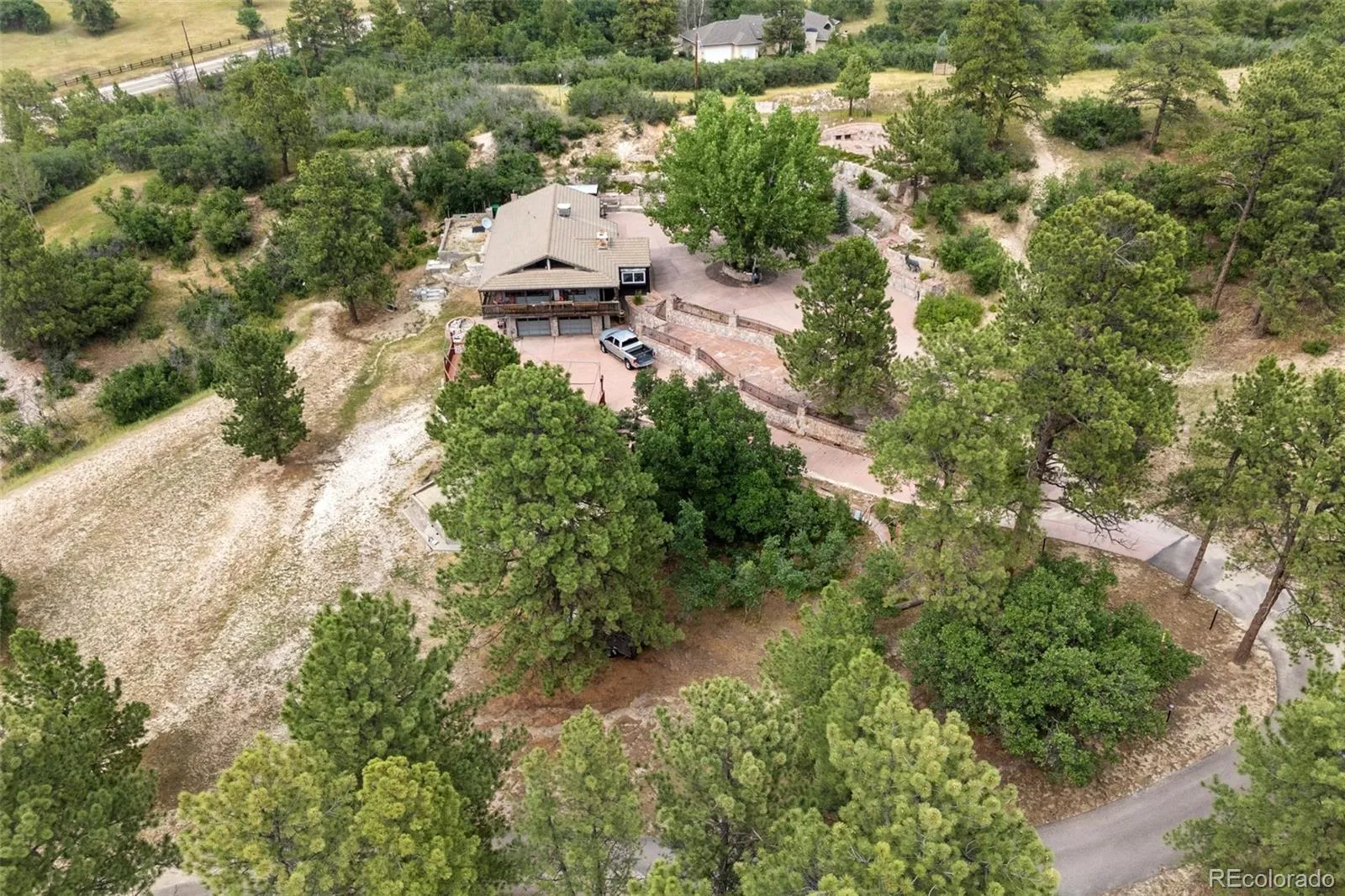 A rare and remarkable offering in the prestigious Castle Pines/Happy Canyon corridor. Huge plus, this is not a part of the Castle Pines HOA, so an ADU can be built! This 5.37-acre estate property presents a once-in-a-lifetime opportunity to build your legacy. Surrounded by over 100 acres of protected open space and mature ponderosa pines, the setting is both breathtaking and private, offering unobstructed Front Range views and an unmatched sense of serenity. No HOA, lower taxes, and the ability to walk to the PGA events at the golf courses at Castle Pines elevate its appeal even further. With five level, thoughtfully placed building envelopes, the land is primed for a custom residence, equestrian barn, car collector’s garage, or outdoor retreat. This is the final 5+ acre parcel available in this coveted enclave, an extraordinary chance to create something truly exceptional. Over $1M in site improvements already completed. Wildlife, views, and absolute privacy just minutes to I-25, shopping, dining, and top-tier schools. The property includes a beautifully updated 2-bedroom, 1.5-bath guest house featuring an oversized garage, expansive wrap around deck, paved drive, and elevated finishes throughout. With a private well, septic system, and natural gas already in place, the home is fully functional as-is while you design and build your forever estate.