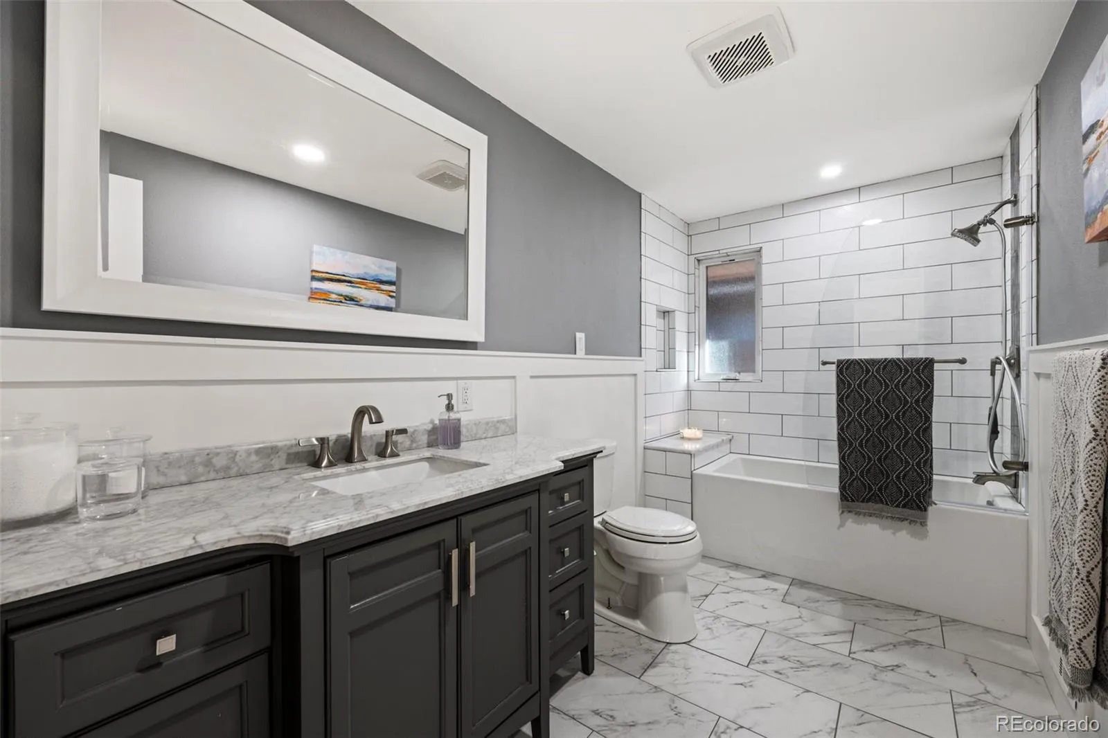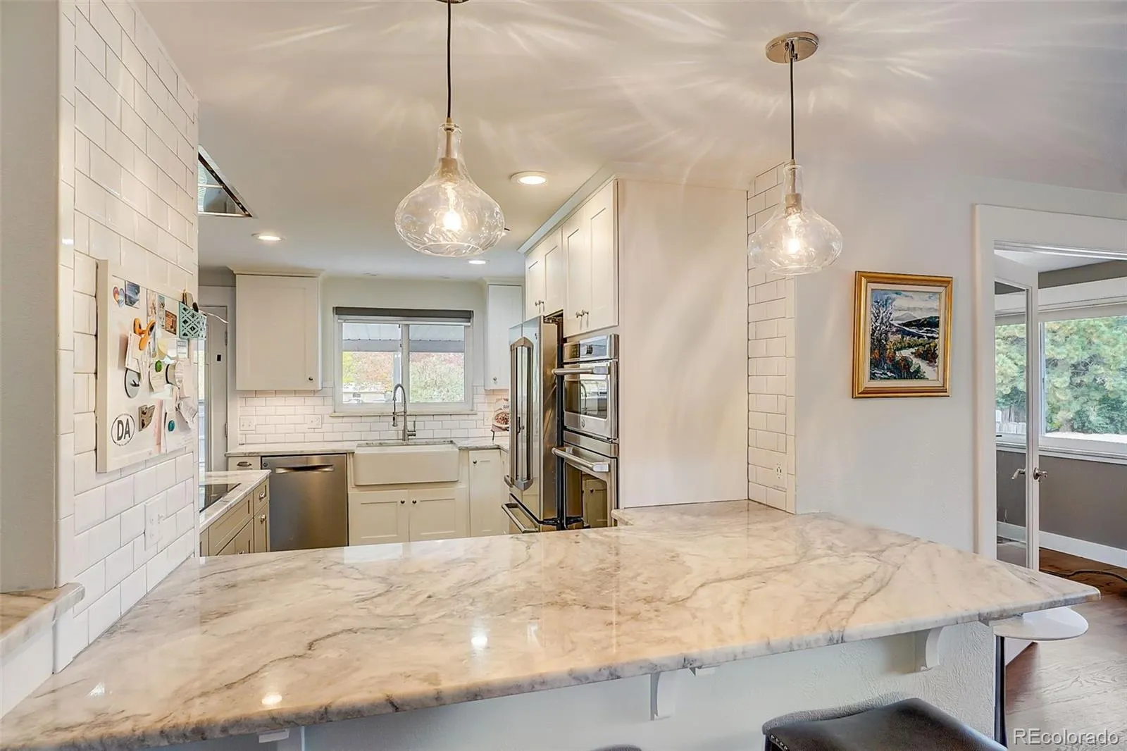 DISCOVER THIS UPDATED BRICK RANCHER ON A GENEROUS CORNER LOT IN AN ESTABLISHED NEIGHBORHOOD, JUST STEPS FROM SCHOOLS AND SHOPPING. WITH 3568 SQ FT OF LIVING SPACE ACROSS THE MAIN AND LOWER LEVELS, THIS HOME BLENDS CLASSIC CHARACTER WITH HIGH-END MODERN UPGRADES. 2 BEDROOMS AND 2 BATHROOMS ON THE MAIN LEVEL ARE COMPLEMENTED BY 2 ADDITIONAL BEDROOMS AND AN OVERSIZED BATHROOM IN THE LOWER LEVEL. THE LIVING AREAS SHOWCASE WOOD FLOORS OR HIGH END TILE USED TO INTEGRATE THE SPACES. A REMODELED CHEF’S KITCHEN WITH STAINLESS APPLIANCES, INDUCTION COOKTOP, BOSCH DISHWASHER, QUARTZITE COUNTERS, FARM SINK, ZEPHYR VENT HOOD, BUILT IN ORGANIZERS AND A DEDICATED COFFEE BAR WITH INSTA-HOT WATER TAP ARE ALL FOUND HERE. THE COZY FAMILYROOM HAS A GASLOG FIREPLACE WITH THERMOSTAT CONTROL. ROOM FEATURES NEW WETBAR WITH QUARTZITE COUNTERTOP-IDEAL FOR ENTERTAINING, MOVIE NIGHT OR FLEX SPACE. GAS LINE HAS BEEN RUN TO FIREPLACE. 2 LAUNDRY ROOMS- 1 ON MAIN LEVEL AND 1 DOWNSTAIRS ADDS CONVENIENCE AND MULTI-GENERATIONAL HOME/OFFICE FLEXIBILITY. BEDROOM 4 USED AS EXERCISE AREA AND CAN BE GREAT FLEX SPACE. STORAGE AVAILABLE THROUGHOUT THE HOUSE FEATURES SHELVING IN ALL CLOSETS. COMFORT UPGRADES INCLUDE A RADON MITIGATION SYSTEM, UPDATED WINDOWS AND DOORS AND A NEW HOT WATER HEATER. SITTING ON A 8290 SQ FT LOT, THERE IS PLENTY OF SPACE FOR GARDENING AND OUTDOOR ENJOYMENT. THE PRIVATE BACKYARD ( NO NEIGHBORS BEHIND OR ON ONE SIDE), FEATURES RAISED GARDEN BEDS, MATURE PERENNIALS AND LOW MAINTENANCE LANDSCAPING. THIS PROPERTY IS MOVE IN READY AND OFFERS LOTS OF SQUARE FOOTAGE!