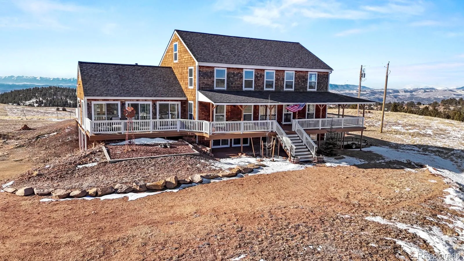 a spacious wraparound porch perfect for coffee mornings or watching fireworks over Pikes Peak on New Years & 4th of