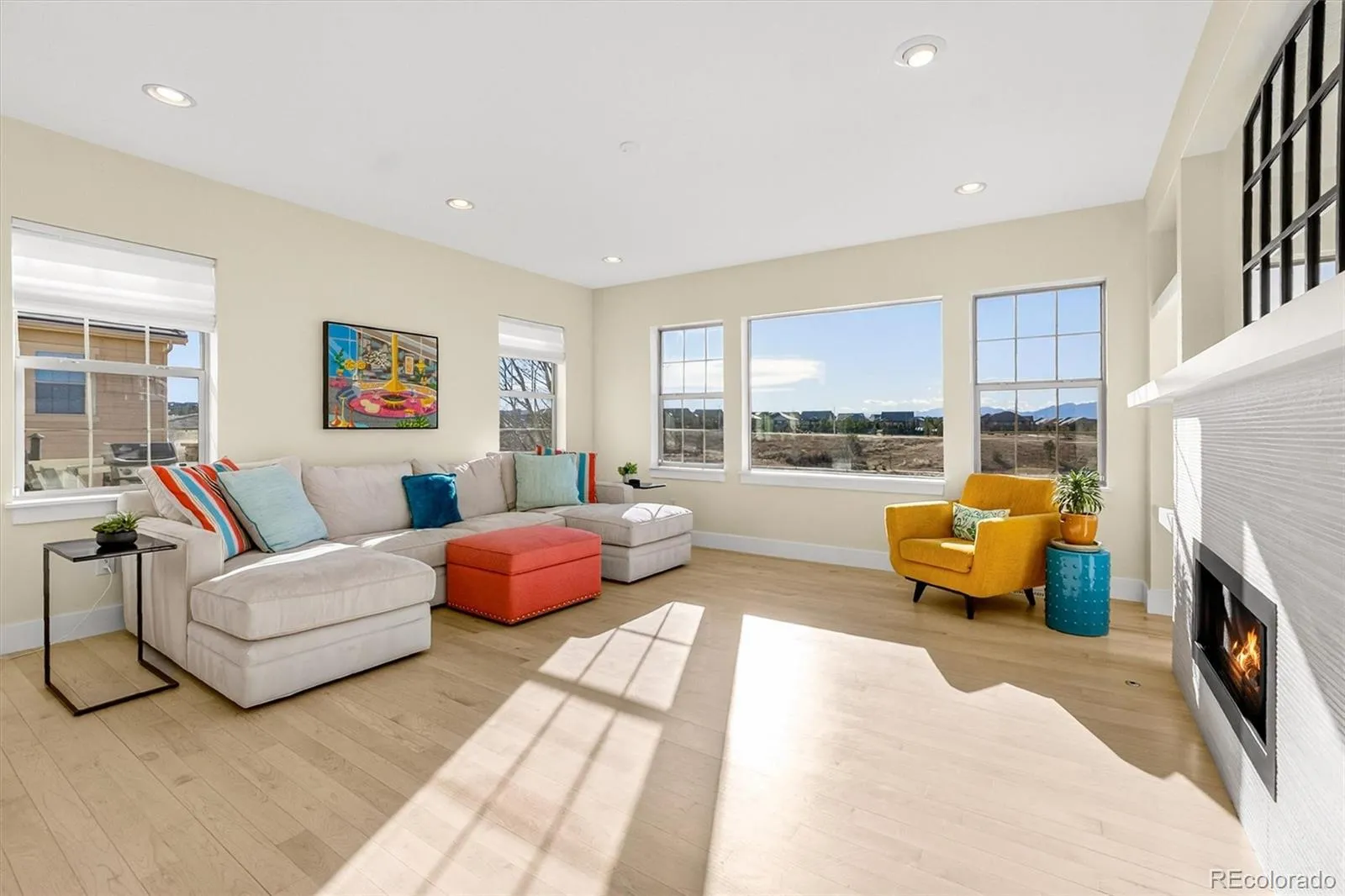 Experience unparalleled mountain views and glowing sunsets from this exceptional home in the coveted Anthem community. Set on a premium lot backing to open space, a pond, and scenic trails, it offers a walk-out basement, heated pool and, multiple outdoor living areas so you can take in the scenery from morning to night. This beautifully remodeled home is flooded with natural light and impresses with an open floor plan, soaring ceilings, custom lighting, and thoughtful upgrades. The main level is anchored by a modern kitchen with gorgeous cabinetry, granite countertops, an expansive island, and a nice pantry. The open dining area flows into the living room and out to the large deck, perfectly sized for taking in the views. A butler’s pantry connects the kitchen to a versatile front room, ideal as a second living area, dining room, or office. You will also love a spacious main-floor office with double doors, plus a large mudroom off the garage with a utility sink. Upstairs, the primary suite is a peaceful sanctuary with breathtaking mountain views and a fully remodeled spa-inspired bath featuring a soaking tub, beautiful shower, and dual closets. A spacious loft offers flexible bonus space, and the generously sized laundry room includes a utility sink. Three additional bedrooms complete the upper level, including one with a remodeled ensuite bath, plus a beautifully updated secondary bath. Fresh interior paint and brand-new carpet make the home feel truly move-in ready. The custom finished walk-out basement adds incredible living space, including a fitness room, additional bedroom, and a 3/4 bath. Step outside to the lower patio and into your private backyard with a heated outdoor pool, multiple seating areas, and unforgettable mountain views. Enjoy the Anthem lifestyle with a resort-style community center, pools, fitness center, parks, and miles of trails. Come see this amazing home. See the video here https://iframe.videodelivery.net/ca2069fa988e489e97d608d51ddba768