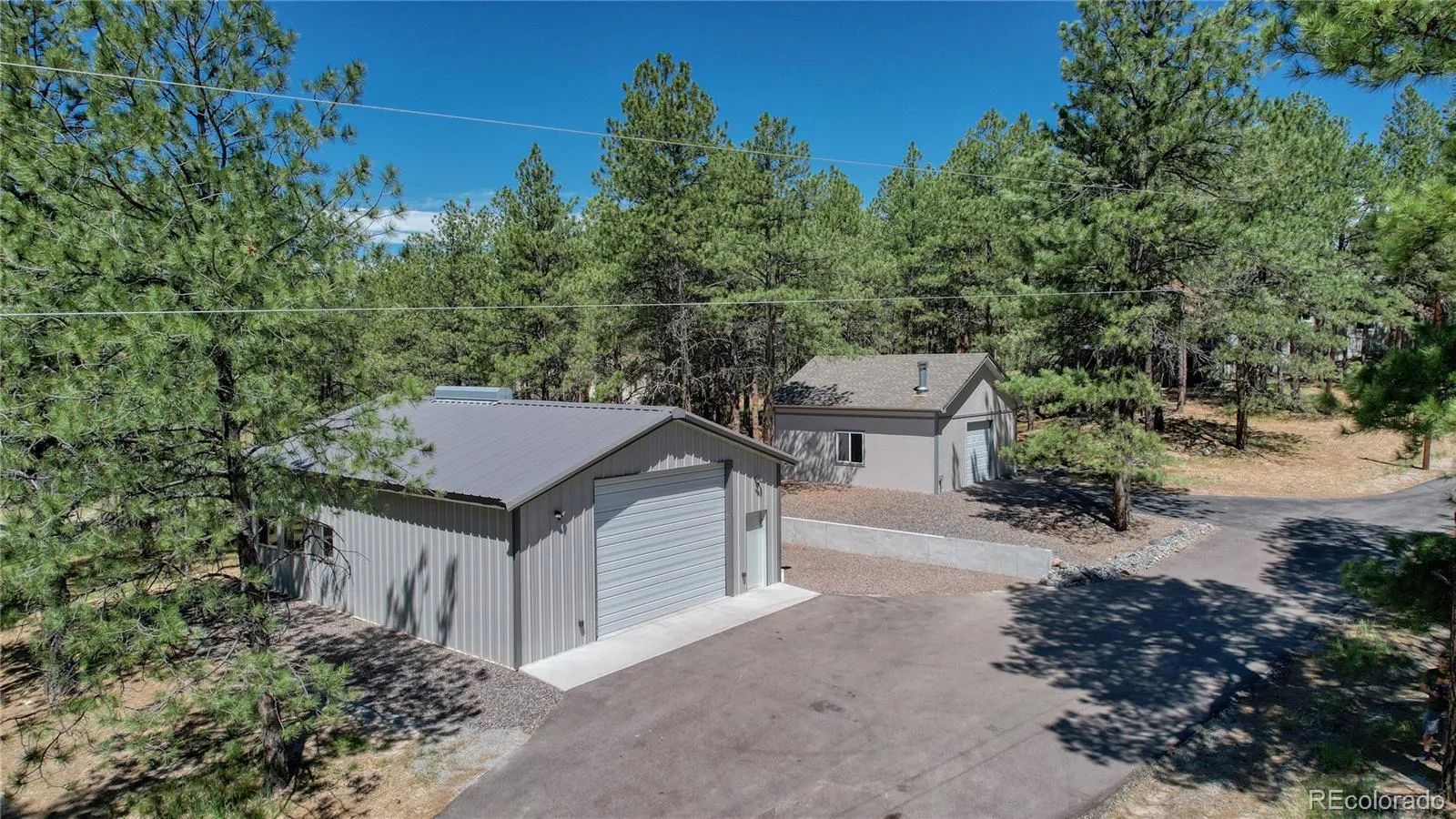 Garage space and parking at this property are VERY impressive. One attached 3 vehicle garage and 2 large detached finished garages with their own paved driveway. Garages have cement floors, heat, electric, lighting, insulation, auto door openers, storage cabinets, motion activated security lights, and access doors. The newest was built in 2024 with a 12′ RV door and is 40′ deep. Other outdoor parking areas for your Colorado toys are also available. Pine trees allow for afternoon shade and privacy on the walkway to your outdoor backyard gazebo.