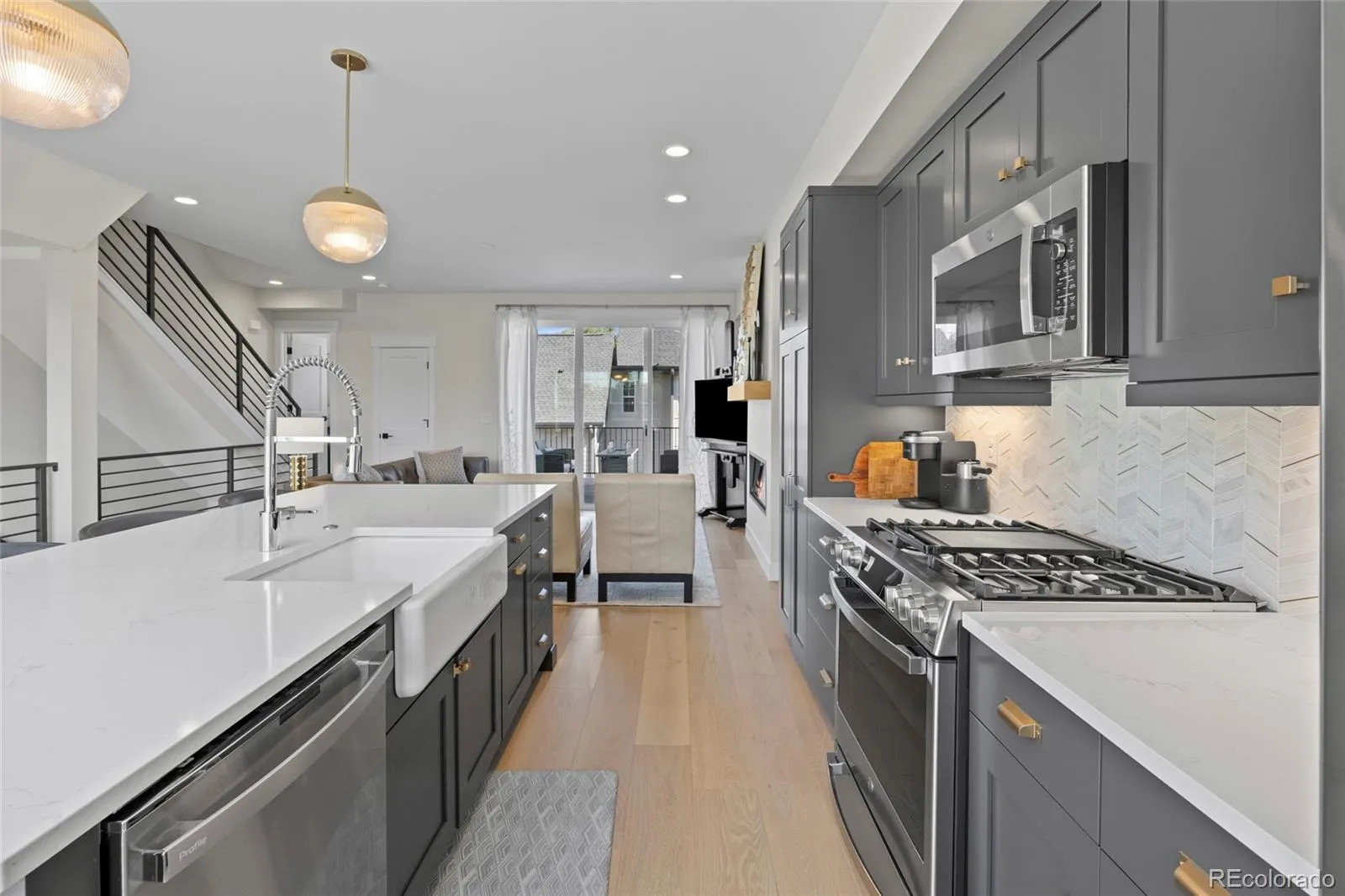 Amazing home flooder with light at a great price! Come live where Urban Chic meets Olde Town Charm! Just moments from historic Olde Town Arvada, this stunning, upgraded townhome delivers the ultimate city lifestyle. Enjoy a versatile entry level bedroom suite, a main floor with an impressive open-concept living area with a gourmet kitchen (custom marble backsplash!), and sun-drenched dining. Relax on your private partially covered deck off the spacious living room. Upstairs, find a luxurious primary suite with vaulted ceilings, a private deck, and a spa-inspired bath, plus an additional bedroom suite and laundry. Loaded with high-end finishes: engineered hardwood, quartz, custom tile, upgraded lighting, and a 2-car garage with EV charging. Walk to Olde Town’s vibrant scene and the Light Rail for easy Denver access. Experience the best of both worlds: modern living and urban convenience. Agent-owned—see it today!
