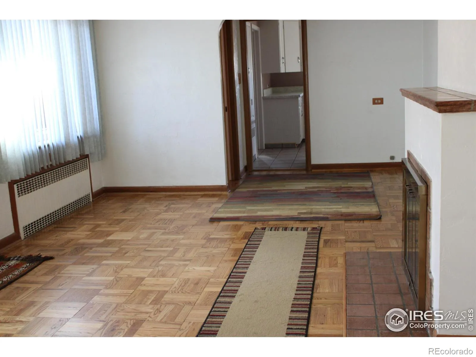 Enjoy easy one-level living in this classic brick ranch-style home. Thoughtfully designed with glass block privacy windows, the home is filled with natural light throughout. Generously sized rooms showcase original plaster walls, beautiful parquet flooring, and a cozy gas fireplace in the family room. Hot water heat is complemented by custom recessed radiators. The basement offers a large open area ideal for displaying collectibles or creating a model train setup, along with abundant storage space. An oversized side-load two-car garage features solid double brick construction. Additional highlights include a covered front porch, a spacious fenced backyard with mature landscaping, and a rear patio perfect for outdoor enjoyment. Conveniently located near Fort Lupton schools, this home combines timeless character with everyday comfort.
