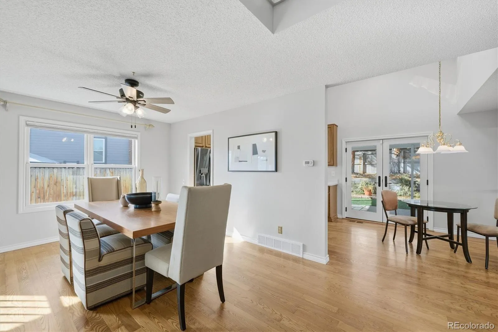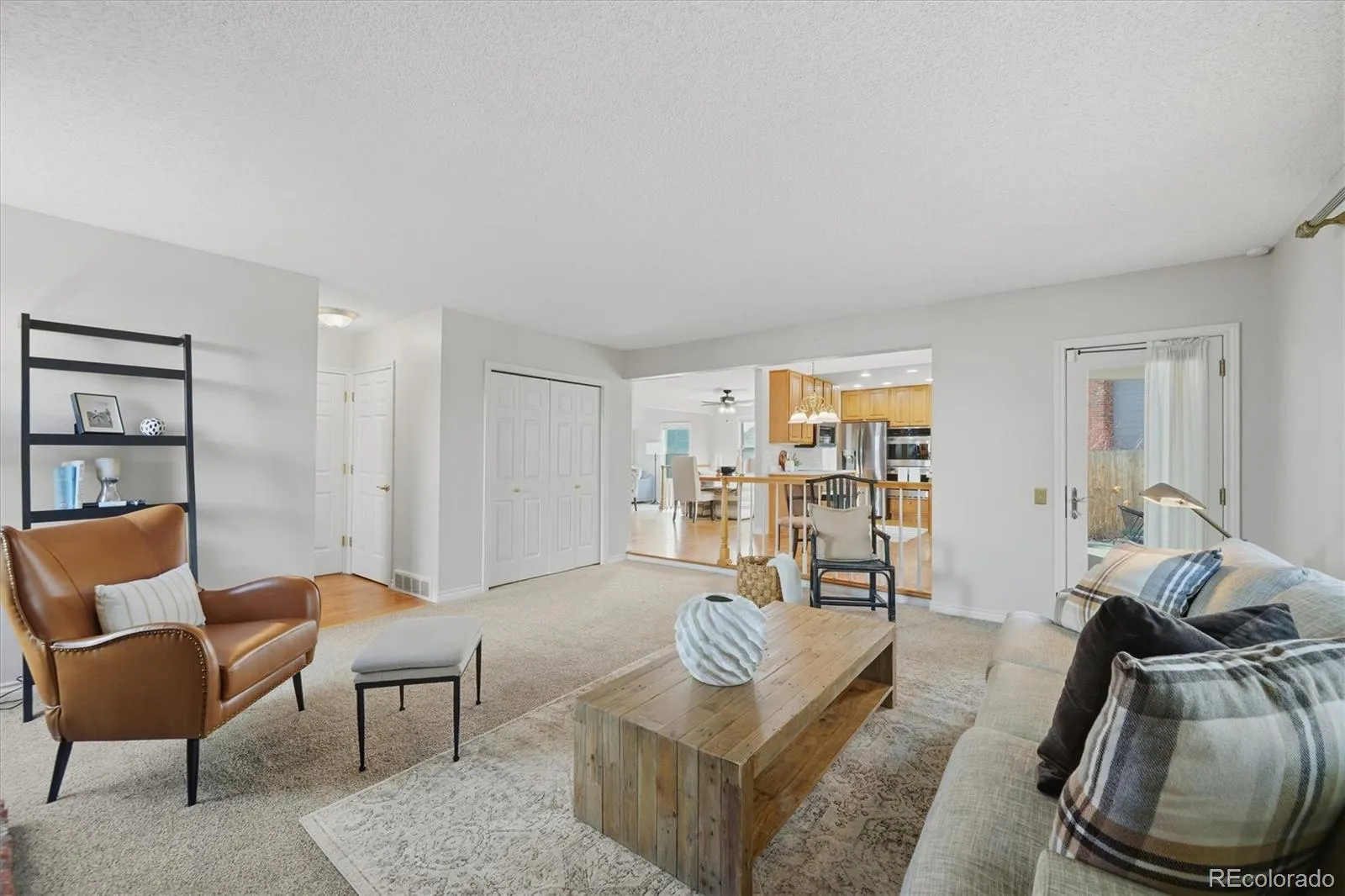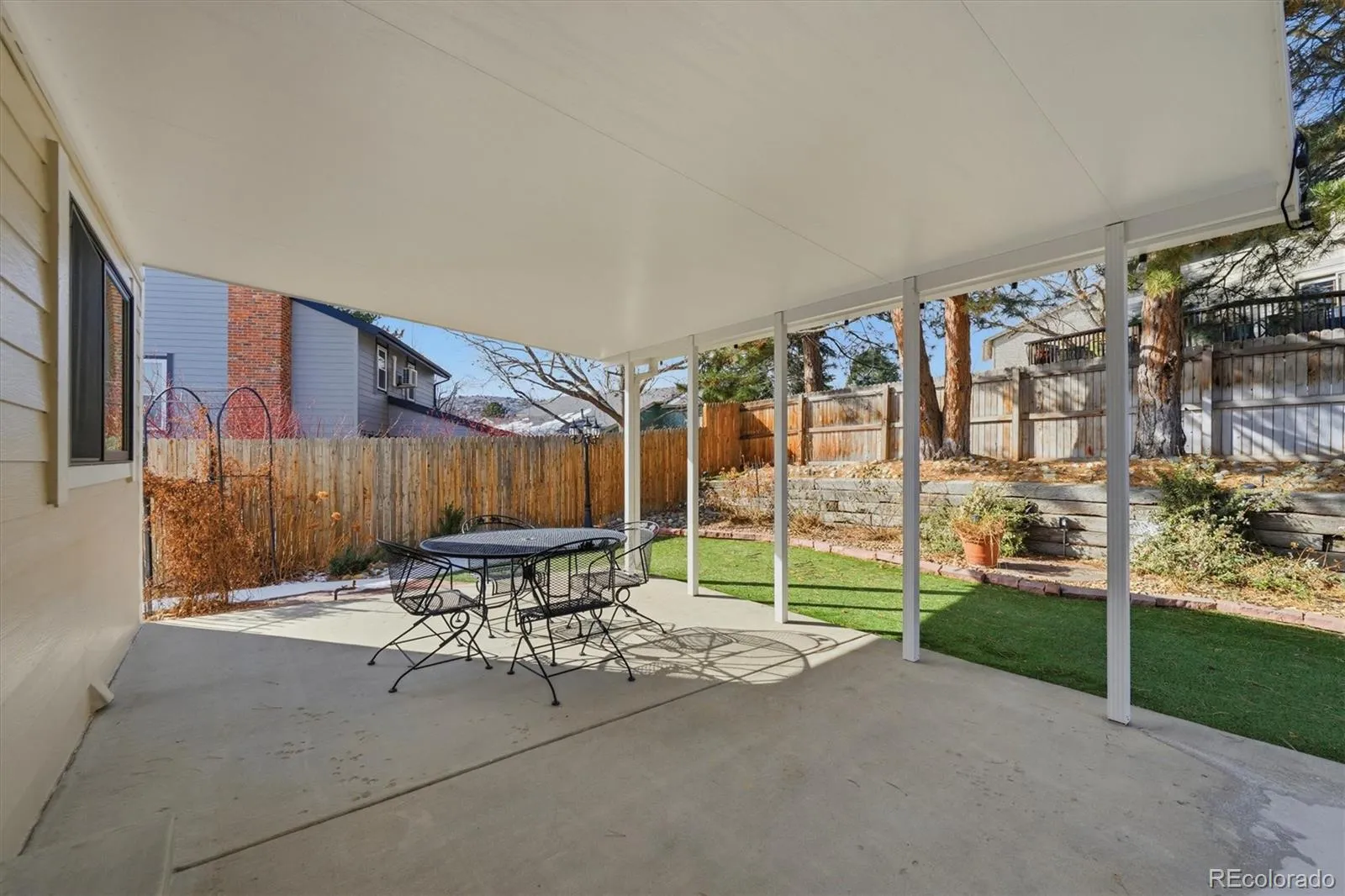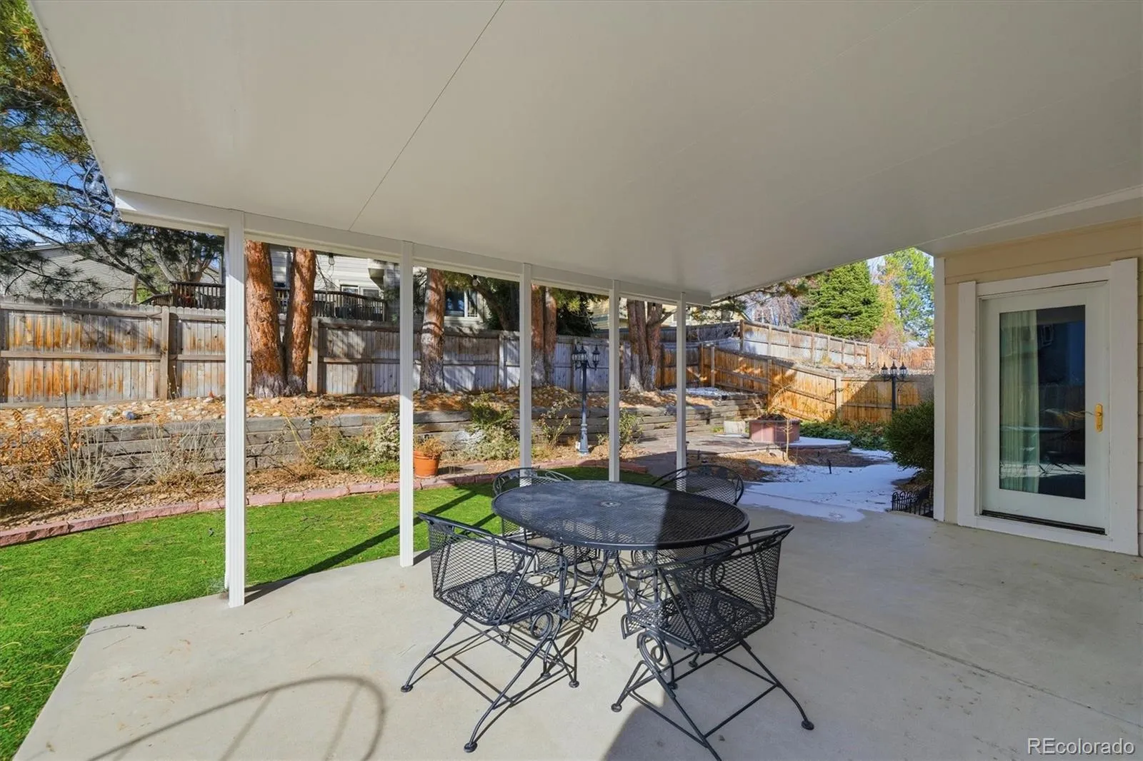 Outdoor living shines with a spacious covered patio and fire pit perfect for enjoying Colorado evenings, adjacent to the SW foothills, with ample backyard space for activities and raised garden beds. Fresh interior and exterior paint throughout. Tucked away with mature landscaping and low-maintenance living, 2025 roof, including turf in the backyard for no-nonsense upkeep. Inside, the thoughtful layout offers multiple conversation areas and a convenient upstairs laundry adjacent to loft. The kitchen features updated appliances, French doors opening to the backyard covered patio, along with both a formal dining area and a breakfast nook. Ideally located minutes from Chatfield Reservoir, skiing, shopping, trails, schools, and parks.