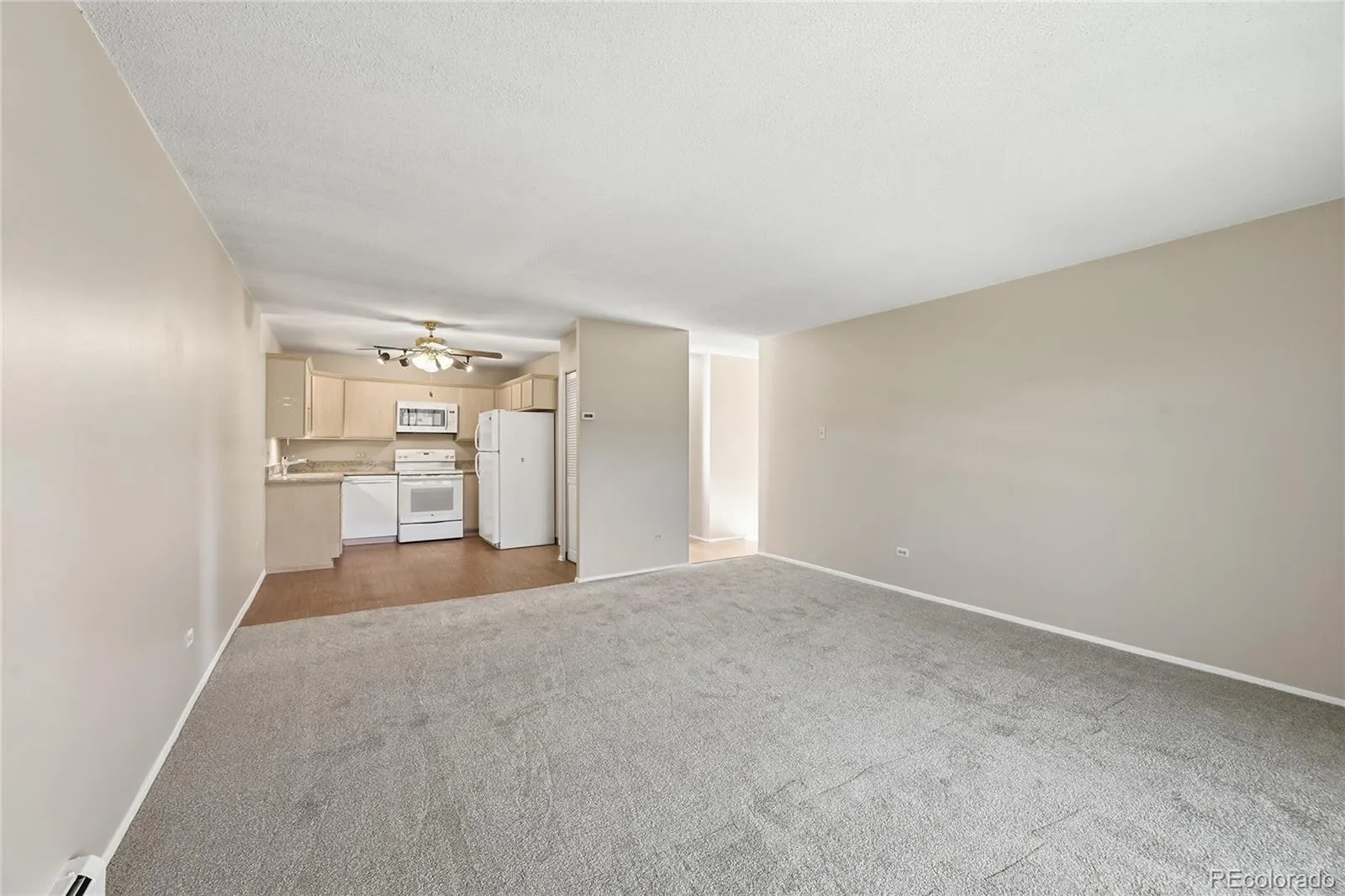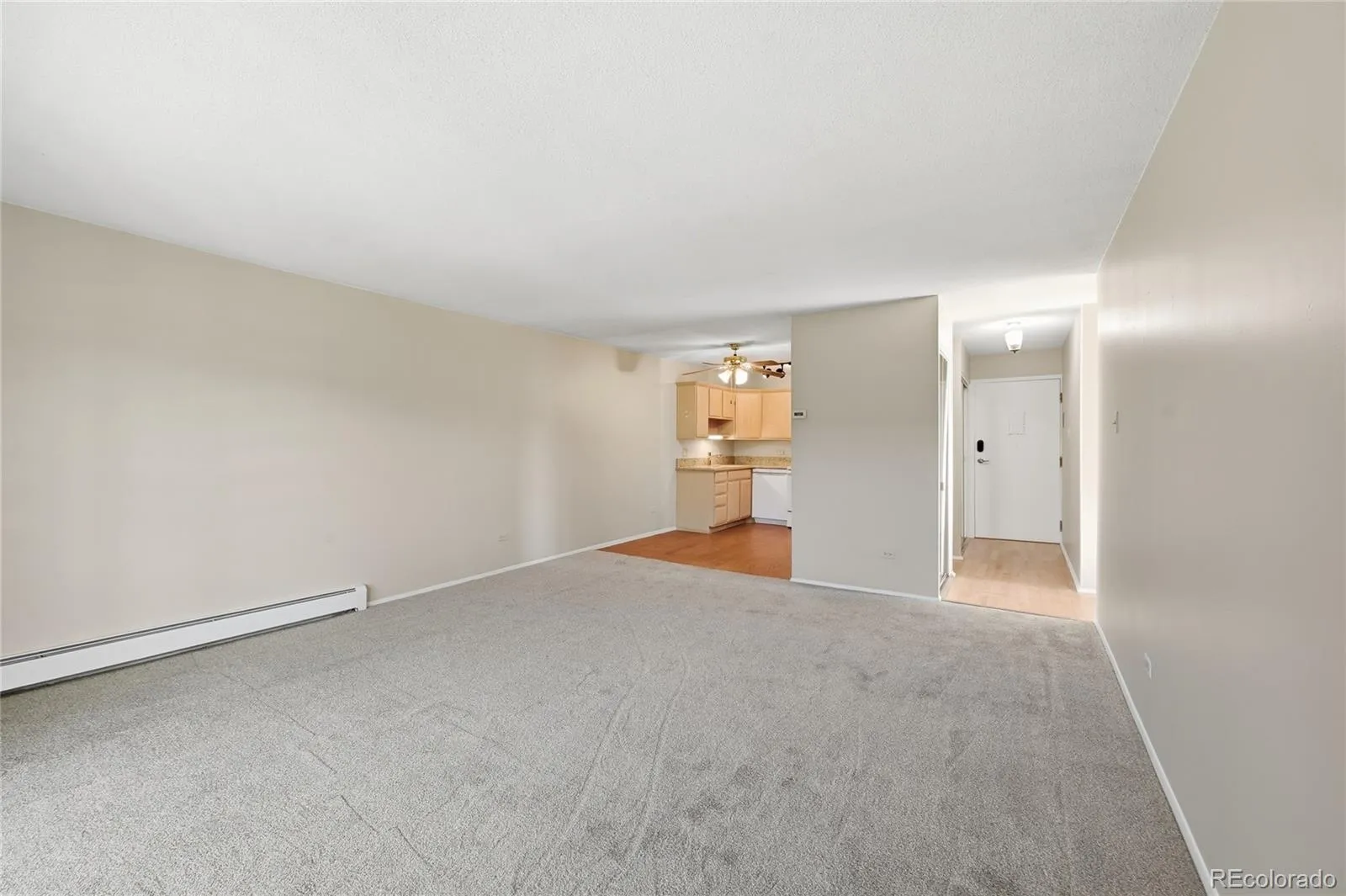 Fantastic Updated End-Unit Condo in fabulous Windsor Gardens! Welcome to this beautifully updated end-unit condo offering an open and inviting floorplan in Denver’s premier active adult community. The remodeled kitchen features abundant newer cabinetry, updated appliances, slab granite countertops, and flows seamlessly into the expansive living and dining area—perfect for entertaining or relaxing in comfort. This home includes a spacious primary bedroom, a secondary bedroom, and a full bath, along with an additional approximately 100 square feet of fully enclosed sunroom—ideal for year-round enjoyment. Recent updates include brand-new carpet and fresh paint throughout, plus durable LVT flooring in the kitchen and bath. Enjoy the convenience of a secured building entrance with elevator access, deeded parking, and additional storage. Monthly HOA dues include heat, water, and property taxes, providing exceptional value. Windsor Gardens offers a true resort-style 55+ lifestyle community with unmatched amenities: indoor and outdoor pools, a golf course, community gardens, fitness center, clubhouse, onsite restaurant and bar, plus clubs, classes, live entertainment, community events, and endless opportunities for an active and social lifestyle. Learn more about the community at www.windsorgardensdenver.org.