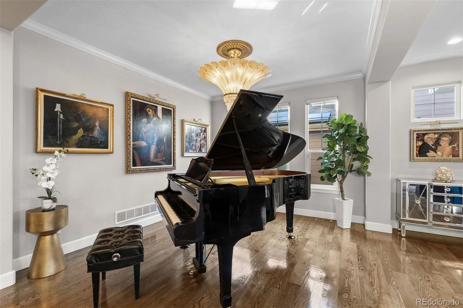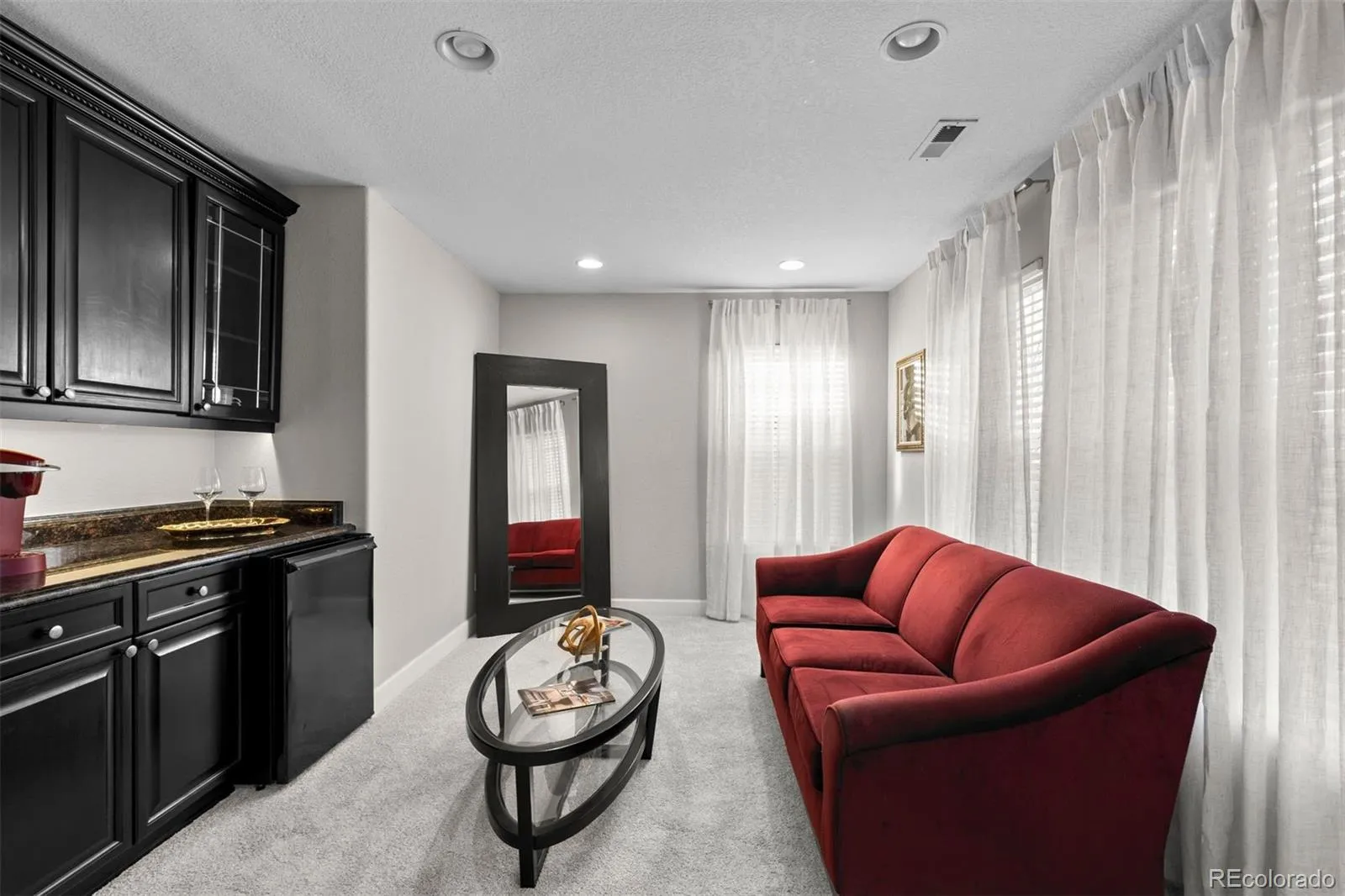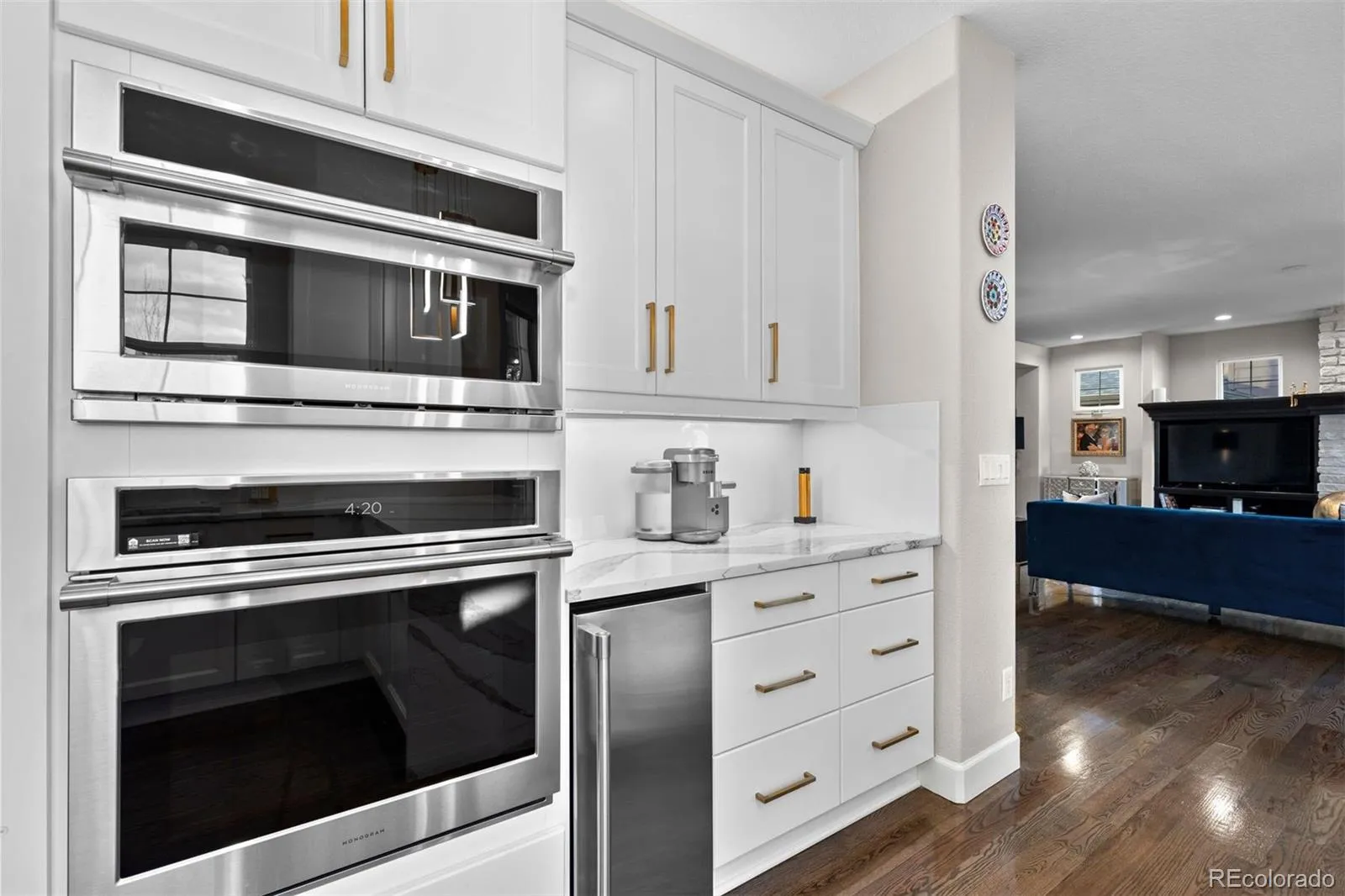 The upper level serves as a private sanctuary with four spacious bedrooms with new premium flooring, a “GRWM” glam studio/flex space, laundry, and a luxurious primary suite with a sitting area and a beverage refrigerator. The finished walk-out lower level is an entertainer’s retreat, complete with a wet bar, craft room, two additional bedrooms, and a full bath.