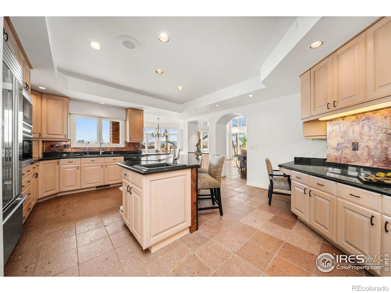 Lakefront living at its Best on Long Pond w/unobstructed Rocky Mountain views-this extraordinary home is designed to impress from the moment you arrive. Just moments from Fort Collins Country Club and Old Town Fort Collins, you’re greeted w/a refined entry with a curved staircase which opens to a dramatic great room featuring wide-plank wood floors, two-story box-beam ceiling, art niches, and a wall of windows framing breathtaking water and mountain vistas. One of three fully rejuvenated custom fireplaces showcases a striking volcanic rock mantle and built-ins.The open kitchen is built for entertaining with custom Kamtz cabinetry, granite countertops, expansive island with prep sink, walk-in pantry with secondary freezer, wine storage, instant hot water, bar fridge, & a stunning acid-wash copper backsplash. Premium appliances include Sub-Zero refrigerator, Thermador 5-burner cooktop and double ovens, dual Wolf microwaves, & Bosch dishwasher.The primary retreat offers double-door entry, private balcony, lake & mountain views, fireplace, spa-inspired bath with split vanities, jetted corner tub, dual shower heads, and an exceptional custom walk-in closet. Secondary bedrooms feature ensuite baths, while the walkout lower level provides a private bedroom suite with sitting room & fireplace, plus a spacious rec room with wet bar, built-ins, and excellent storage with future finish potential.Outdoor living shines with three decks and walkout patio-perfect for soaking in the scenery. Notable updates and systems include steel roof (2013), new exterior paint (2024), new interior paint (2026) newly sealed decks, Low-E lakeside glass, central vacuum, security cameras, refurbished fire suppression system, and dual Trane furnaces with two A/C units, humidifiers, and two hot water heaters. Oversized heated 3-car garage with epoxy floor, drain, hot/cold water, built-ins, and new openers (2024). Sauna and tanning bed included, gas BBQ, and a $27,000 lift chair all included.