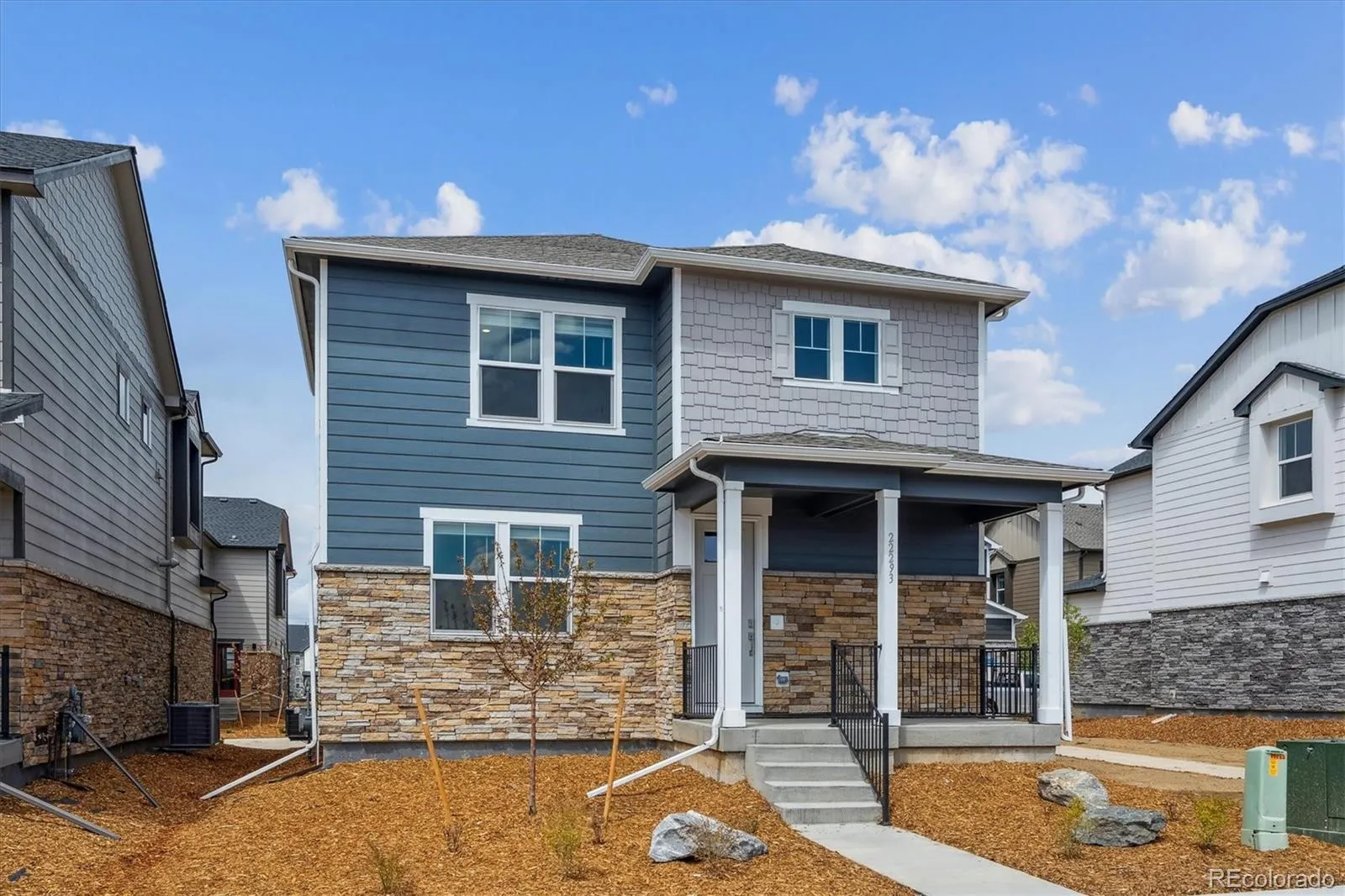 This beautiful Alamosa home features 4 bedrooms, 2.5 bathrooms, and a spacious 2-car garage. The open-concept floor plan boasts expansive 9-foot ceilings on the main level, a convenient eat-in breakfast bar, pantry, and a sleek stainless steel gas range. You’ll love the stylish interior finishes, including luxury vinyl plank flooring throughout the entire main floor and wet areas, upgraded carpet upstairs, elegant white quartz countertops, designer hardware and plumbing fixtures, and taupe cabinetry. A complete move-in package is also included! Enjoy an extensive list of included features such as an impressive 8’ front door, 2-panel interior doors, air conditioning, a tankless water heater, 8’ tall garage doors with smart openers, a smart thermostat, smart lighting, exterior wing fencing, and more. Located in the vibrant Horizon Uptown community, you’ll have access to a large central park, walking trails, tennis courts, and a dog park. As an added bonus, a new P-8 school is being built in the community, along with a great community park. ***Estimated Delivery Date: March. Photos are representative and not of actual property***