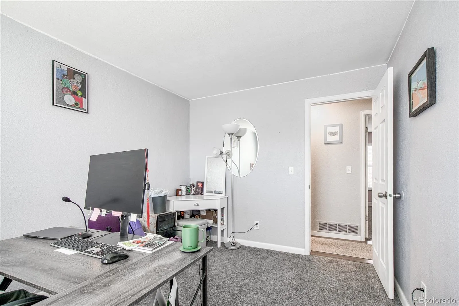 Where your evenings will most likely come to an end enjoying the comfort of this large cozy family room with a wood-burning fireplace and tiled front, perfect for those Colorado evenings. This level also includes a ¾ bath, laundry area with full size washer and dryer, and a private bedroom, offering a great option for guests or a home office.