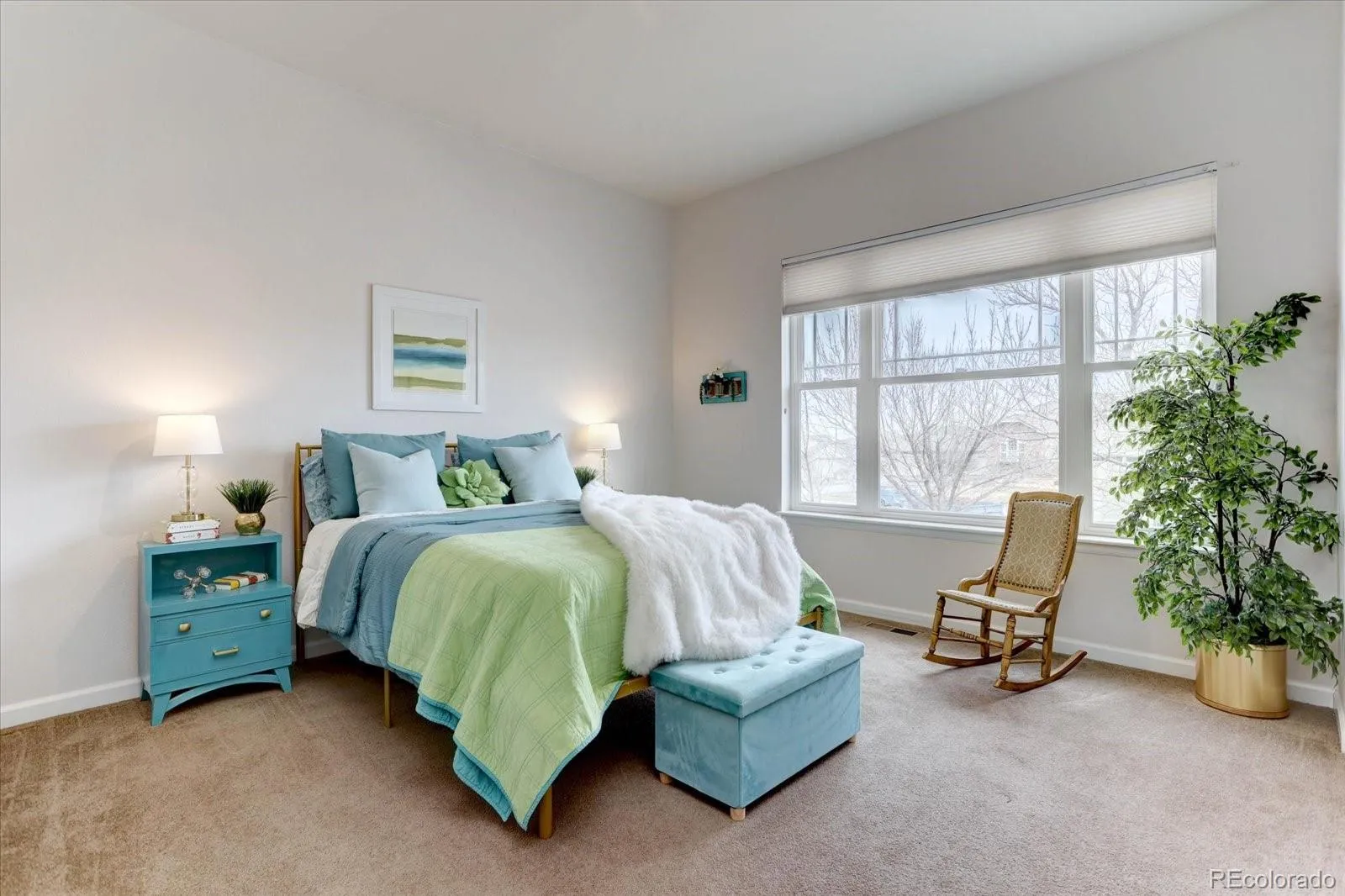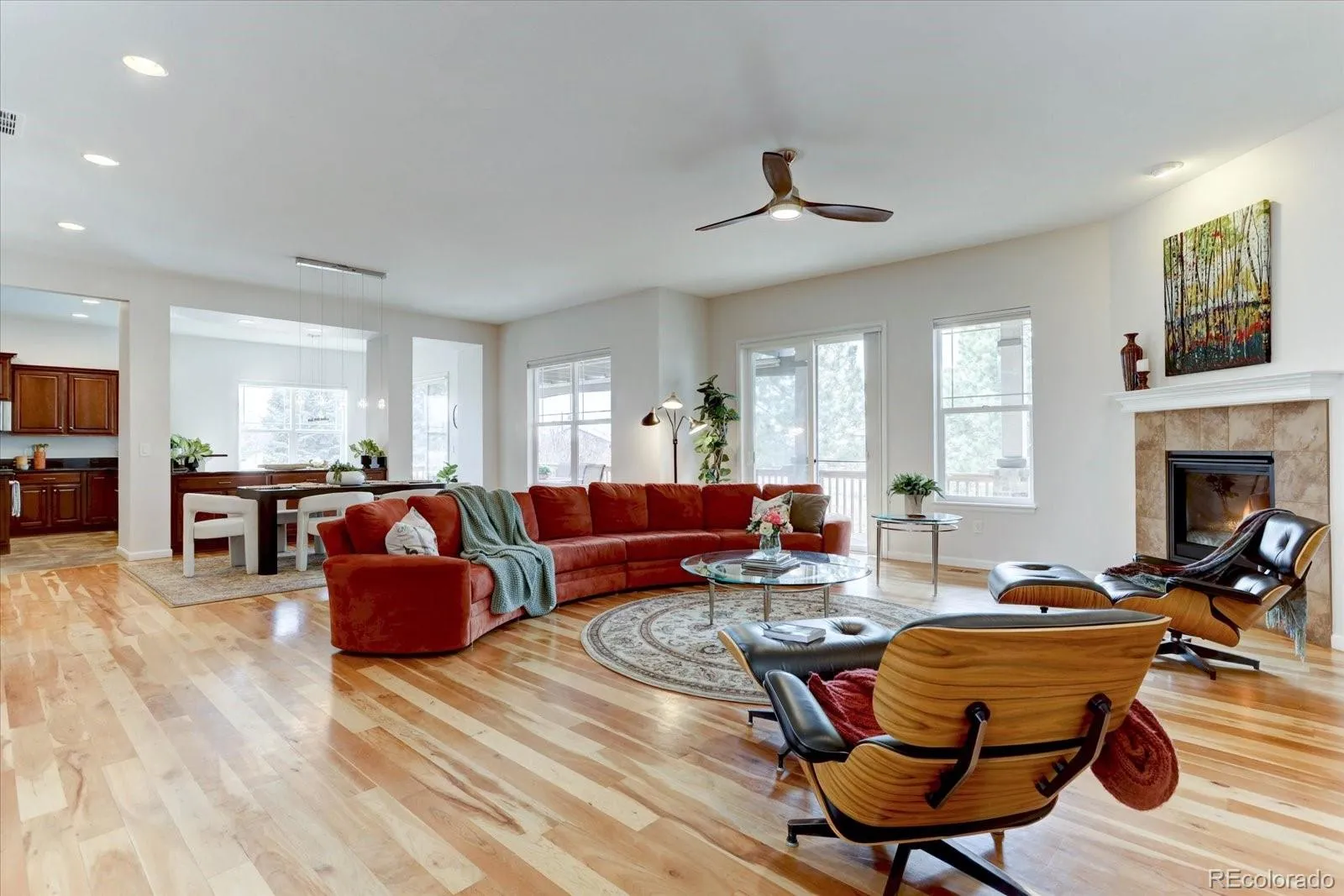 This Vail model Pulte home was designed with entertaining in mind. It has a gracious chef’s kitchen with SS appliances, granite countertops and a large prep island with eat in area that exits to a large covered deck sheltered by large Austrian pine trees but still allowing for Rocky Mountain views!