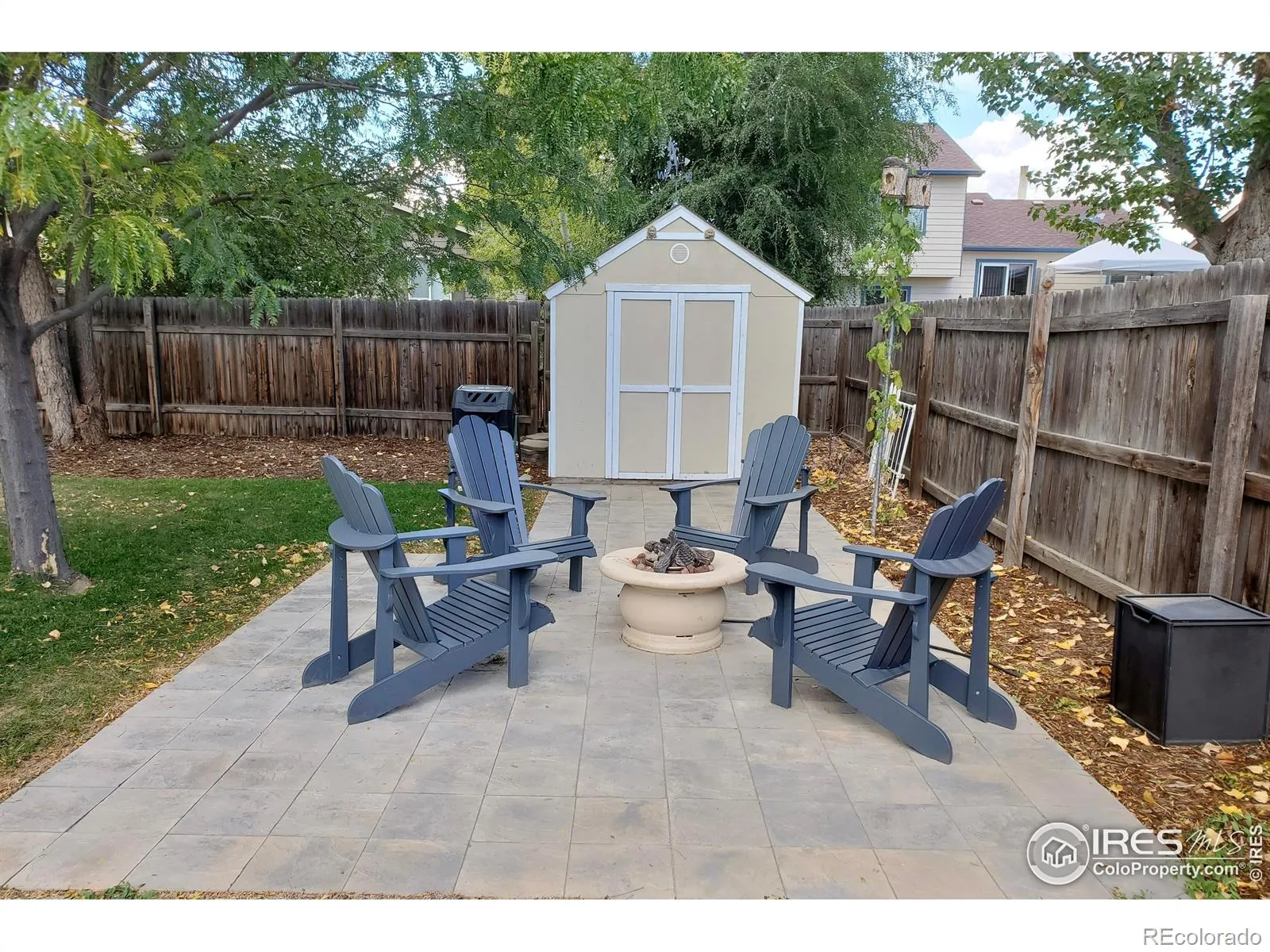 Sweet south facing brick home in the heart of Windsor where you can enjoy walking or biking to Main Street, parks, library, recreational center and Old Town Windsor’s great shops & restaurants. 1.9 miles to Boardwalk Park and Windsor Lake where you can swim, boat and fish. This thoughtfully laid out ranch has everything on one level. Wonderful large fenced backyard with a sprinkler system, 2 raised garden beds, mature landscaping and a garden shed. Fabulous dining patio and a second fire pit patio. Newer appliances include a Bosch dishwasher, gas range, microwave, refrigerator and washer/dryer. (Does not include small garage refrigerator.) Skylights add natural light to the kitchen and full bathroom. The primary bedroom has an attached 1/2 bath and walk-in closet. Tankless hot water heater, AC and low maintenance home exterior, no HOA. TV antenna gives you free local stations, which stays with the house. Radon mitigation system has been added. Smoke detectors updated in 2024. No basement, full crawl space with lots of room for storage. 2 car oversized garage with garage door opener and built-in cabinets and shelving. It is a clean, pet-free home that has been lovingly cared for and is move-in ready!