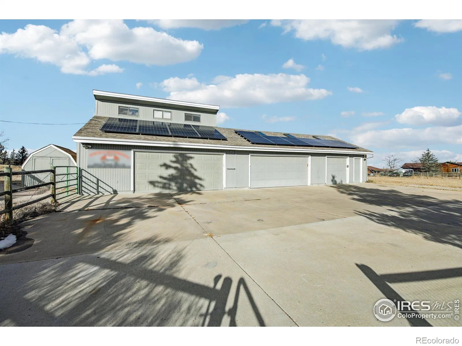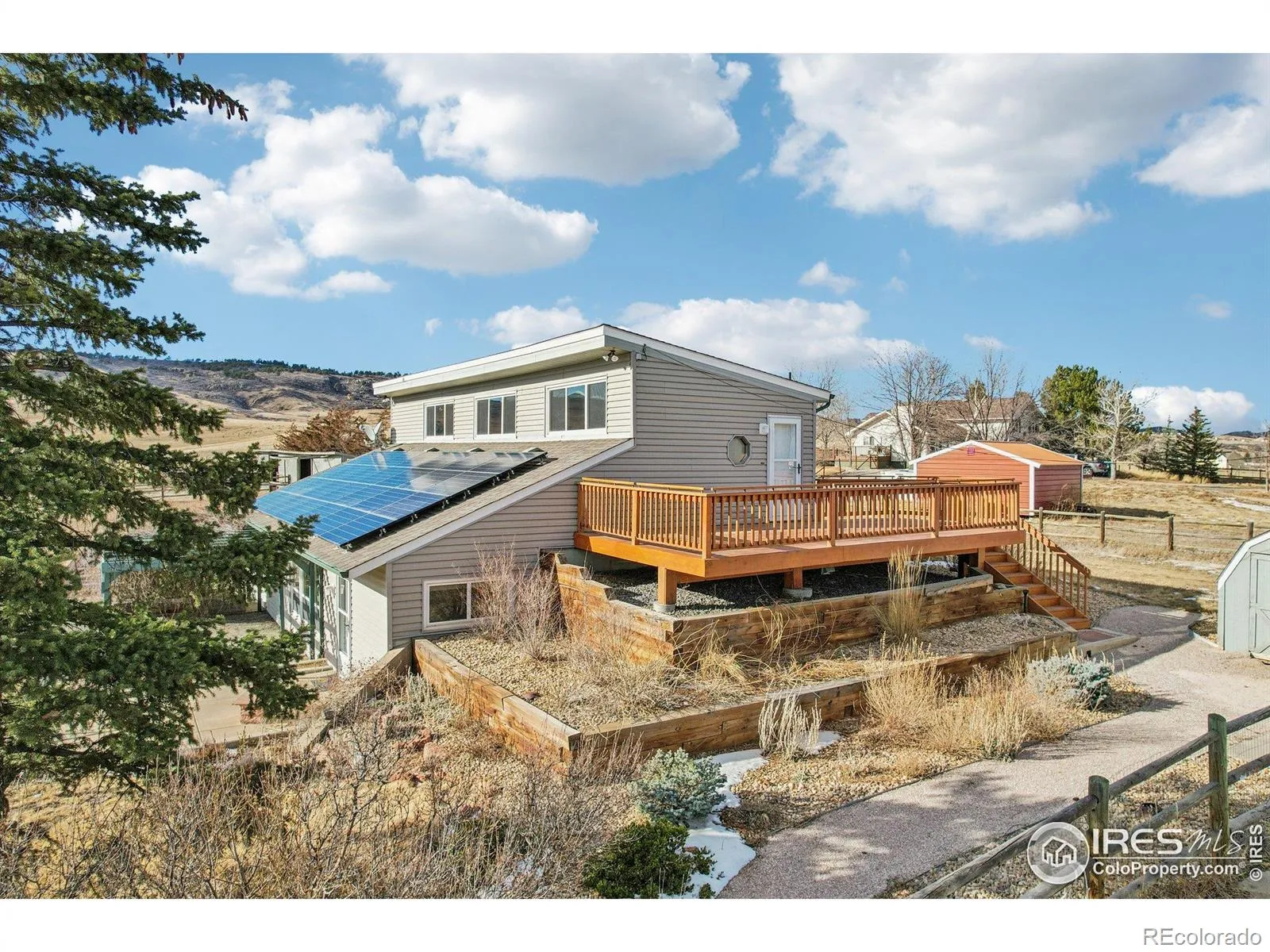 Rare Foothills Horse Property on 2.3 Acres with Access to 50 Acres of Trails and Ultra-Efficient Berm Home.Outstanding 2.3-acre horse property offering direct access to 50 acres of HOA-permitted use to open space with established horse and hiking trails. Step out the back gate and ride, walk, or explore for miles while enjoying protected views, abundant wildlife, and a setting that delivers privacy and long-term value. This fully fenced acreage is great for many horses, fowl, or other 4-H projects.The OVERSIZED 5 car garage will fit all your hobbies and toys. The finished bonus room above, the garage could serve as an ADU, home office, hobby space, or flexible living area.Of exceptional importance is the home itself, which is a berm-style, energy-efficient residence with owned solar and an electric vehicle charger. Designed for thermal efficiency and low operating costs, the property offers average monthly utility costs of approximately $60, including charging an electric vehicle (buyer to verify). This rare level of efficiency provides long-term cost benefits and stability.The home features a practical, accessible layout with excellent natural light and easy flow between indoor and outdoor spaces. The property is wheelchair and stroller accessible and includes an accessible bathroom designed to accommodate mobility needs, supporting ease of use throughout the home.Located in a quiet foothills area just 10 minutes south of Carter Lake, the property balances rural tranquility with convenient access to outdoor recreation and the surrounding amenities like the public TCP Golf Course and the central location to Denver, Estes Park, and Boulder.Horse properties that combine usable acreage, trail access, exceptional energy efficiency, and accessibility features are increasingly scarce. Bring your horses, animals, and vision-this opportunity will not last.