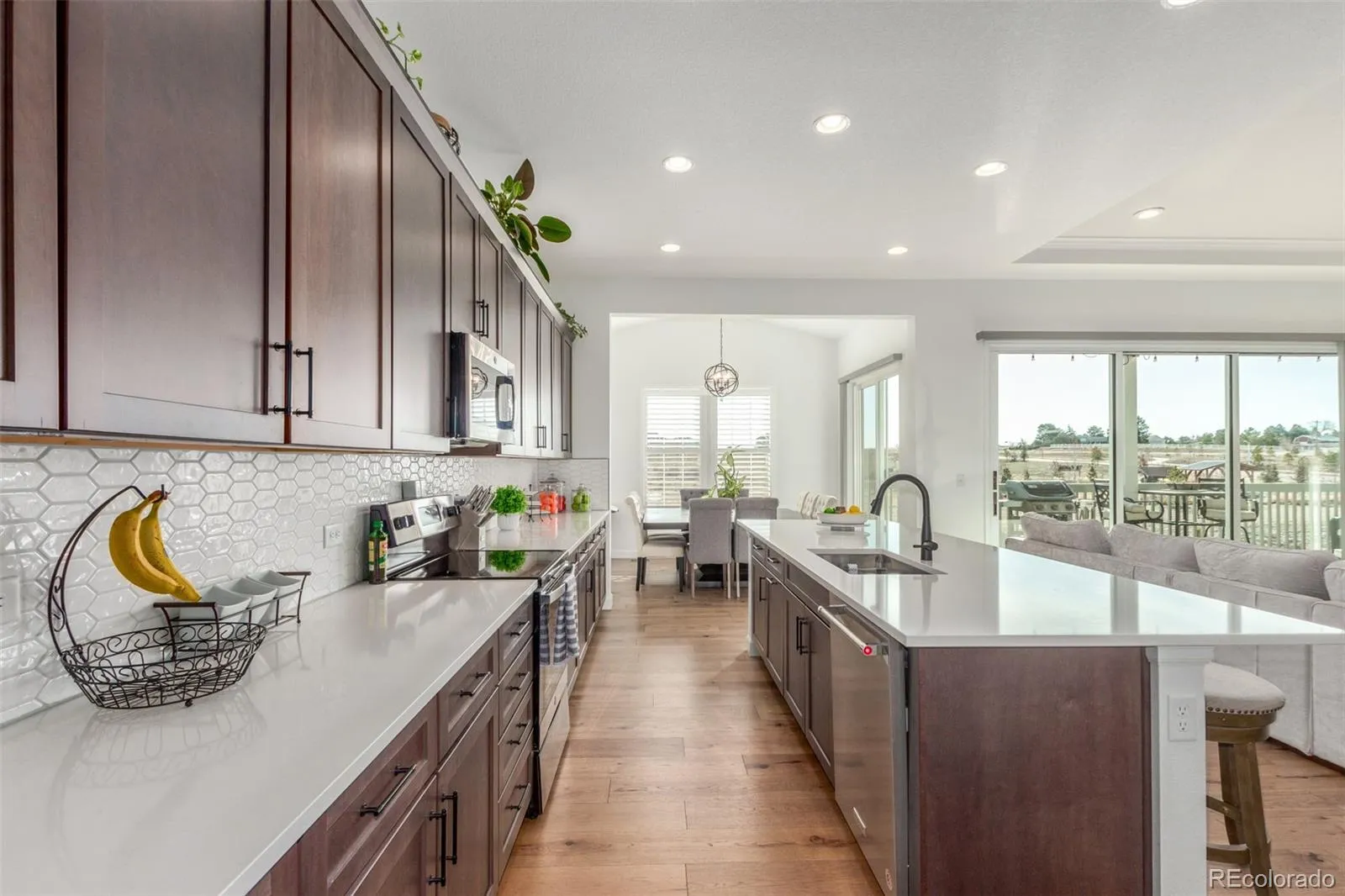 MAIN LEVEL PRIMARY BEDROOM SUITE! Experience the pinnacle of luxury living in this exquisite 5-bed, 4-bath home with a finished walk-out basement, built in 2022! This stunning home backs to tranquil open space, providing both privacy and spectacular views. The walk-out basement is an entertainer’s dream, with a fully finished space that includes a wet bar and ample room for relaxation or entertainment. The 2nd level features two additional bedrooms and a bathroom! Whether hosting friends or enjoying quiet evenings, this home is versatile and welcoming. Upon entering the main level, you are greeted by a bright and open floor plan featuring a spacious gourmet kitchen with a large island, high-end finishes, and top-of-the-line appliances, perfect for any culinary enthusiast. The kitchen flows seamlessly into the expansive living and dining areas, where sliding glass doors open completely to the large covered deck, creating an ideal indoor/outdoor living experience. This is definitely a MUST SEE feature!
