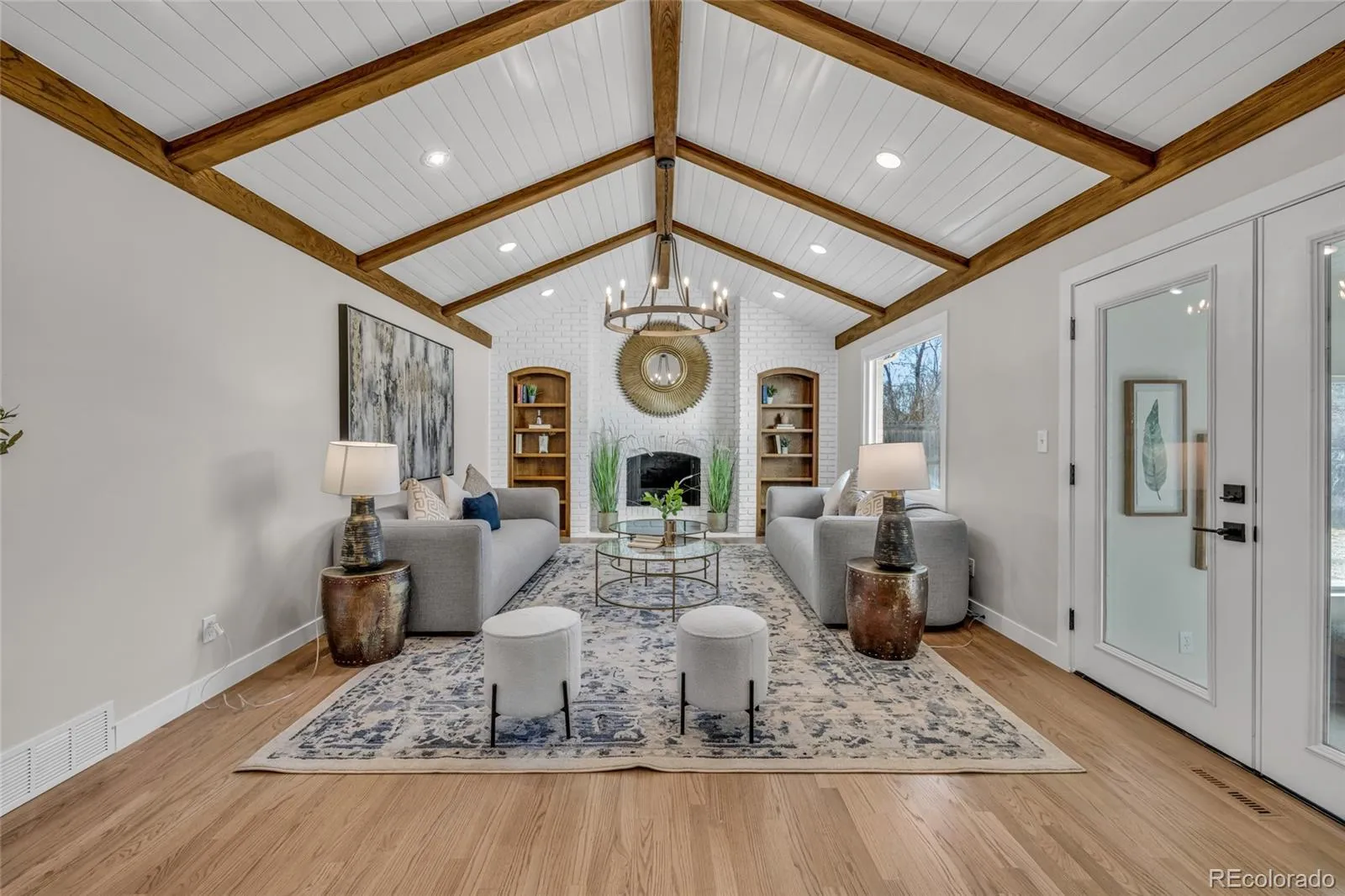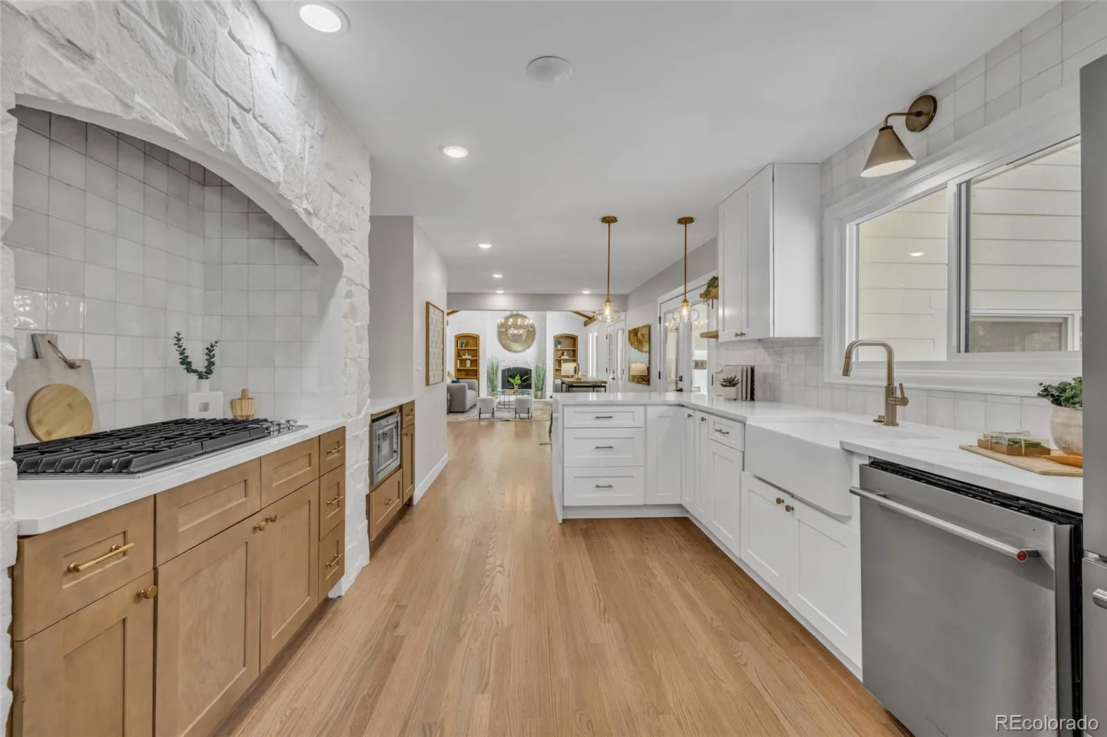 From the moment you arrive, new custom landscaping and a striking two-story entryway set the tone. Off the entryway, a welcoming sitting room with a fireplace flows seamlessly into the formal dining room. A beautiful home office off the entry features a stunning wood ceiling accent. Hardwood floors extend throughout the main level, leading to an incredible chef’s kitchen complete with all-new appliances, custom cabinetry, quartz countertops with a dramatic waterfall peninsula, arched stone detailing around the cooktop, and double ovens. The kitchen opens effortlessly to a breakfast nook and a vaulted living room with a fireplace and built-in bookshelves, creating the perfect space for both everyday living and entertaining. A light-filled sunroom with an electric fireplace overlooks the expansive backyard, offering a cozy retreat year-round.