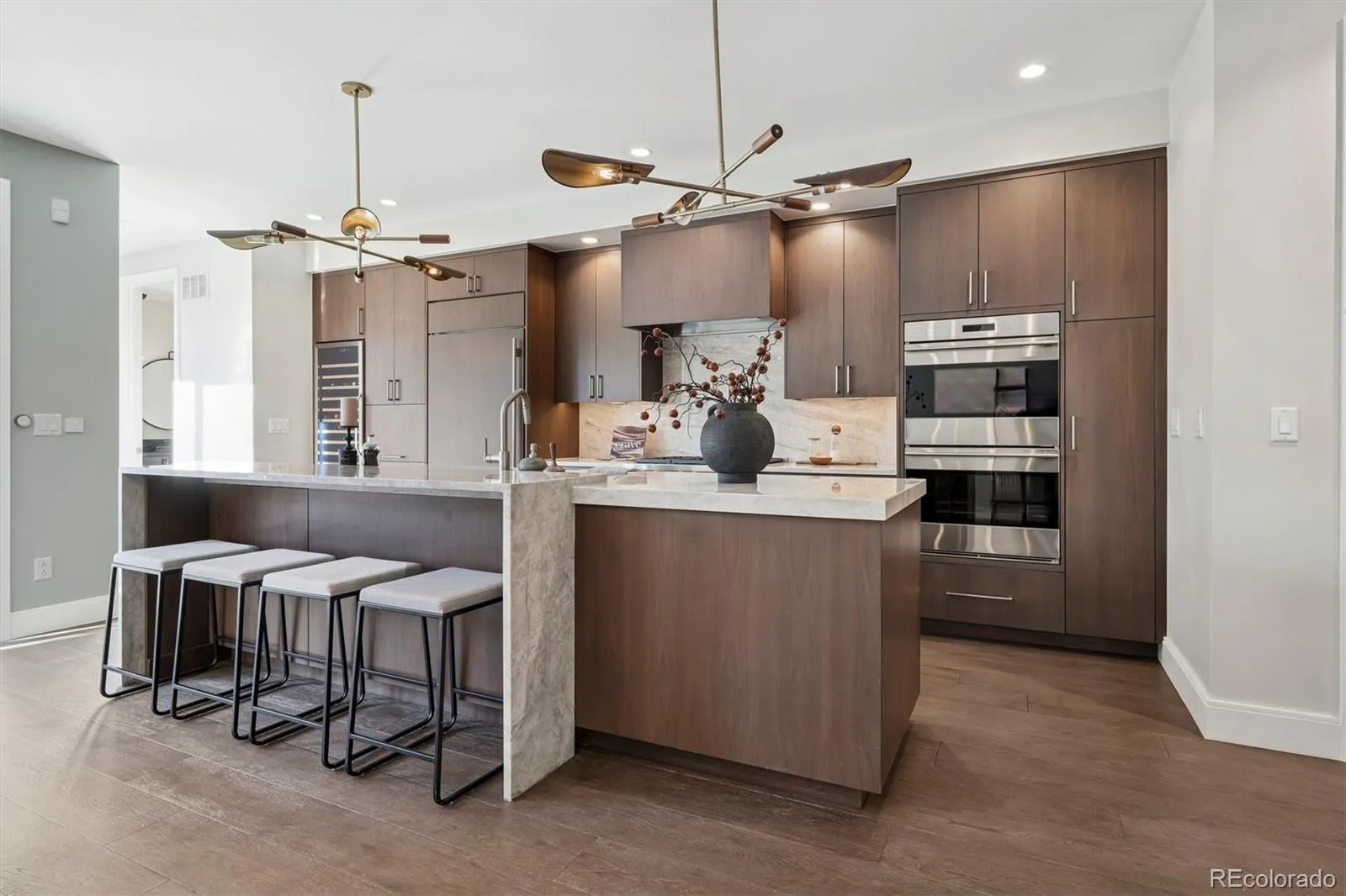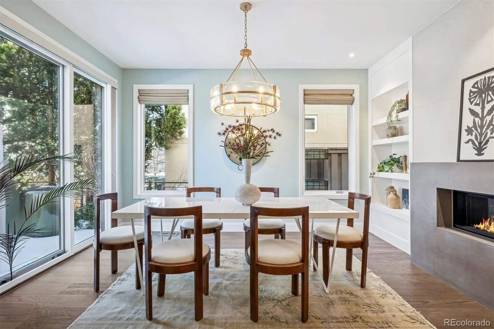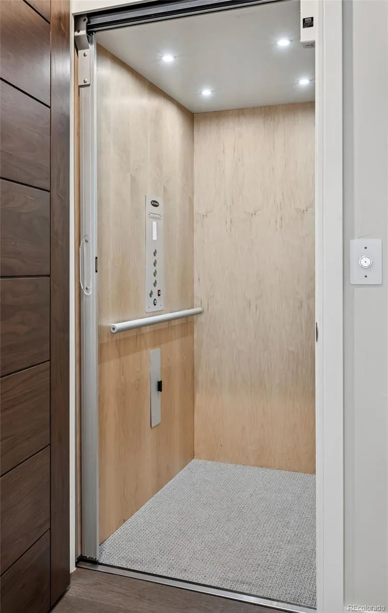 Meticulously crafted luxury in the heart of Cherry Creek North, this south-facing residence blends refined design, premium finishes, and effortless urban living. Situated on one of the neighborhood’s quietest and most desirable blocks, this home is just half a block from James Manley Park and two blocks from Cherry Creek’s premier shopping and dining. Built in 2020, the home spans approximately 4,587 square feet and features four bedrooms, five bathrooms, and an elevator servicing all levels. The open-concept main floor is highlighted by nine-foot ceilings, designer lighting, and a dual-sided fireplace anchoring the living and dining areas. The kitchen is appointed with Wolf appliances, a Sub-Zero refrigerator, a Wolf gas rangetop, custom cabinetry, and Taj Mahal quartzite countertops.The second level is home to a luxurious primary suite that serves as a private retreat, complete with its own fireplace, Juliet balcony, custom walk-in closet, and a separate seating area perfect for an additional home office or reading nook. The primary suite also includes an ensuite spa-inspired bathroom featuring a soaking tub and upscale finishes. Additional bedrooms on the second and third levels offer ensuite bathrooms and generous closet space. The lower level provides a wet bar and a versatile recreation area ideal for a media room, fitness studio, or guest accommodations.Thoughtfully designed indoor-outdoor living spaces include a rooftop deck with stunning sunset views, a private yard, and a semi-courtyard that extends off the kitchen and main living area. An attached two-car garage completes the property. This exceptional home presents a rare opportunity for discerning buyers seeking contemporary luxury, walkability, and timeless design in one of Denver’s most coveted neighborhoods.