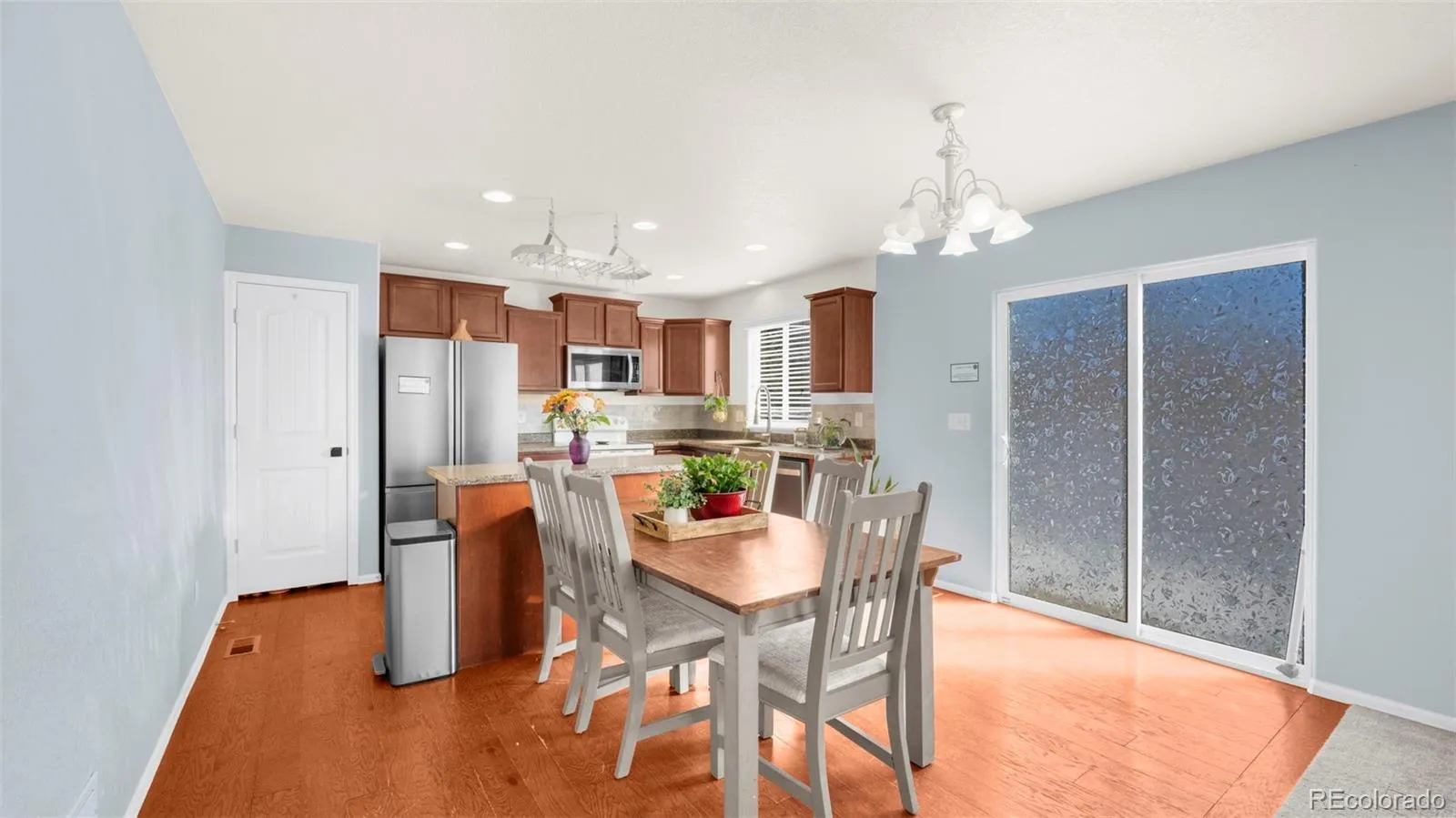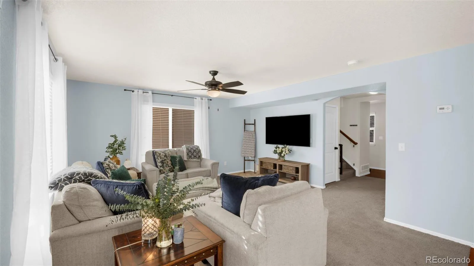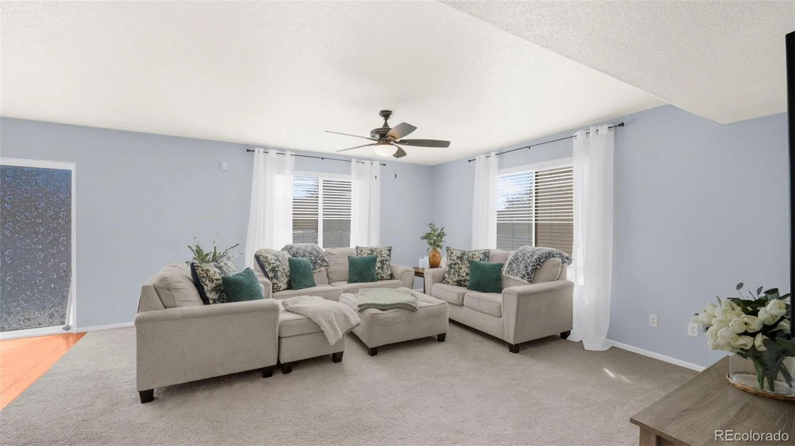 Welcome to this well-maintained two-story home in the Sierra Springs community, offering a functional layout, modern comforts, and low-maintenance living. Built in 2010, this home features 4 bedrooms, 3 bathrooms, and 1,476 square feet of thoughtfully designed living space. The main level offers an open-concept living and dining area with durable wood laminate flooring and easy access to the kitchen. The kitchen is designed for both everyday use and entertaining, featuring a breakfast bar, solid-surface countertops, island, pantry, and walk-out access—perfect for indoor-outdoor flow. A convenient half bath completes the main floor. Upstairs, all four bedrooms are located together, including a spacious primary suite with an adjoining five-piece bath, double vanity, and walk-in closet. An upper-level laundry area adds everyday convenience, keeping chores close to the bedrooms. Additional features include central air conditioning, forced-air heating, ceiling fans, and an attached two-car garage. The home sits on a level lot with front landscaping maintained by the HOA, allowing for easy upkeep and more time to enjoy the community. The Sierra Springs HOA provides lawn care, snow removal, trash service, and covenant enforcement, and the neighborhood offers nearby parks and open space. Located within Harrison School District 2, with convenient access to shopping, dining, military bases, and major roadways, this home offers comfort, efficiency, and an ideal Colorado Springs location.