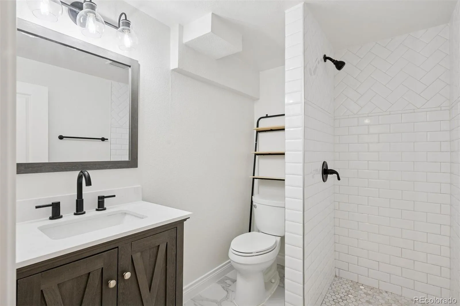 Charming, fully remodeled home in the sought-after Holly Hills neighborhood, within the Cherry Creek School District. The updated kitchen features soft-close cabinetry and drawers, new Whirlpool stainless steel appliances, and sleek quartz countertops. The main level offers three spacious bedrooms and a beautifully remodeled full bath with dual sinks and a luxurious walk-in shower.