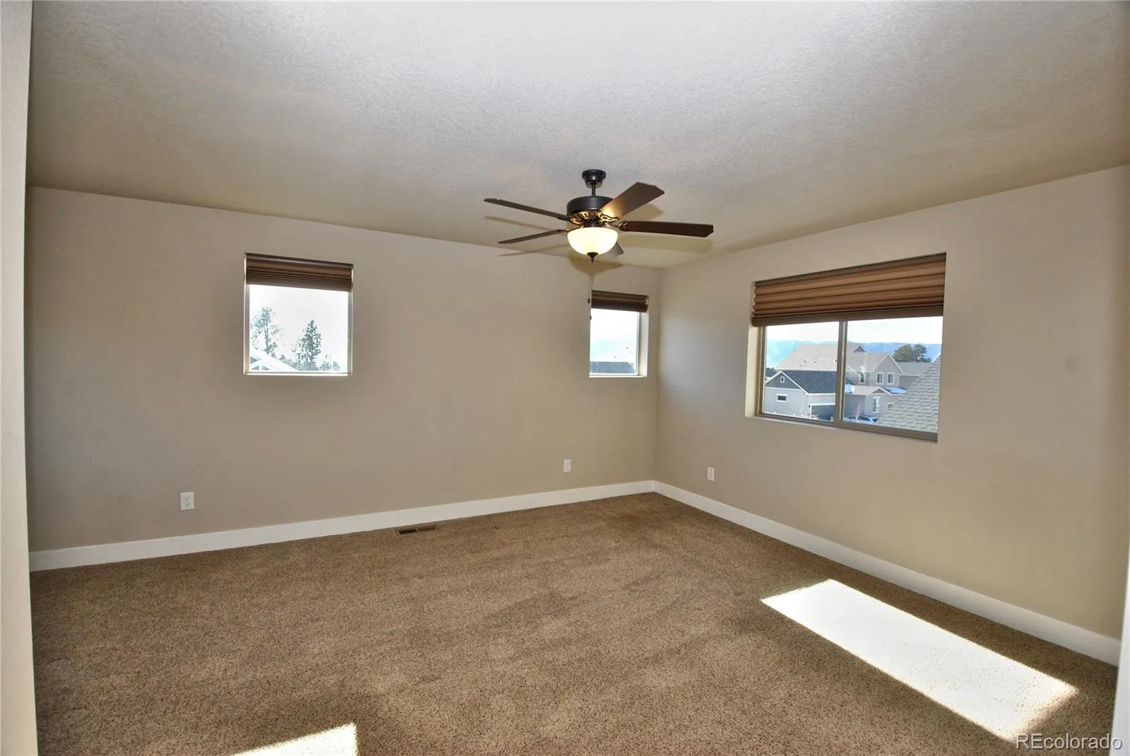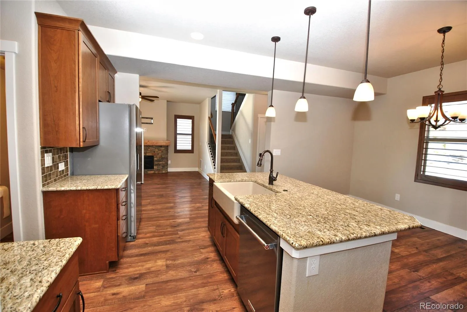 SUPERB LOCATION!! in Sanctuary Pointe with Pikes Peak and Mountain Views only a block from Regional park and playground. Patio/Single family lifestyle, HOA dues only 325 Year! Open spacious near New condition with Engineered wood floors throughout the main level living, dining and kitchen areas. Cozy living room accented by gas fireplace that walks out to the Zeroscaped yard and large patio. The big eat in kitchen features granite counters, upgraded kitchen aid appliances including gas stove, soft close cabinets and Custom pantry. Upstairs includes spacious family room and 2 huge bedrooms with awesome Mountain Views. Custom master bath suite with sitting area. Enjoy the fully finished garage with Epoxy floors and Custom cabinets. Central A/C, Custom blinds and shutters, washer/dryer and stucco exterior. All ready and Close to I-25 Corridor.
