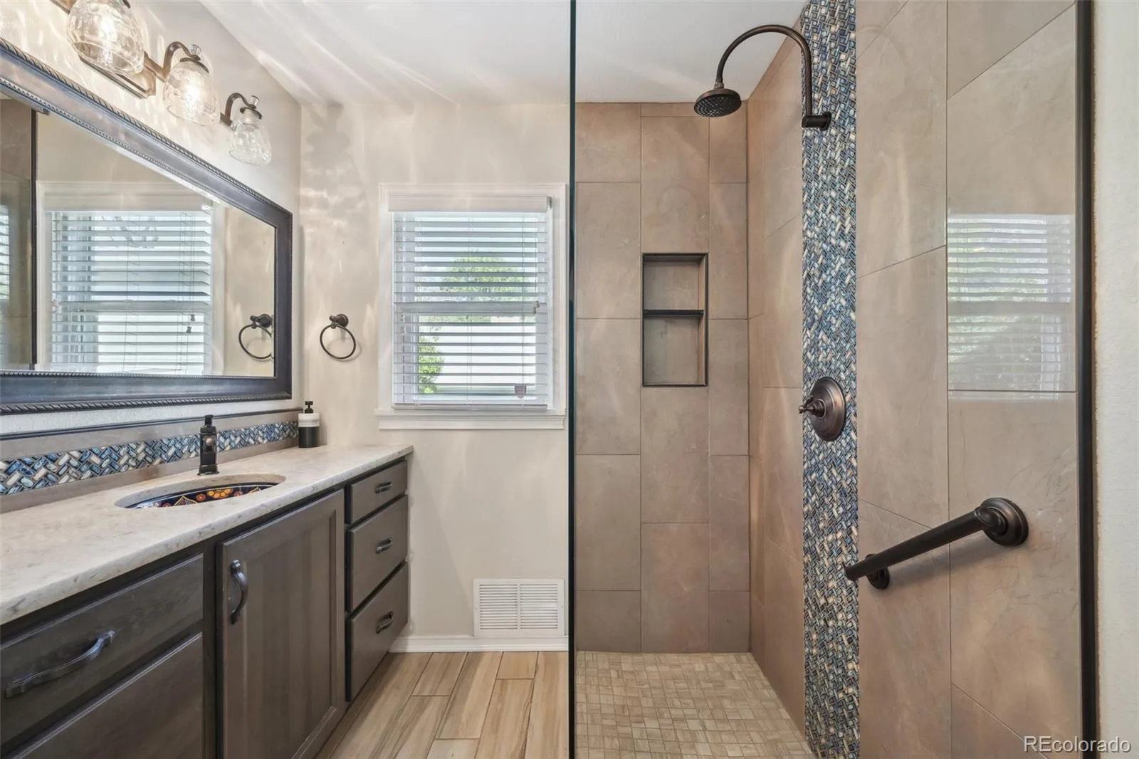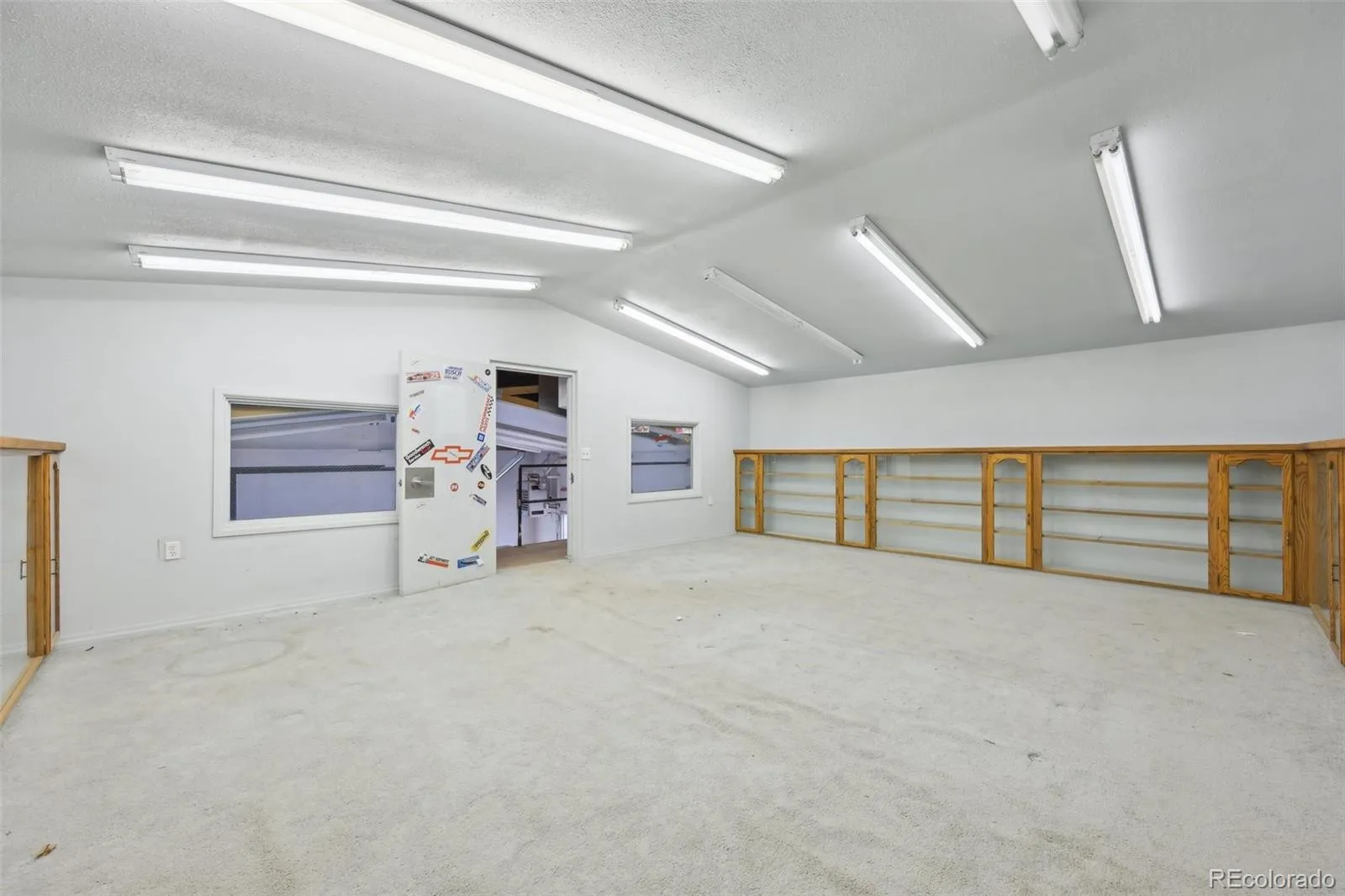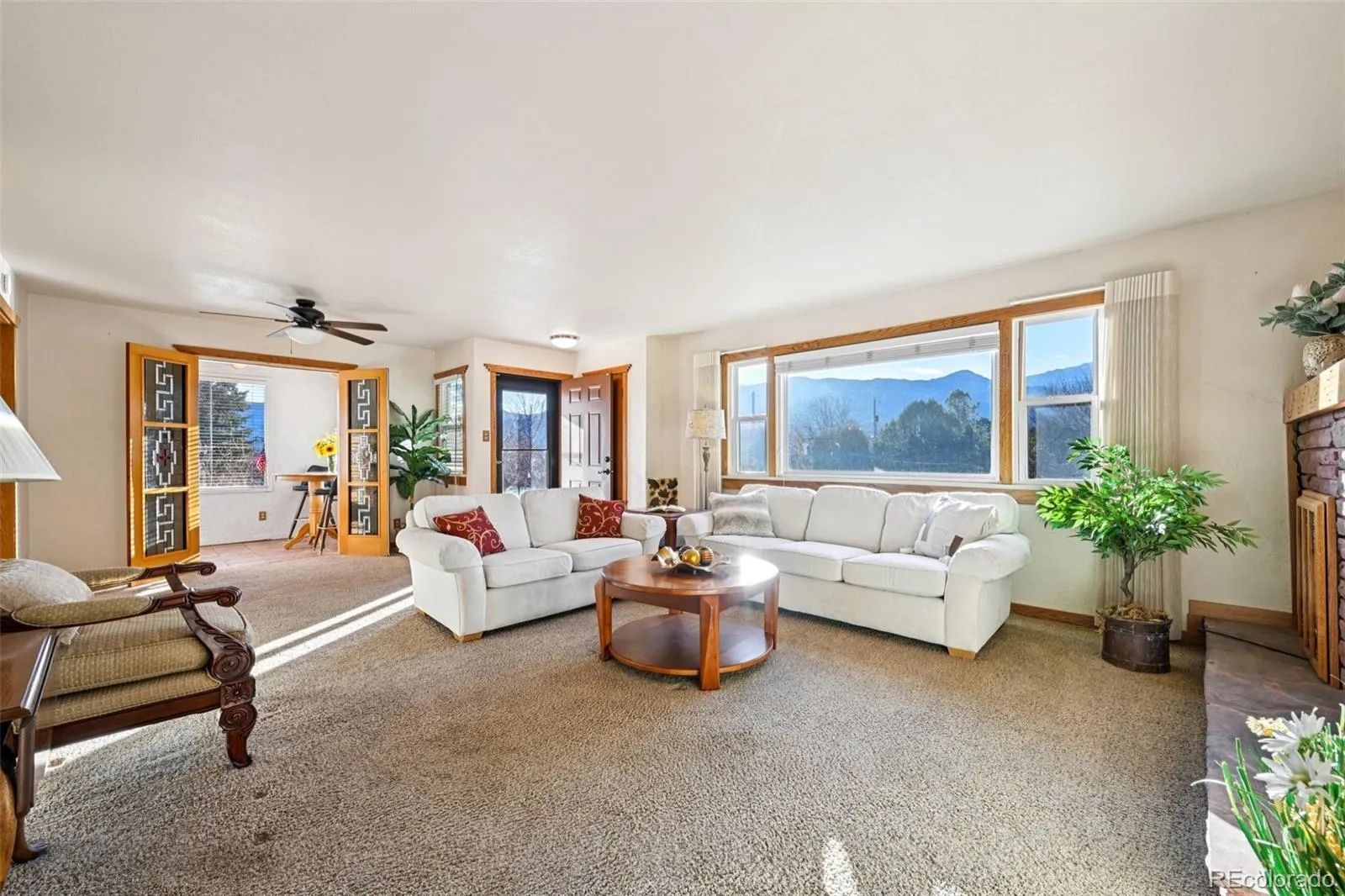 MUST SEE!! *SEE ATTACHED 3D TOUR* Unique and rare opportunity for west-side living with HUGE DETACHED 6+ car garage and workshop, large main residence, plus additional attached living space with a fantastic GALLERY/STUDIO/SHOWROOM space with exterior access AND access from the main residence * Enjoy main level living with the Primary Bedroom, beautifully renovated bath with walk in shower, plus a main level office. Large Living Room on the main level with fireplace, plus a beautiful, sunroom perfect for relaxing and growing plants, with beautiful stained glass doors. Large open kitchen with eat-in nook and unique custom accents on the cabinets * Off of the main level is access to the INCREDIBLE gallery space, which includes a lower level room with built in storage cases, and an upper level GORGEOUS GALLERY with pristine hardwood floors, high ceilings, built-ins and SPECTACULAR PIKES PEAK VIEWS! You’d never know this space was here – you’ll about keel over when you see it! * The home has a finished lower level also with potential for a kitchenette, loads of storage space, a Family Room with fireplace, and private entrance/exterior door to the front of the property – perfect for guest quarters or in-law suite * Step out back and you’ll see the MASSIVE 6+ CAR DETACHED GARAGE and heated workshop * 2 story high ceiling plus an upper level garage office. Fruit trees on delightful, private patio in back with an additional garden shed. 2nd driveway on southern edge is part of property -great for RV/camper/boat storage. PRIME location with easy access to main thoroughfares * No covenants in this established n’hood! Water heater and Central A/C recently replaced. 2 furnaces and one is Brand new furnace (installed Oct 2025) New Roof finished Oct 30. This is a very unusual property with a lot of different spaces. Please refer to 3D Virtual Tour link for floorpan. The main house is a ranch, with the Gallery addition making it a 2 story.