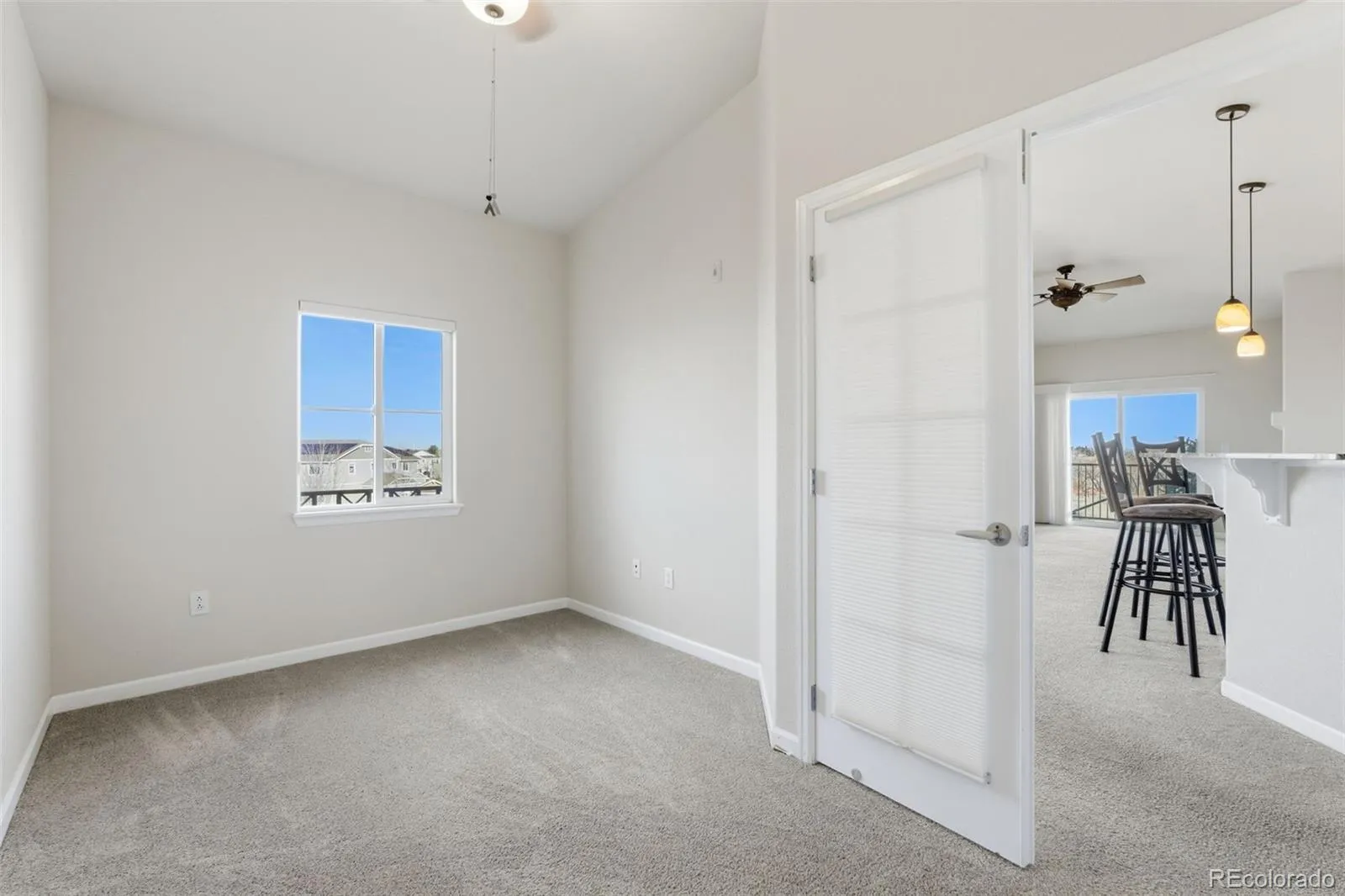 Discover one of the best values in the highly sought-after West Woods community, now newly priced to move. Tucked into an exceptionally private setting, this home stands out with breathtaking panoramic views and a rare sense of peace just minutes from everything. Start your mornings on the east-facing private deck, where sweeping vistas and natural light create the perfect everyday retreat. Inside, the bright, open floor plan is designed to maximize both comfort and scenery, featuring a spacious living area and a breakfast bar with included seating—ideal for casual dining or entertaining. The primary suite offers a true escape, complete with a walk-in closet and a five-piece en suite bath. A second bedroom and full bath provide comfortable accommodations for guests, while a dedicated home office adds flexibility for remote work or additional living space. Generous walk-in closets throughout the bedrooms and office ensure exceptional storage. With direct access to trails, proximity to dining, and convenient commuter routes, this home combines privacy, views, and location—now at a price that makes it one of the most compelling opportunities in West Woods.