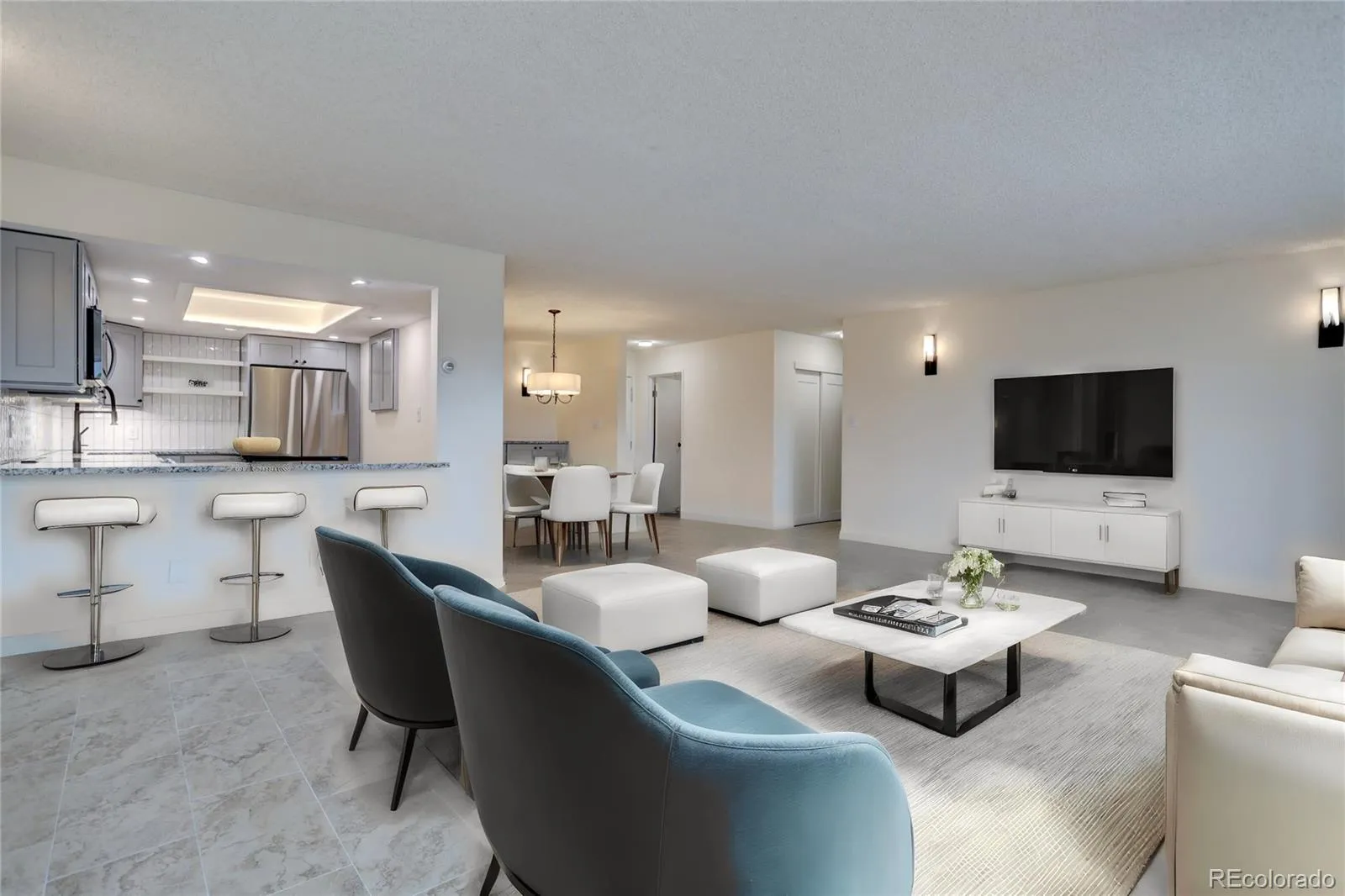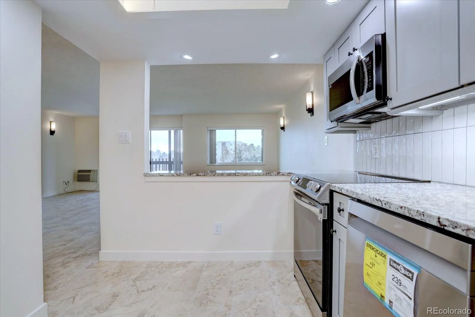 The HEATHER GARDENS condo you’ve been waiting for: You’ve seen the rest; now tour the BEST! Thoughtfully remodeled in 2024 for the OWNERS’ USE – NOT a cheap, investor’s fix and flip. No plastic-y, fake wood floors here! Think QUALITY materials and QUALITY installation. Professionally installed ceramic tile throughout the main living areas ensures timeless elegance and durability. A complete kitchen remodel boasts all-new high-end stainless appliances, “soft close” cabinetry, sparkling granite countertops, and a large farmhouse sink. Upgraded task and ambient lighting on dimmers – including ELEGANT WALL SCONCES – will allow you to set the mood for any occasion. Dining room cabinetry combines style and storage. Every detail has been thoughtfully upgraded, including updated electric panel. Heather Gardens’ 200 park-like acres are conveniently located to I-25, 225 and the Cherry Creek State Park. The HG lifestyle means access to a beautiful golf course and pro shop, fitness center, indoor and outdoor pools, spa, saunas, on-site bar and restaurant, wood shop, billiards room, art studio, theater, and more, all located in the impressive clubhouse where endless classes, clubs, and activities are offered each month. Imagine living on the QUIET side of the HG community in this bright and airy CORNER UNIT overlooking open space, meadows, and mountains. The condo’s cement construction provides excellent noise insulation. Stair-free living is yours, from the secure, deeded underground parking to your unit’s keyless entry. Enjoy relaxing treetop views from your sunny, screened-in lanai. Stay organized with two large indoor storage lockers. Comfort is guaranteed year-round with HOA-provided boiler-supplied heat and endless hot water, while the corner location maximizes natural light and privacy. This is a rare opportunity to own a fully renovated, move-in-ready corner unit with mountain views, premium upgrades, and enduring quality finishes in this premier 55+ community.
