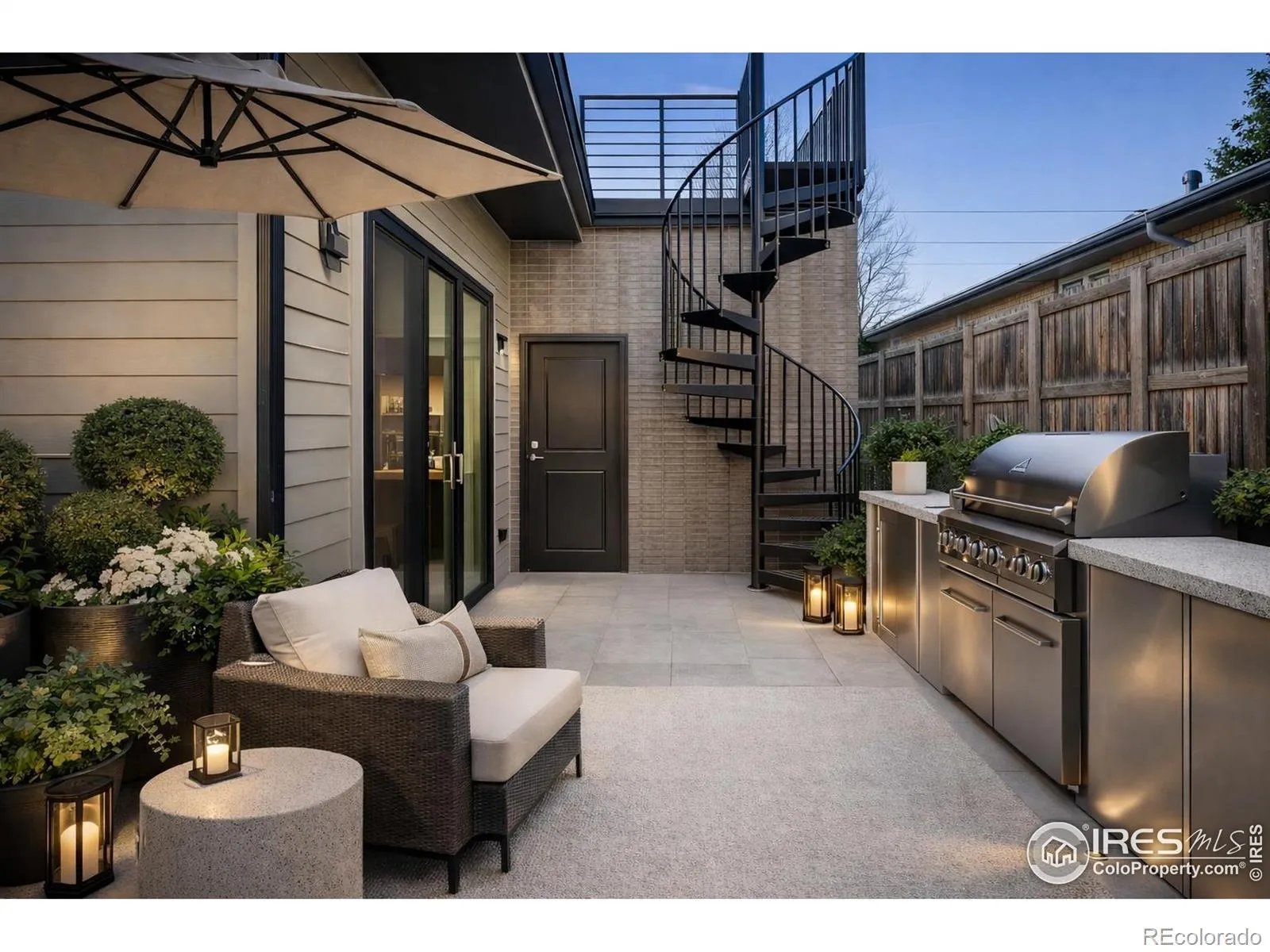 Grandeur on Grape. A rare architectural offering where elevated design meets effortless luxury, this exceptional newer-construction residence delivers refined living framed by sweeping Flatiron and foothill views. Thoughtfully curated with impeccable craftsmanship and sophisticated finishes throughout, the home unfolds with soaring ceilings, abundant natural light, and a seamless open-concept living, dining, and kitchen experience designed for both grand entertaining and everyday elegance. At the heart of the home, the chef’s kitchen is appointed with premium appliances, an oversized island with seating, and custom cabinetry, flowing effortlessly into a generous family room, creating a true gathering destination. Walls of windows and strategic lighting enhance the home’s airy, luminous ambiance. Multiple outdoor living spaces elevate the lifestyle experience. The primary suite opens to a private deck perched above the garage, capturing breathtaking foothill and Flatiron vistas. A secondary bedroom enjoys its own front-facing terrace with iconic views, while the expansive primary terrace features a dramatic spiral staircase leading to the oversized backyard, an exceptionally rare find. The luxurious primary retreat offers a fireplace, spa-inspired five-piece bath with an oversized dual shower, soaking tub, and a custom walk-in closet. Each bedroom is a private sanctuary with ensuite bath and walk-in closet, ensuring comfort and privacy throughout. A main-level bedroom provides ideal flexibility for a home office or guest suite. The lower level extends the living experience with a guest bedroom, expansive recreation room, and wet bar, perfect for hosting and relaxation. Just three years old and meticulously maintained, this residence represents a rare opportunity to own a modern masterpiece where timeless design, elevated craftsmanship, and extraordinary views converge. An exceptional offering for the most discerning buyer.