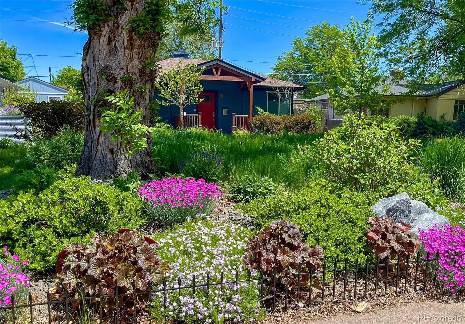 ***OPEN HOUSE! Sun 2/8, 1-3*** Welcome home to 812 Poplar Street, a stunningly renovated Montclair gem surrounded by a pollinator’s paradise, just steps from beloved parks, local shops, and all there is to love about Lowry! Inside, the home is light, bright, and thoughtfully updated, with the kitchen, bathrooms, and the basement remodeled just one year ago. Gleaming hardwood floors, fresh paint, new windows, and an open floor plan create a welcoming feel throughout the main level. The kitchen features quartz countertops, stainless steel appliances, a gas range, and a custom tile backsplash, perfect for the seasoned chef or happy host. Two main-level bedrooms include new ceiling fans, recessed lighting, and retractable top-down, bottom-up blinds for privacy and light control. A nearby bath showcases chic herringbone tile with midcentury touches of walnut, black, and white. The finished basement offers a private family room with luxury vinyl plank flooring, an additional bedroom or study, a renovated full bath, a large laundry room with utility sink, and ample storage. Smart upgrades include a Nest thermostat, Ring doorbell, and exterior security lighting, along with central AC for year-round comfort. Step outside to enjoy a beautiful wraparound patio and a fully-fenced backyard designed for unforgettable entertaining, projects, or play. Watch the sunset from your covered front porch and embrace a whimsical outdoor oasis filled with stunning new plants, flowers, and a comprehensive irrigation system. An underground electrical conduit is already installed to accommodate a future garage, adding instant value potential! Surrounded by Kittredge, Denison, Montclair, and Crescent Parks, with Montclair Rec Center nearby, this location is hard to beat. Walk to Lowry Towne Center shops and restaurants or hop on the A-Line at Central Park Station for an easy commute.
