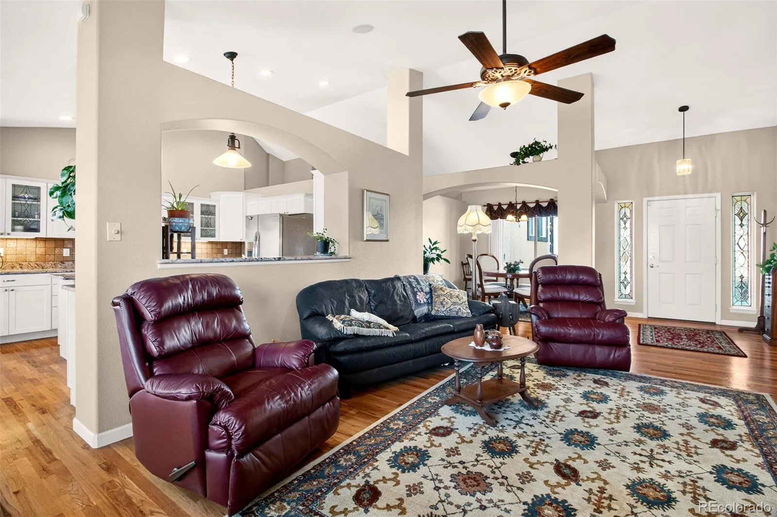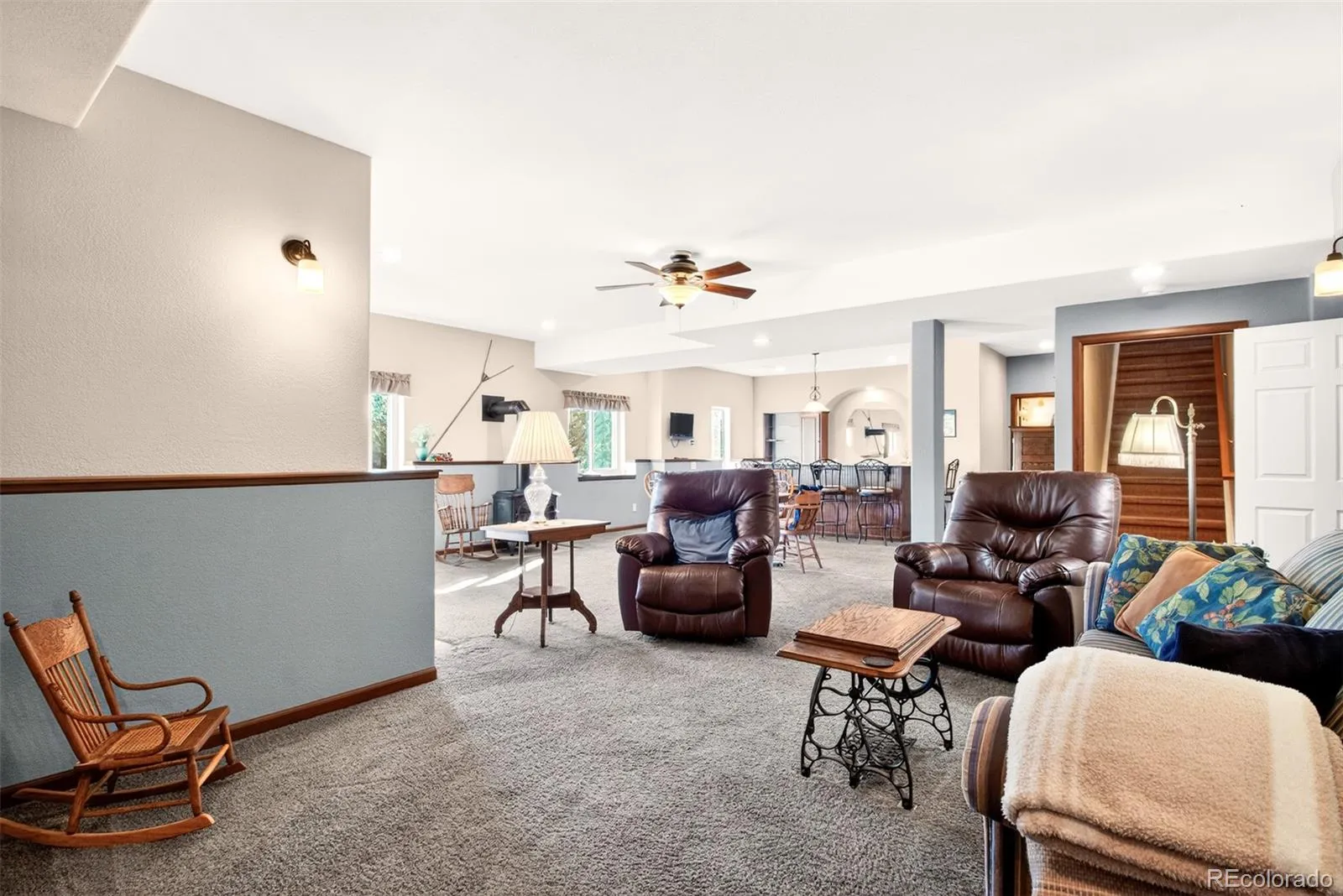 Main-Level Living…Impeccably Maintained, ONE-OWNER Semi-Custom Stucco Rancher, On 7.22 Pristine Acres With A Beautiful Mix Of Mature Trees, Open Meadow, And Mountain Views. Designed For Elegance And Function, The Home Offers Two Luxurious Owner Suites, A Walk-Out Lower Level, And A Fully Finished 48×42 Outbuilding/Shop, Ideal For Collectors, Hobbies, Or Additional Garage Space. The Open, Light-Filled Floor Plan Features Vaulted Ceilings And Rich Oak Hardwood Flooring Throughout The Dining Room, Great Room, Kitchen, And Hallways. The Expansive Great Room Showcases Custom Built-Ins, A Gas-Log Fireplace, And Walk-Out Access To A Private Deck Overlooking The Ponderosa Pines. The Gourmet Kitchen Includes Custom Cabinetry, Under-Cabinet Lighting, Granite Countertops, An Oversized Island With Prep Sink, Gas Range, A Cozy Breakfast Nook, And A Spacious Pantry. The Primary Suite Offers A 5-pc Bath, Walk-In Closet, And Private Deck With Serene Acreage Views. The Second Suite Is Generously Sized With An Oversized Sitting Area, His-And-Hers Closets, And Stunning Pikes Peak Views. A Conveniently Located Laundry And Guest Bath Sit Between The Suites, While The North Wing Hosts Two Additional Guest Bedrooms And A Full Bath. The Lower Level Features A Large Family Room With A Wet Bar, Gas Fireplace/Stove, Theater Area, 9-foot Ceilings, And A Walk-Out To A Private Patio. Ample Unfinished Space Allows For Future Expansion Of Up To Three Additional Bedrooms And A Bath, Or The Creation Of A Fitness Studio, Hobby Space, Or Storage. Notable Features Include A Newer Roof, Furnaces & Central A/C, Water Heater And Water Softener. A Safe Room, Leaf-Filter Gutters, Green House, 3-Car Attached Garage, And A Finished Outbuilding With Concrete Floor, 220V Power, And An Overhead Door. Zoned For Horses And Located On A Quiet Cul-de-Sac With Paved Roads, Minutes From Shopping, Dining, Golf Course, And Easy Access To Peterson, Schriever Or The Air Force Academy. Don’t Miss This Opportunity!