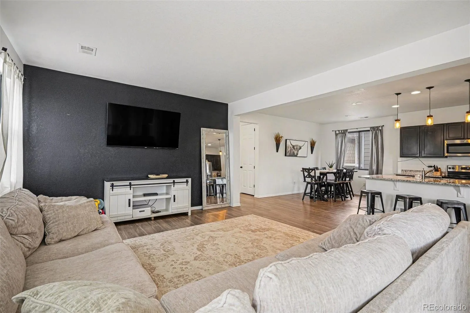Welcome to this beautiful 2-story home featuring a well-designed open floor plan. The main level offers a seamless flow between the living room, dining area, and kitchen—ideal for entertaining or everyday living. Built-in Bluetooth speakers in the kitchen and living room add a modern touch.