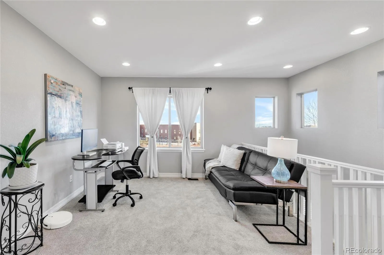 Upstairs, a spacious open loft offers flexible use as an office or retreat. The south-facing primary suite includes a luxurious five-piece bath and large walk-in closet. Two secondary bedrooms share a full bathroom with double vanity, and the laundry room is conveniently located on the second floor.