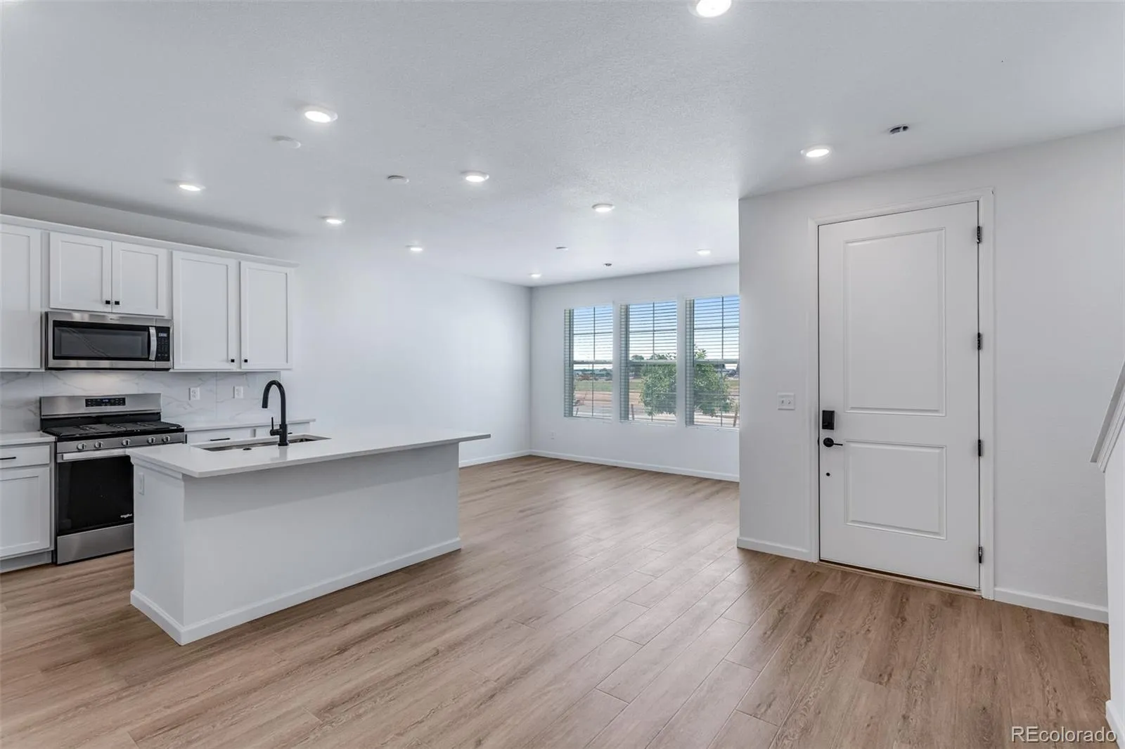 Natural-wood WPC flooring creates a bright, elevated feel throughout the main level, while the kitchen shines with linen-colored cabinetry, white quartz countertops, and stainless-steel appliances. Upstairs, the primary suite is a true retreat with abundant natural light, a private en-suite bath, and a spacious walk-in closet. Enhanced with HomeSmart® technology – including a Ring® doorbell, smart lock, and smart thermostat – this move-in-ready home delivers stylish, low-maintenance living and is available now for your next chapter.