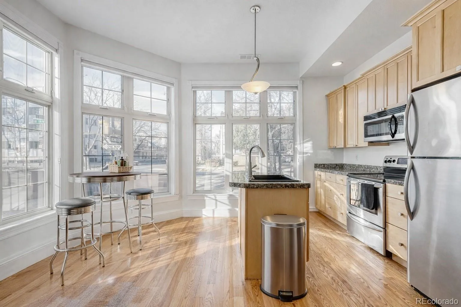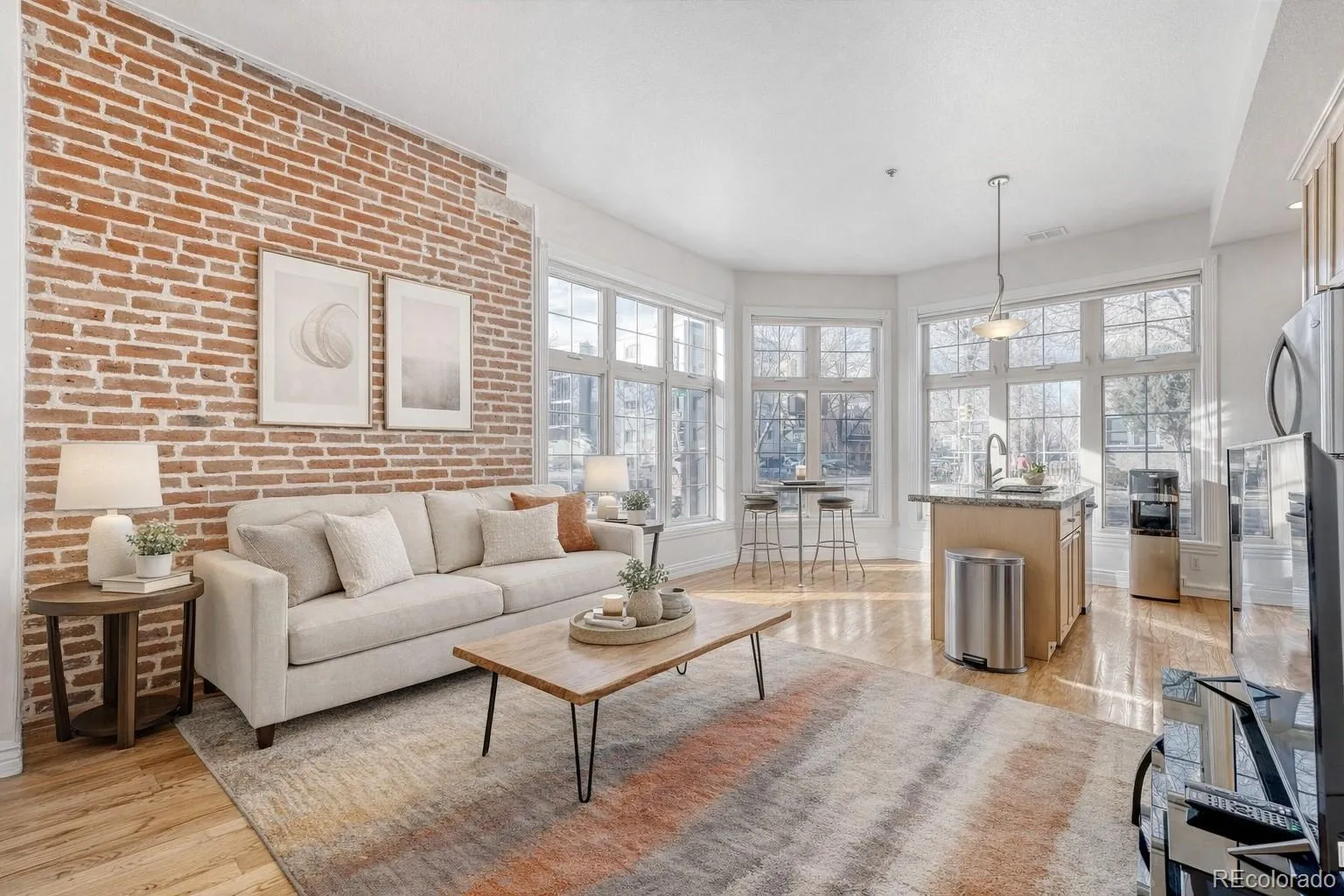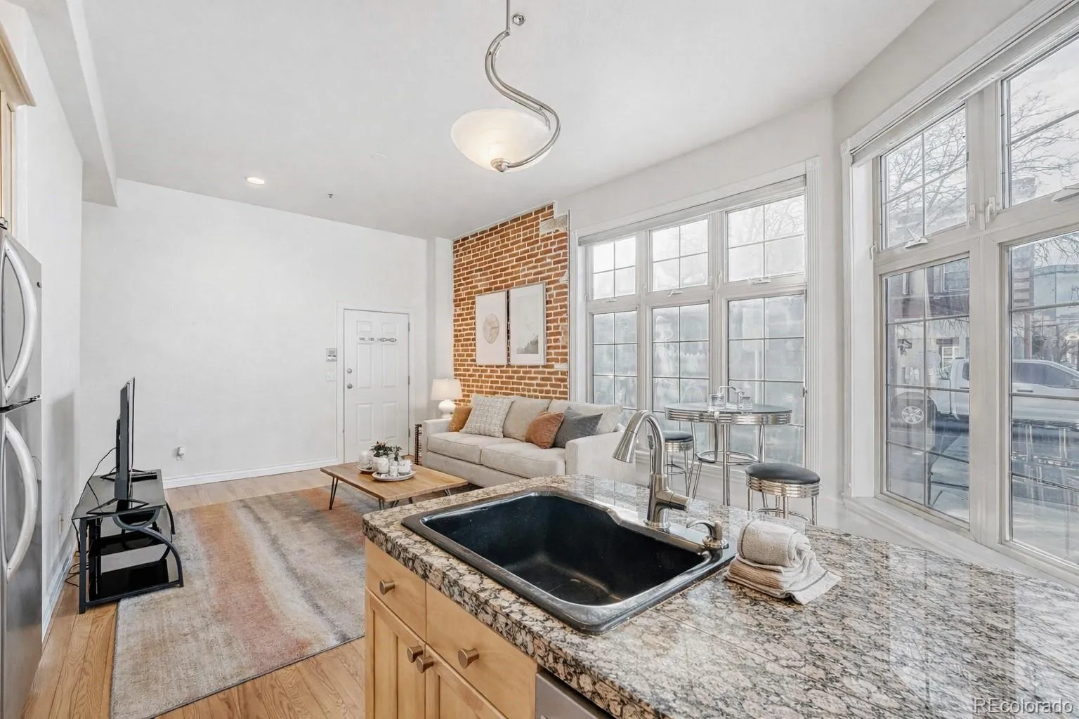 Light, character, and location come together beautifully in this charming Uptown condo. Set in a classic historic building, this sun-soaked corner unit features floor-to-ceiling windows, exposed brick, hardwood floors, and 9-foot ceilings that create an open, welcoming feel filled with natural light. Enjoy true main-floor living with no stairs, plus extra privacy with only one shared wall. The open kitchen offers granite countertops, stainless steel appliances, and a large island, perfect for everyday living or entertaining. In-unit laundry, central A/C, and exceptional storage – including a huge gear closet that fits multiple bikes and outdoor equipment—make life easy. The sidewalk frontage and bright layout also offer a fun live/work or creative studio vibe. Step outside and you’re just moments from Denver’s best restaurants, bars, cafés, parks, and transit in one of the city’s most walkable neighborhoods. Residential parking permits are available, and street parking has never been an issue for the current owner. A rare Uptown find with great light, personality, and an unbeatable location.