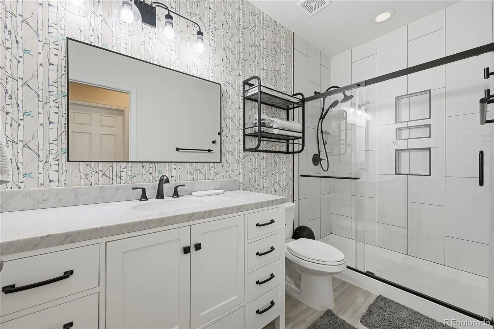 WELCOME HOME to a true showstopper. This exceptional home impresses from every angle and showcases pride of ownership paired with impeccable design—truly showing like a model. This six-bedroom, four-bath Arlington floor plan is situated on a private, fully fenced lot backing to serene green space in the highly sought-after Inspiration neighborhood, offering everything you’ve been searching for and more. From the moment you enter, luxury vinyl plank flooring flows throughout the main living areas. The upgraded chef’s kitchen is a dream, featuring GE Monogram appliances, a six-burner gas range, a 65″ wide upgraded refrigerator, quartz countertops, a herringbone tile backsplash, instant hot water, and soft-close cabinetry. The main living room is anchored by a gas fireplace with a shiplap surround and wood mantle, includes pre-wiring for surround sound, and opens through oversized sliders to a spacious deck—perfect for entertaining. The main-floor primary suite offers peaceful views of the private lot and features a striking wood accent wall, along with a barn door leading to the spa-like five-piece bath and large walk-in closet with custom built-in shelving. Two additional main-floor bedrooms, a full bathroom, and a well-appointed laundry room with upgraded cabinetry and a utility sink complete the level. The walkout basement continues to impress with three additional bedrooms, including a guest suite with an ensuite bath. The remaining two bedrooms share a full bath with an extended, upgraded vanity. A spacious lower-level living area provides the perfect space for entertaining, is pre-plumbed for a bar, and offers abundant storage. This stunning home blends luxury, functionality, and style—an exceptional opportunity in an unbeatable setting. Want it more punchy, more emotional, or MLS-shortened?