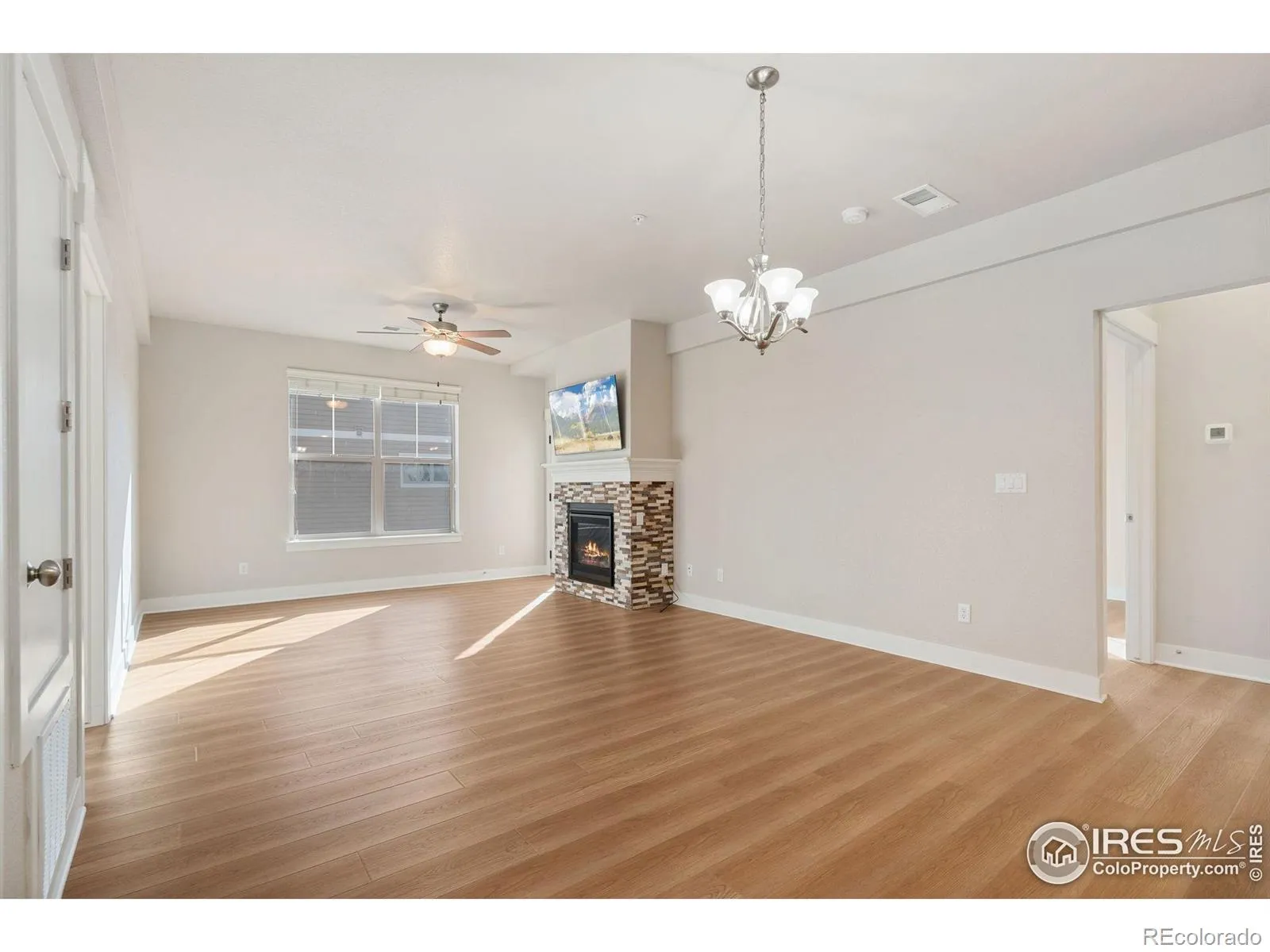 Priced well below new construction with fantastic upgrades! Stylish and secure condo in The Flats at Centerra – A Fantastic Northern Colorado location. Welcome to 4672 Hahns Peak Drive #204, a beautifully designed 2-bedroom, 2-bath ranch-style condo in the heart of Northern Colorado. This wonderful condo has numerous upgrades including engineered wood throughout the unit, no carpet in this wonderful property! This lock-and-leave home offers both convenience and comfort, nestled near the stunning Lakes at Centerra with effortless access to shopping, dining, and healthcare. Prime location with close proximity to dozens of restaurants, and retail shopping. Less than a mile to UC Health of the Rockies or the VA Clinic with quick access to I-25 and Hwy 34 for easy commuting. Secure building and low-maintenance living featuring double-coded entry doors and security cameras for peace of mind. Secured package delivery space and an elevator provide effortless access to your second-floor end unit. The HOA includes cable, internet, water, trash, exterior maintenance, snow removal, and more. Beautiful interior features alpine shaker cabinetry, quartz countertops, a large kitchen island, and stainless steel appliances. Cozy up by the fireplace or unwind on your covered private balcony. Enjoy the clubhouse with soaring vaulted ceilings, a full kitchen, fireplace, gym, recreation room, and an outdoor patio with a fireplace. Step outside to experience Colorado living with trails around Houts Reservoir and Equalizer Lake offering birdwatching, fishing, and stunning scenery. This condo is the perfect blend of Location, style, security, and convenience. Schedule your showing today!