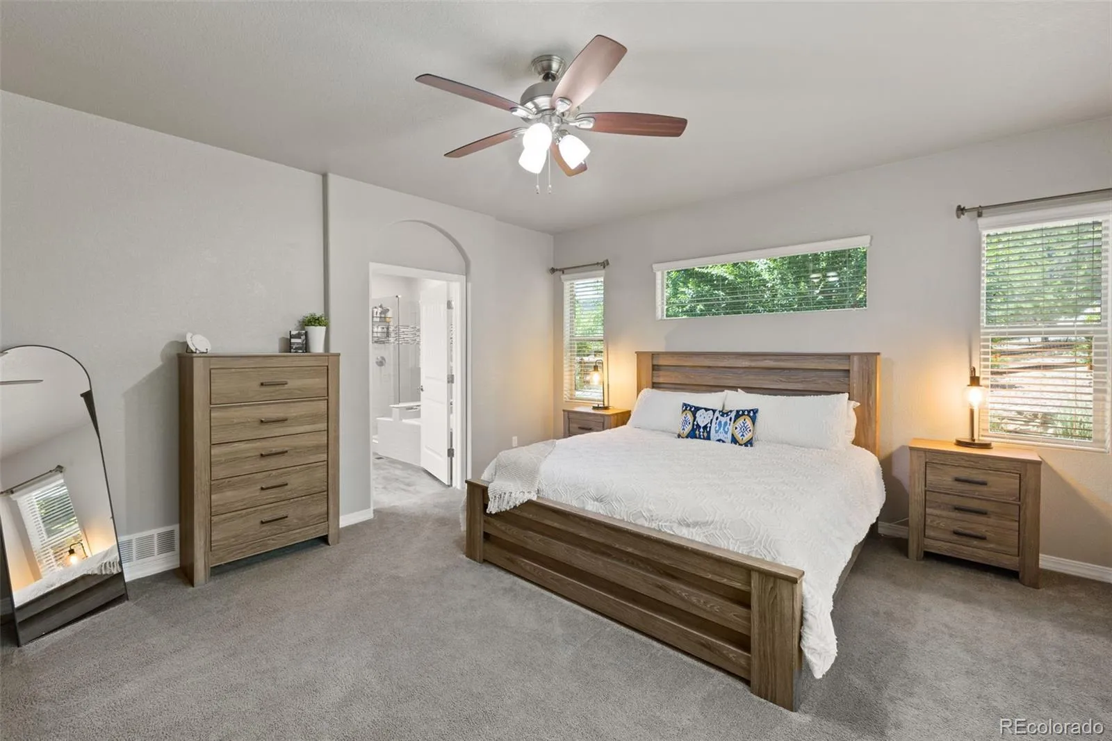 Luxury, lifestyle, and location converge in this stunning ranch-style masterpiece tucked within the prestigious Forest Lakes community. Perfectly positioned just steps from shimmering private lakes, miles of meandering trails, and serene open space, this residence offers a front-row seat to Colorado’s most coveted outdoor experiences—kayaking, paddleboarding, fishing, hiking, and community parks/concerts are all at your fingertips. From the moment you arrive, timeless sophistication and thoughtful design shine through. Inside, the open-concept layout is anchored by soaring ceilings, expansive windows that frame the natural beauty outside, and rich hardwood floors that flow throughout the main level. The gourmet kitchen is a chef’s dream, boasting granite countertops, stainless steel appliances, double ovens, a gas cooktop, soft-close cabinetry, and an oversized island. A stylish butler’s pantry adds both function and finesse. The great room is warm and welcoming, featuring a cozy gas fireplace and custom built-ins, seamlessly connected to an elegant dining area that opens to a covered composite deck—complete with roof heaters, so you never have to clear snow—ideal for year-round entertaining. Main-level primary suite offers a peaceful escape. JR suite, home office or flex room, and formal dining room on the thoughtfully designed main floor. Downstairs, the lower level expands your living space with a spacious rec room, wet bar, 2 additional bedrooms, full bath, and plenty of storage. Step outside to your personal oasis—lush landscaping and a private hot tub! A community known for its scenic 65-acre lake, rolling hills, and resort-style amenities, this home offers more than just a place to live—it delivers a lifestyle of tranquility, recreation, and elevated comfort. Quick access to I-25, top-ranked District 38 schools, and breathtaking mountain views, this is Forest Lakes living at its absolute finest.
