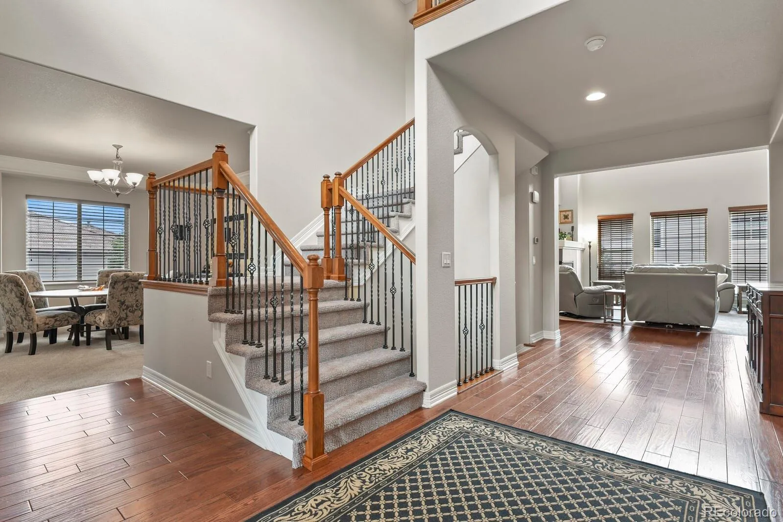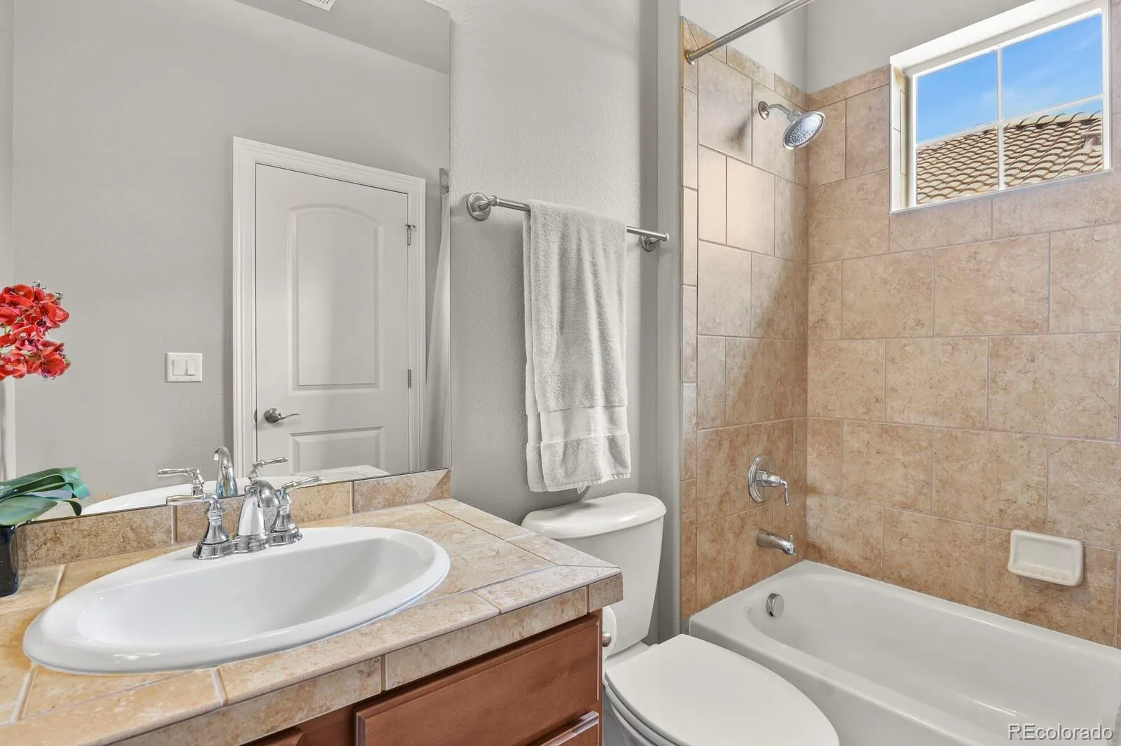 Move-In-Ready! This beautifully designed 4-bedroom 5 bath home, located in the desirable Solterra subdivision of Lakewood Colorado, offers a healthy lifestyle of comfort and enhanced quality of life. Just 25-minutes outside of Denver, but feels like another world entirely. An area surrounded by open space, a perfect location if you love walking paths, nature, and wildlife. This home sits on a quiet mature landscaped corner lot and boasts a beautiful private yard for Backyard grilling & entertaining. During your showing, it won’t go unnoticed that this home has been given the greatest level of TLC. Throughout this home you’ll find upgraded floor coverings, stylish tile and hardwood floors with a beautiful Maple finish to add a bit of warmth and elegance. If you like to entertain, enjoy in a gourmet kitchen that opens to a lovely family room with high ceilings and a 3 sided designer fireplace. The kitchen offers Maple finished soft close cabinets with plenty of storage, granite countertops, a center island and upgraded stainless steel appliances. No stairs to get to 2 full bedrooms on the main floor. The Primary Bedroom has been upgraded w/sound deadening insulation for added privacy. The upper level offers 2 bedrooms each with walk-in closets and private bathrooms. Additionally, there is a spacious loft area for an office or just a quiet read. As part of the many upgrades made during the build this home is extremely tight w/ an approximate doubling up on the insulation – i.e.: R49 in the attic and R29 on the exterior. Finally we have an upgraded fully insulated 3 car garage for your vehicles.