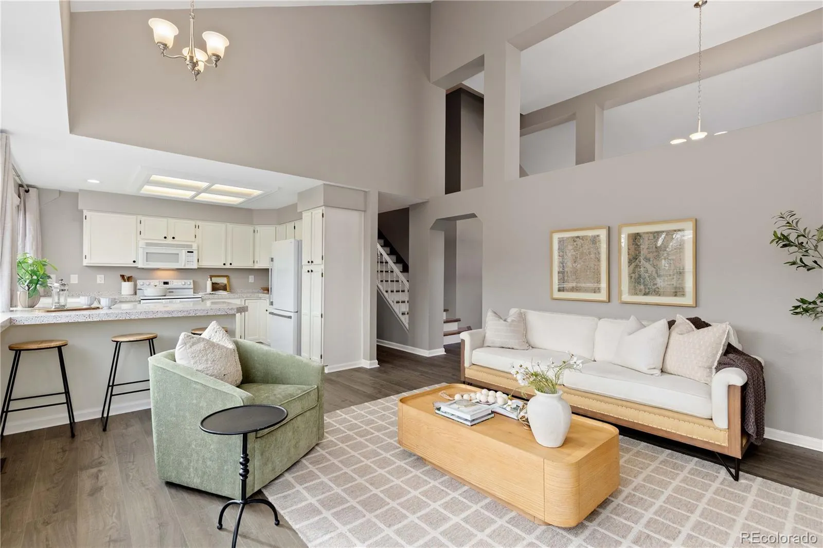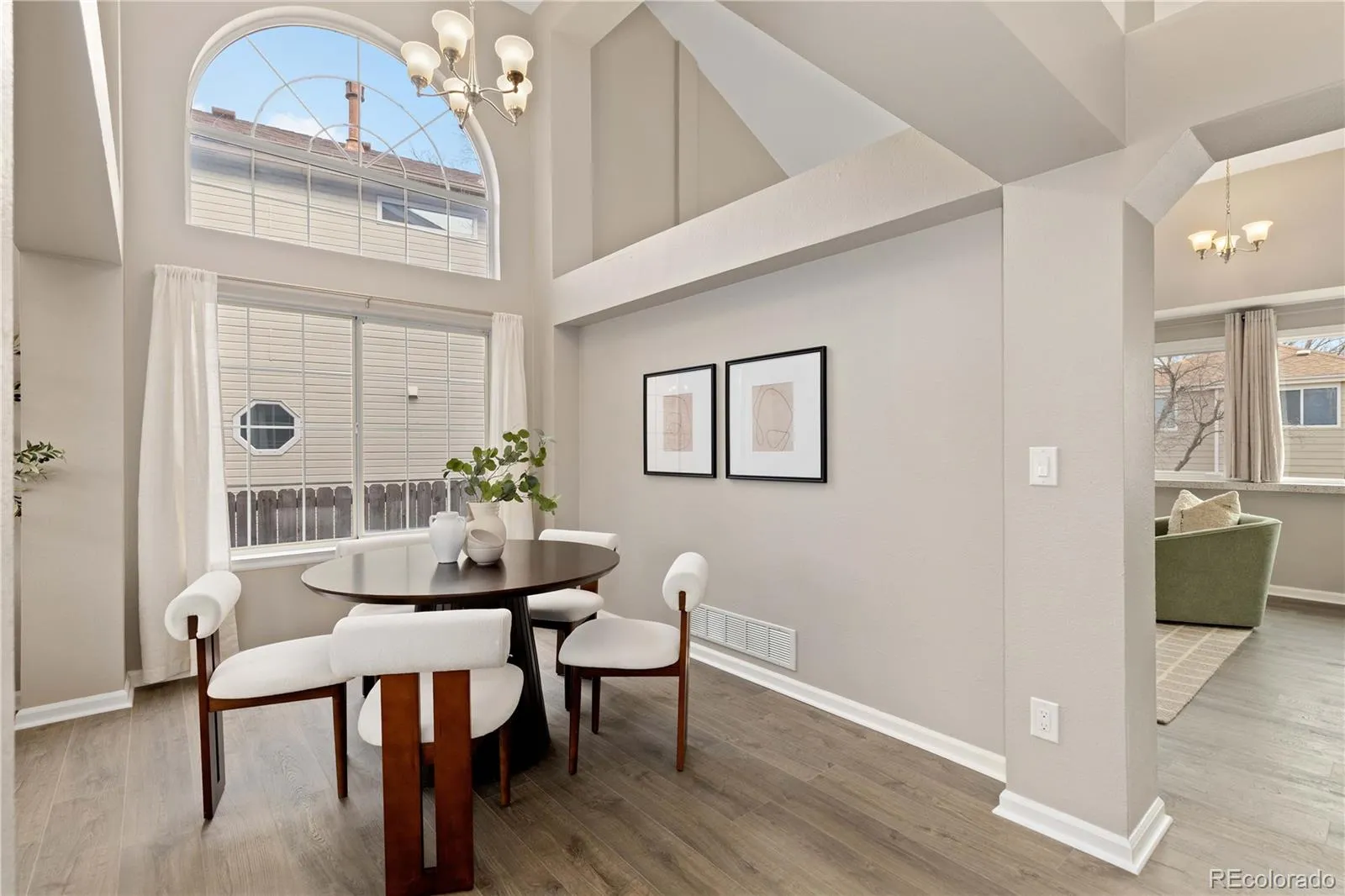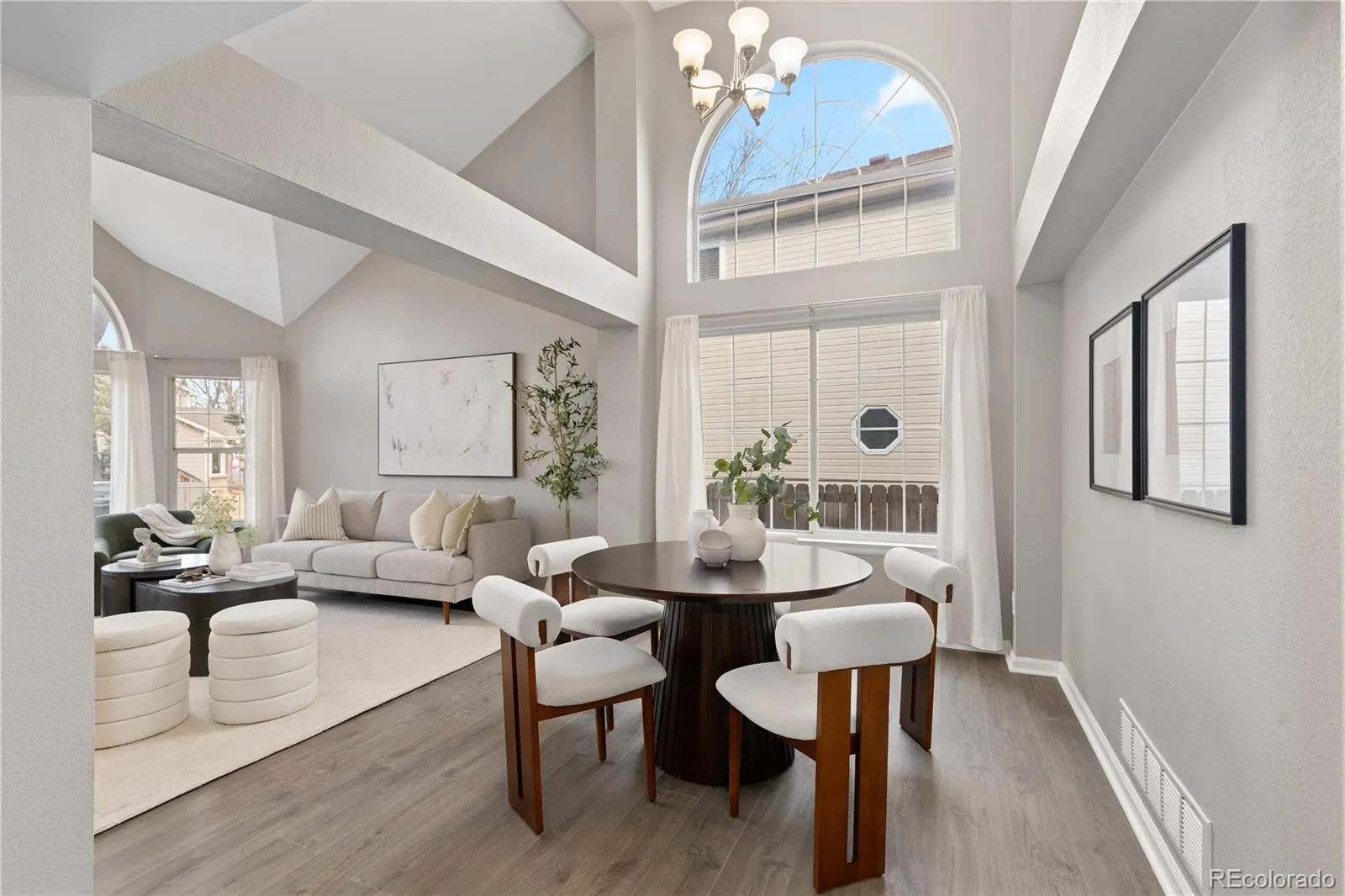 Nestled in the beautiful Torrey Peaks neighborhood of Westminster, this inviting home offers exceptional curb appeal, with large mature trees setting a welcoming tone from the moment you arrive. Step inside to a bright and airy main living space featuring soaring vaulted ceilings, expansive windows that flood the home with natural light, and a crisp, neutral color palette that feels both modern and timeless. The formal living room and dining room sit at the front of the home, perfect for entertaining or everyday living.