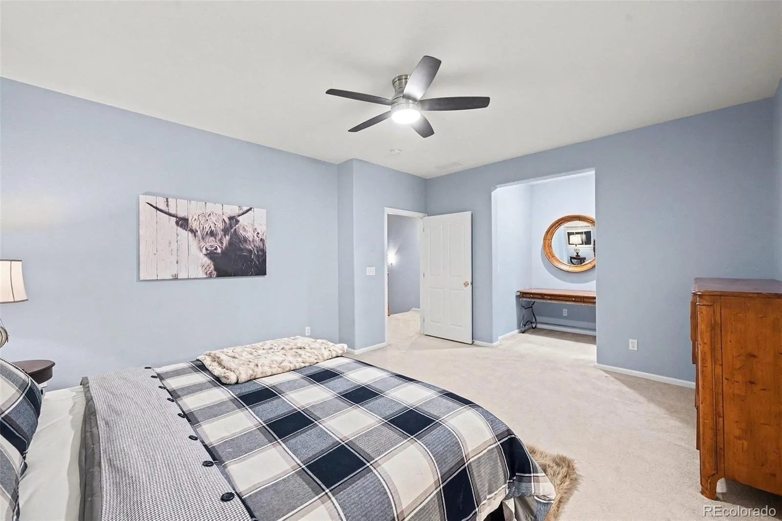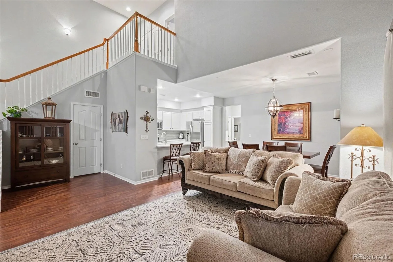 Welcome to this beautifully updated 2-bedroom, 2-bath corner unit in the highly sought-after Highland Walk neighborhood of Highlands Ranch, Colorado, featuring what many consider the best and most desirable floor plan in the complex. Filled with natural light from floor-to-ceiling windows and vaulted ceilings, this move-in-ready home offers a ground-level entrance, attached 2-car garage with oversized storage, a gas-log fireplace, and a versatile flex space ideal for a home office or entertaining. The updated kitchen showcases white cabinetry, stainless steel appliances, quartz countertops, glass subway tile backsplash, and tile flooring, seamlessly connecting to a bright dining area and spacious living room. A main-level bedroom, full bath, and convenient laundry add functionality, while the private upstairs primary suite features a massive walk-in closet, a beautifully updated 5-piece bath with soaking tub, double vanity, and stunning mountain views. Located in Highlands Ranch within the Douglas County School District, Highland Walk offers attractive stucco and stone curb appeal, a quiet interior setting, and access to HRCA amenities including four recreation centers, pools, fitness facilities, parks, and miles of walking and biking trails, with easy access to shopping, dining, Denver, Colorado Springs, and the Colorado ski mountains.
