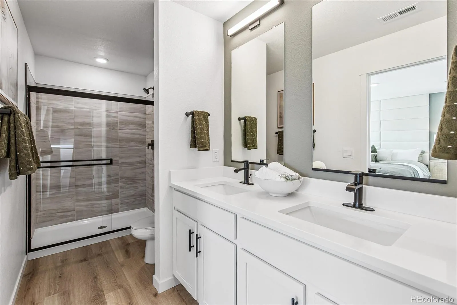The Melbourne paired home plan offers 3 Bedrooms, 2.5 Bath, and generous 2 car garage. This home features an open floor plan with expansive 9 ft. ceilings on the main floor, the kitchen offers a pantry, earth-toned boardwalk beige cabinetry w/ crown molding, and stainless appliances to include refrigerator, front load washer/dryer and blinds. Includes luxurious interior finishes, including a plank flooring on the entire main floor and all wet areas, quartz counters throughout, matte black hardware and plumbing fixtures, and designer ceramic tile in baths and kitchen splash. Home is equipped with an extensive list of features such as 8′ front door, 2 panel interior doors, A/C, tankless water heater, smart garage door opener w/ keypad, smart front door lock, thermostat, and lighting, video doorbell, customizable Deako lighting switches and more. Arcadia offers a large community park with trails, playground and a dog park. ***Estimated Delivery Date: March. Photos are representative and not of actual property***