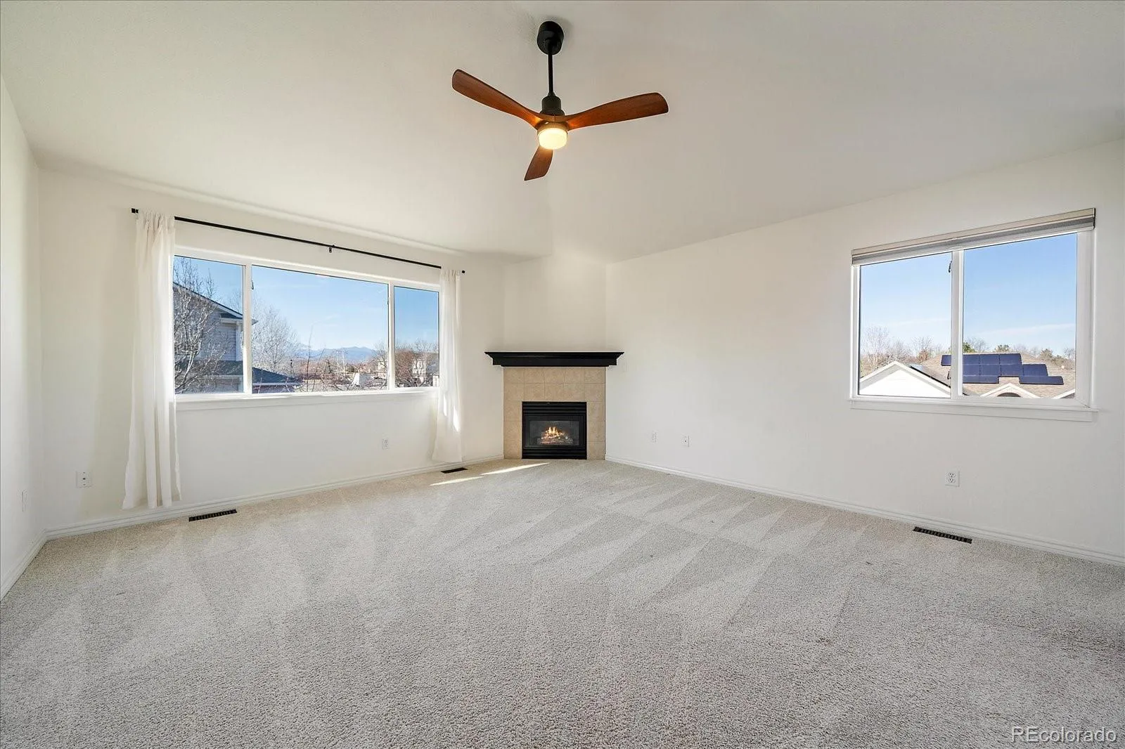 This beautiful corner lot offers stunning views of Long’s Peak, especially from the oversized primary bedroom, complete with a cozy gas fireplace. The modern eat-in kitchen features quartz countertops and a stylish subway tile backsplash, providing excellent western and backyard views along with ample natural light. Beautiful hardwood floors cover much of the 1st floor. Enjoy relaxing in the living room with its gas fireplace and sliding doors that open to a covered patio and a private, flat backyard, perfect for entertaining. The yard also includes a large storage shed with electricity and cabinetry. Just a few houses south is a neighborhood park and a path leading to Dawson park and McIntosh Lake, where you can fish, paddle board, or enjoy the scenic trail that goes around the full circumference of the lake. The 3-car garage comes equipped with industrial overhead heating, extra outlets, a 220V outlet, and offers plenty of storage and work space. The laundry room is conveniently located upstairs near the four spacious bedrooms, three of which face west. Both upstairs baths have great fixture upgrades. The unfinished basement is ready for expansion with egress windows and roughed-in plumbing. Roof, fascia and gutters new in 2024! CHECK OUT the attached drone video for a better sense of location or copy and paste and go here…. https://iframe.videodelivery.net/0a253e8dc7eb4a0345ebca1f368c1579